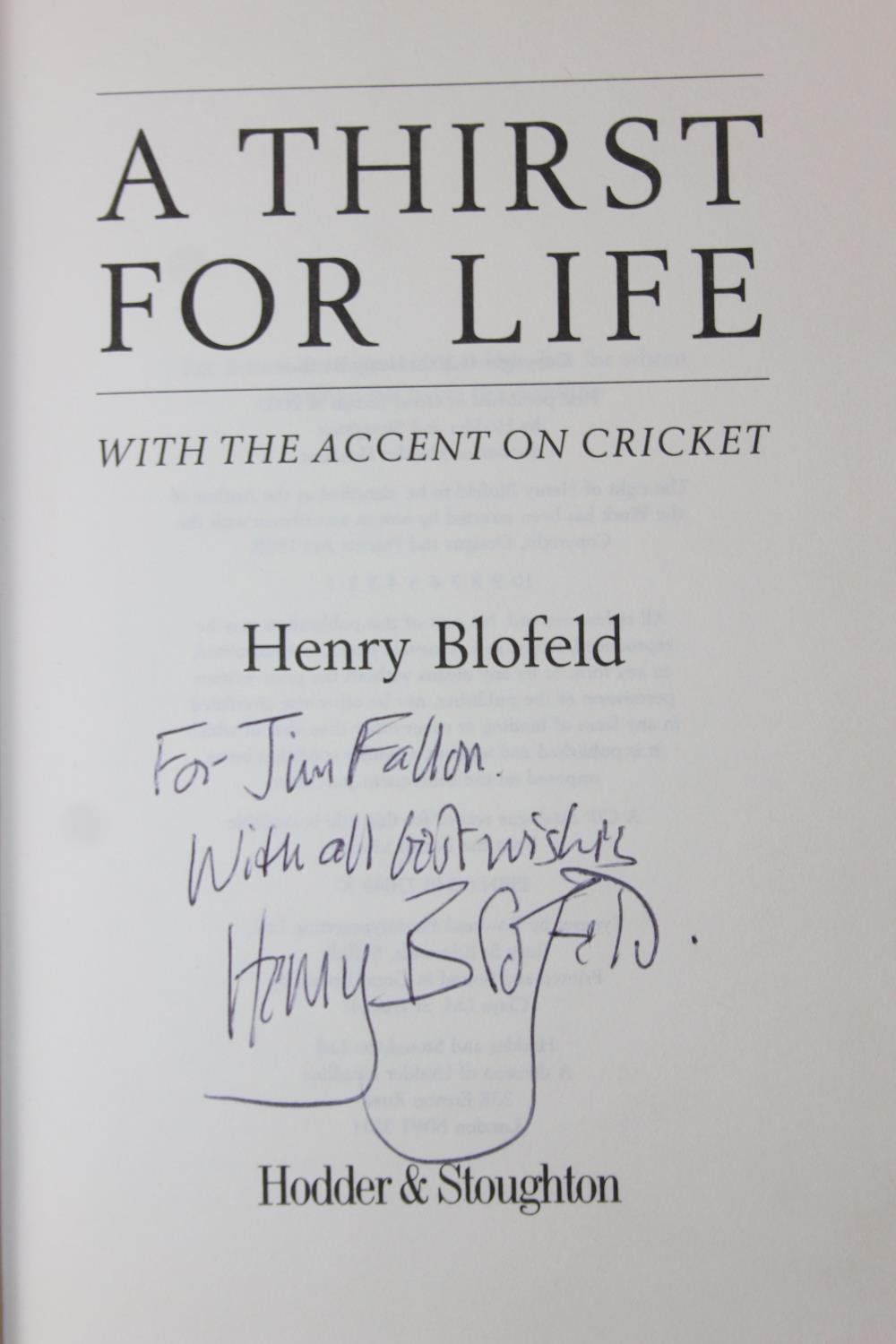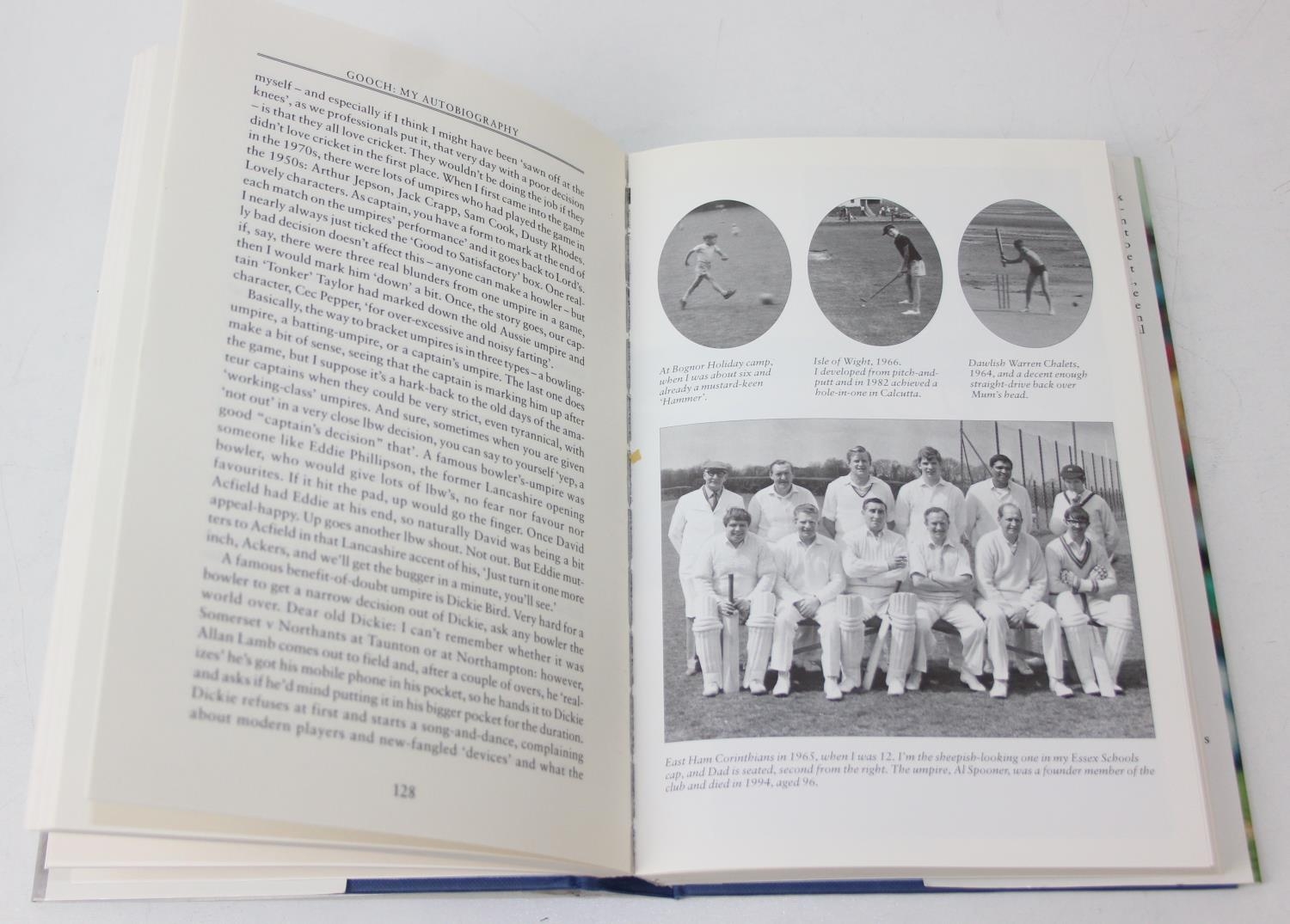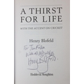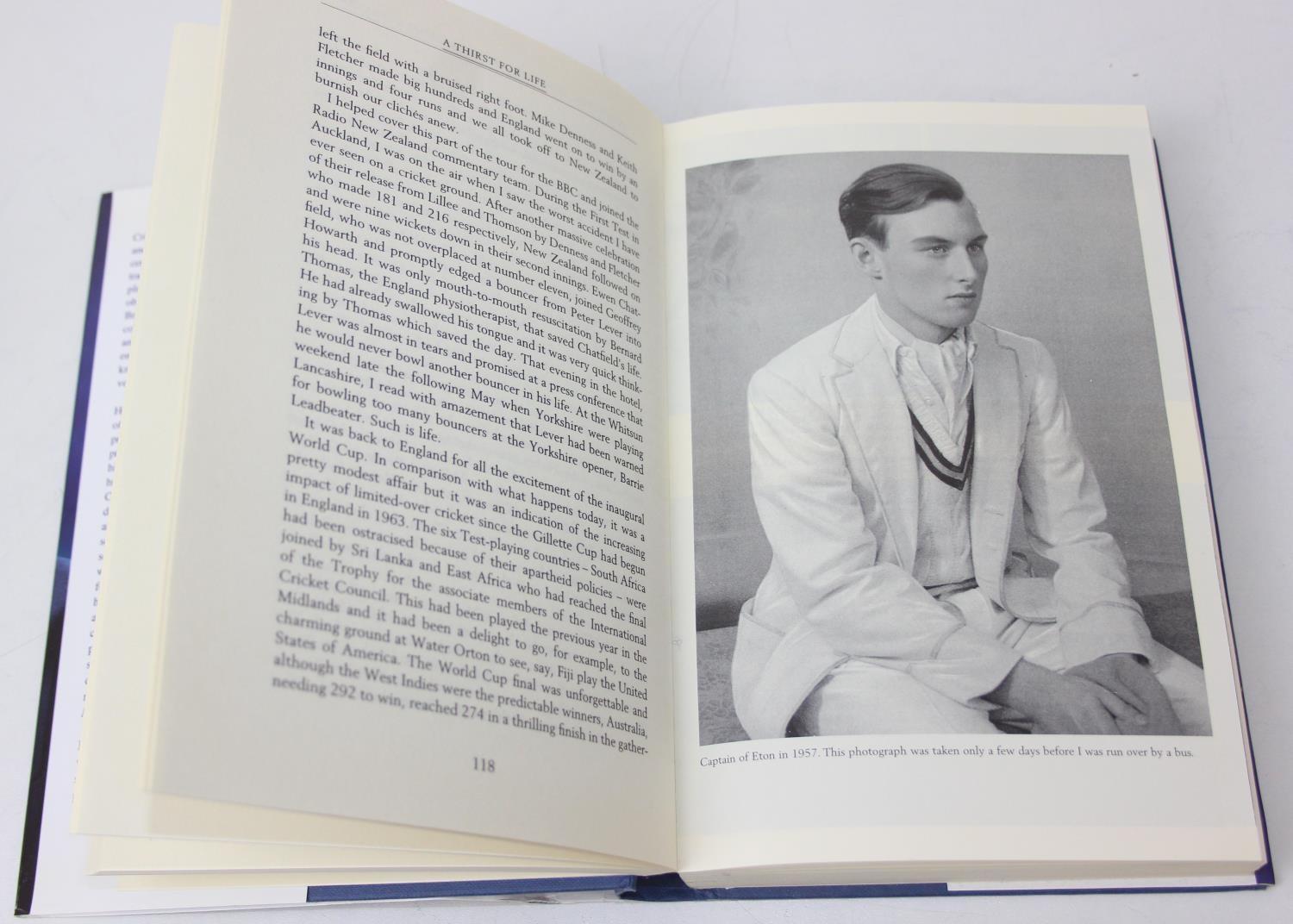 Autographs; Cricketers - Books about cricket, with approximately 40 autographs, mostly cricketers, to include signed by the author copies of 'A Thirst for Life' by Henry Blofeld and 'Gooch' by Graham Gooch and extensively signed Warwickshire County Cricket Club book [4]