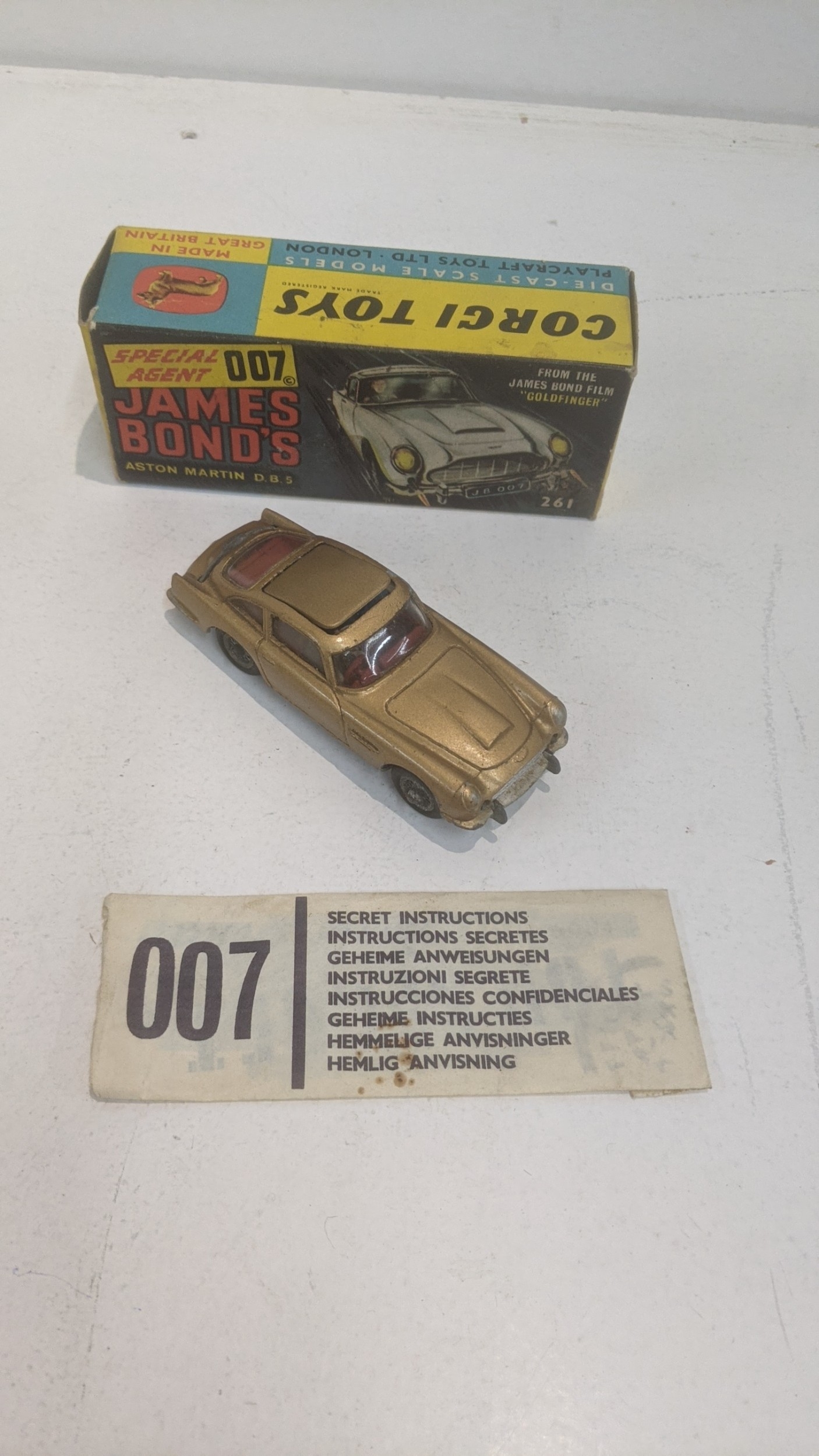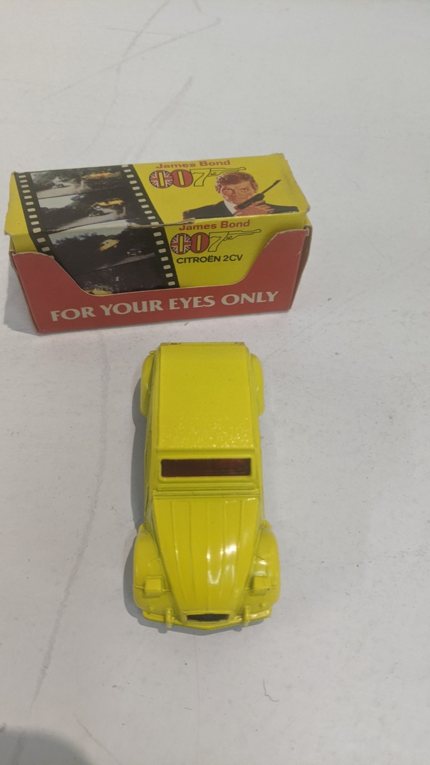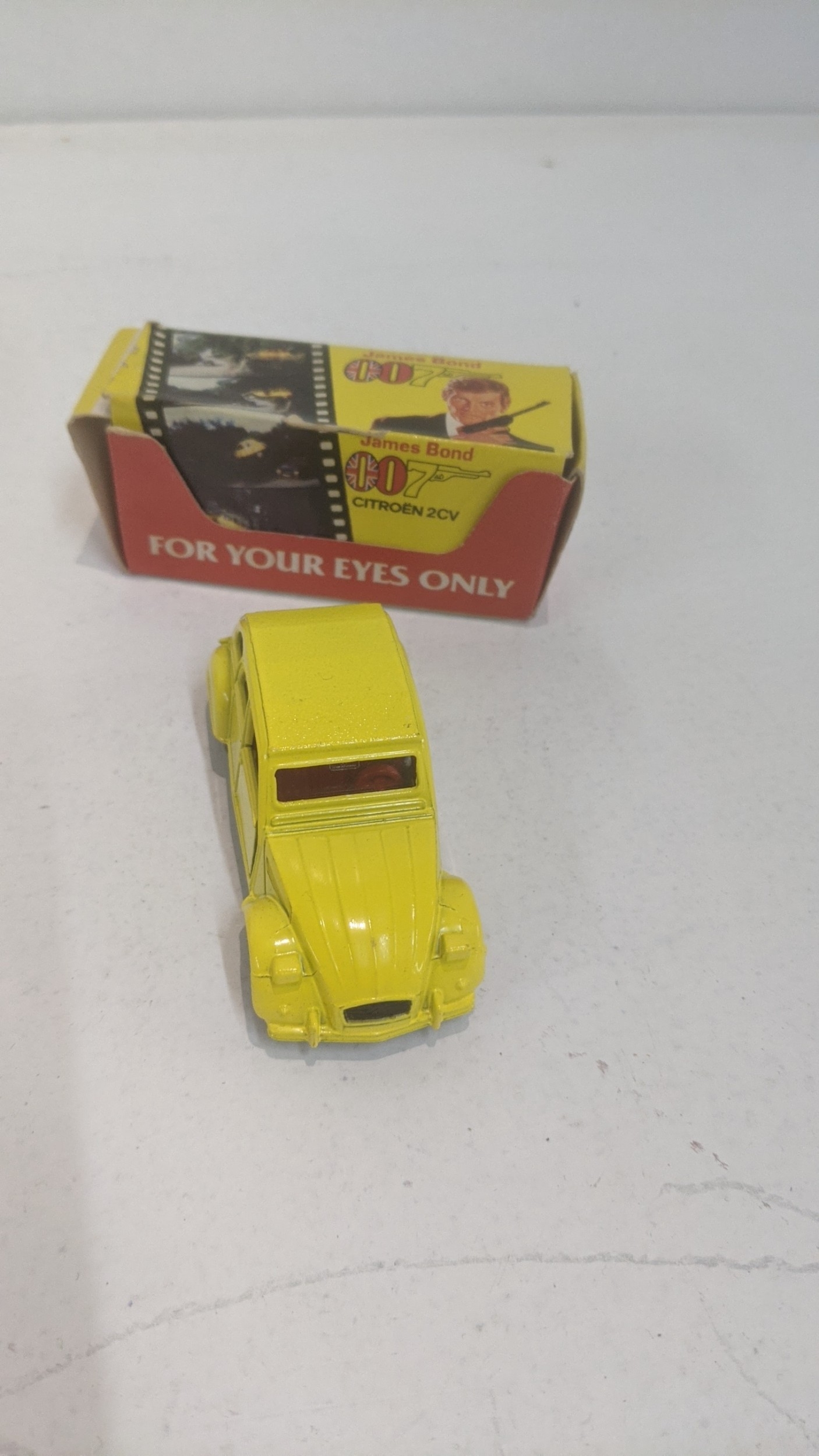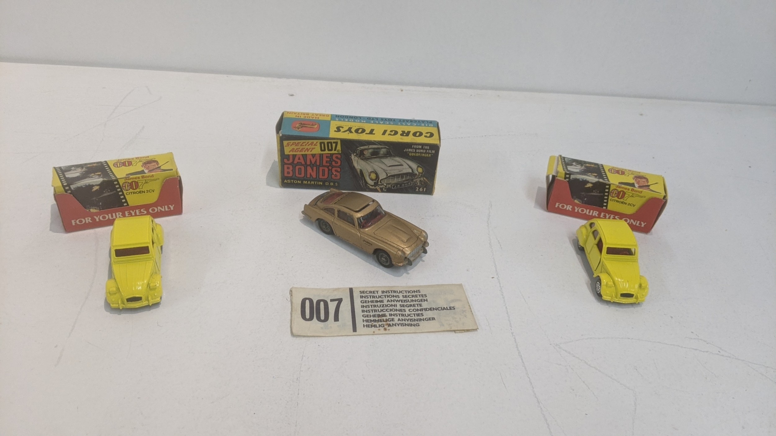 Three Corgi James Bond diecast model cars to include DB5 261, and two 2CV boxed