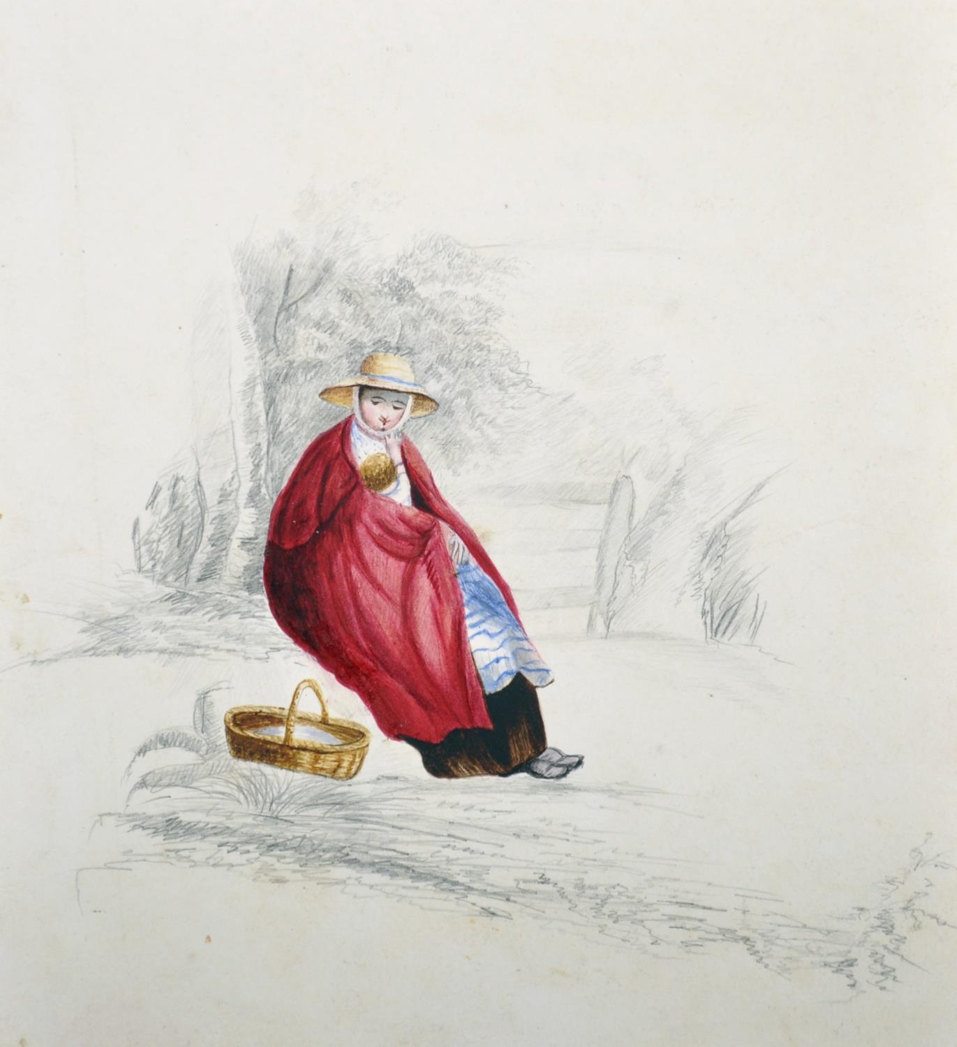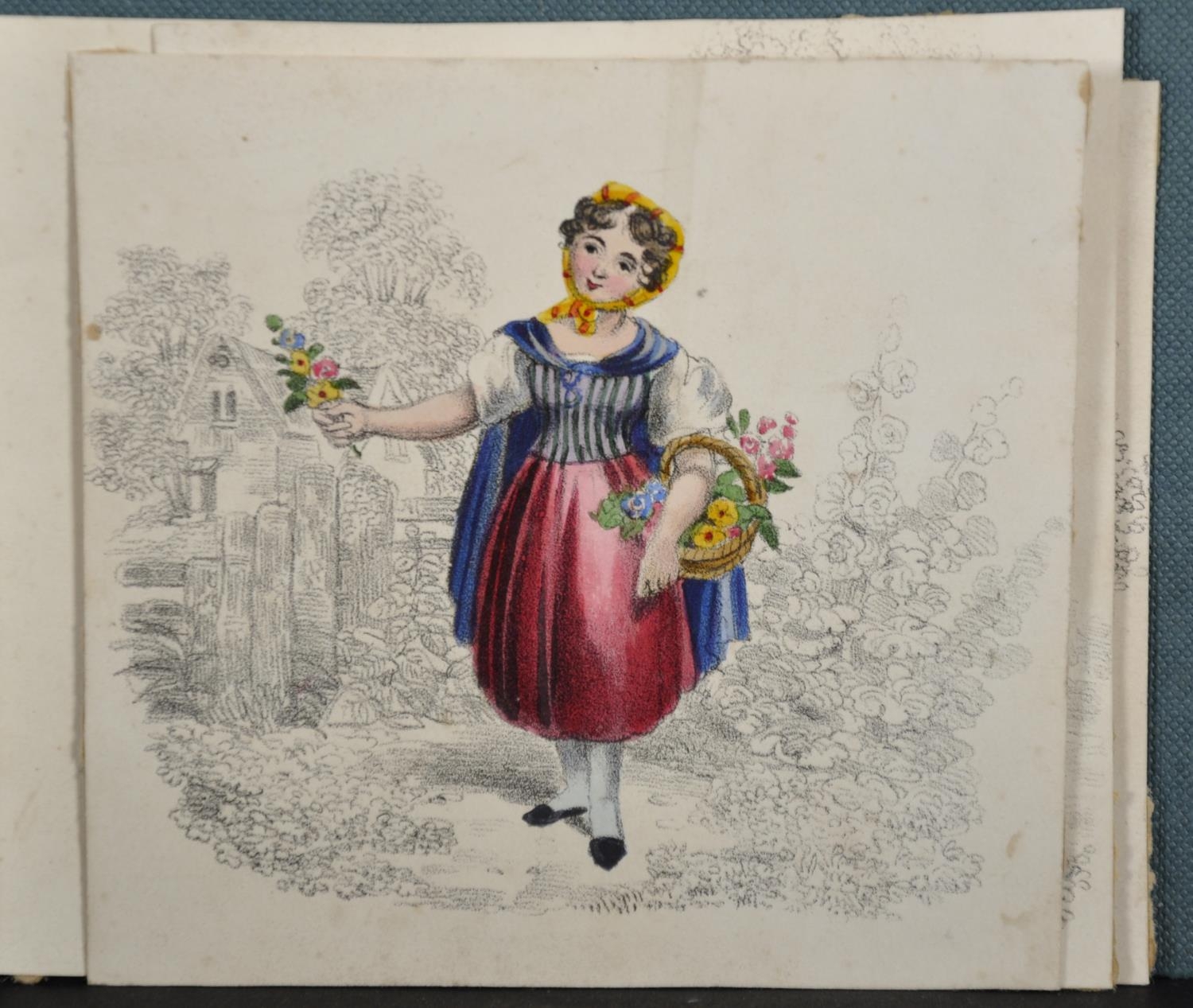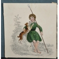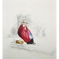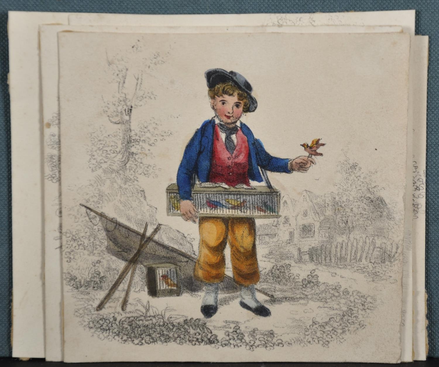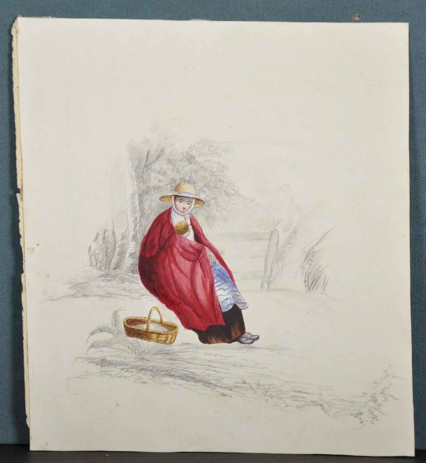 19th Century English School. A Mother and Child resting on a Path, Watercolour and Pencil, Unframed, 7" x 6.5 (18 x 16.5cm), together with six hand painted Prints by another hand, (7)