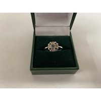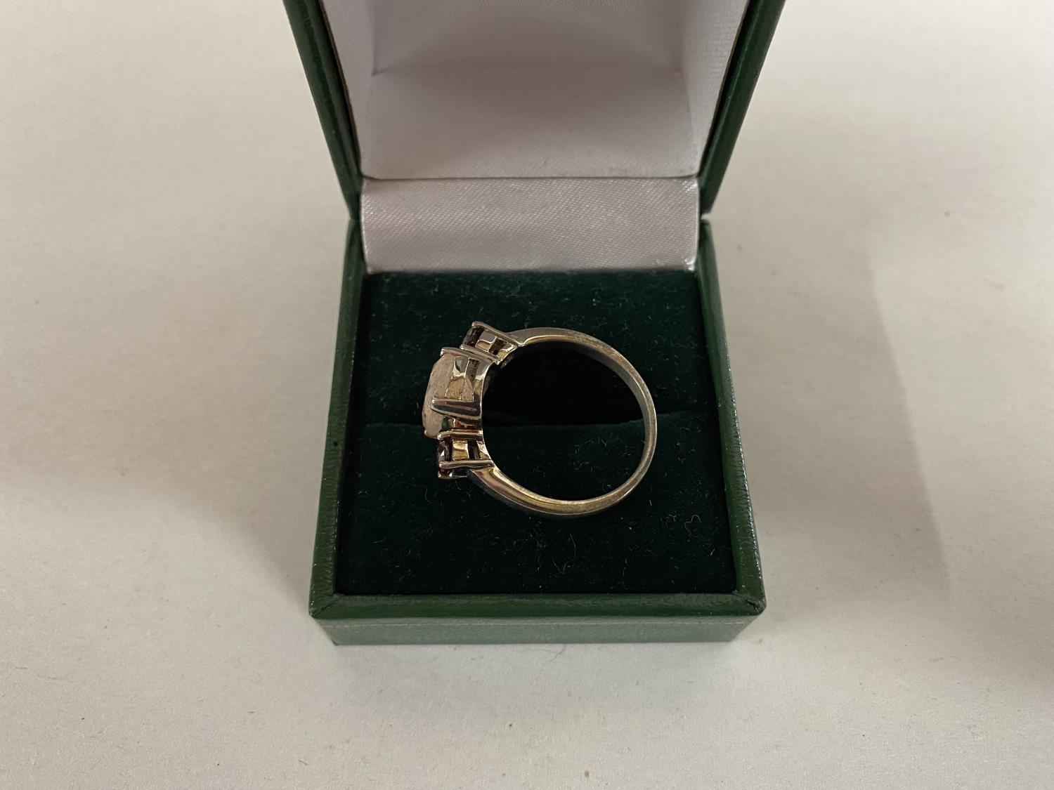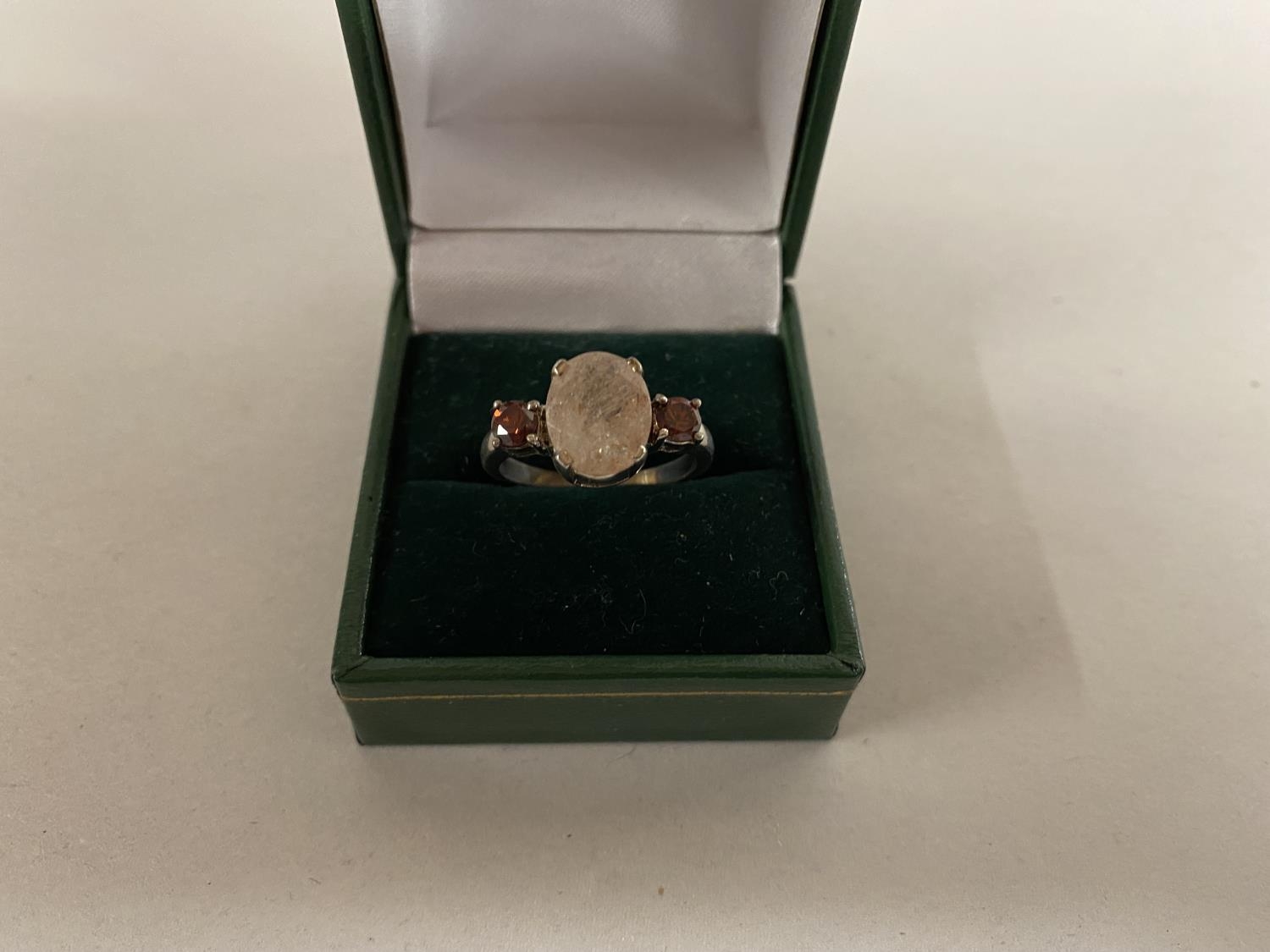 925 Silver Strawberry Feldspar & Champagne Zircona Ring, size Q-R