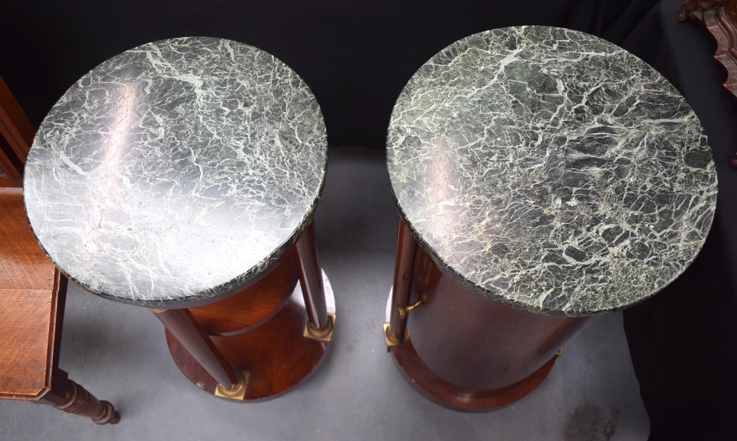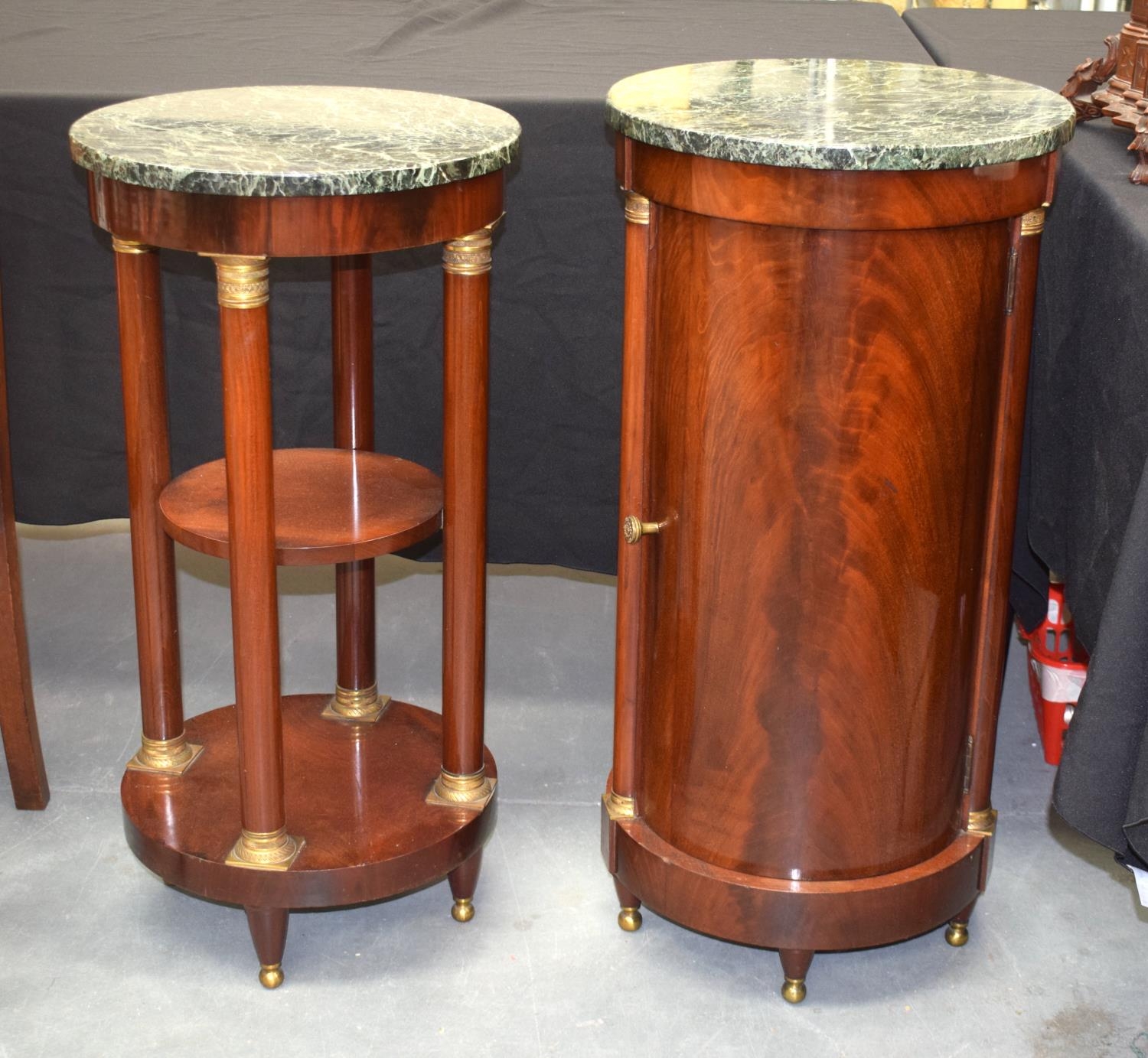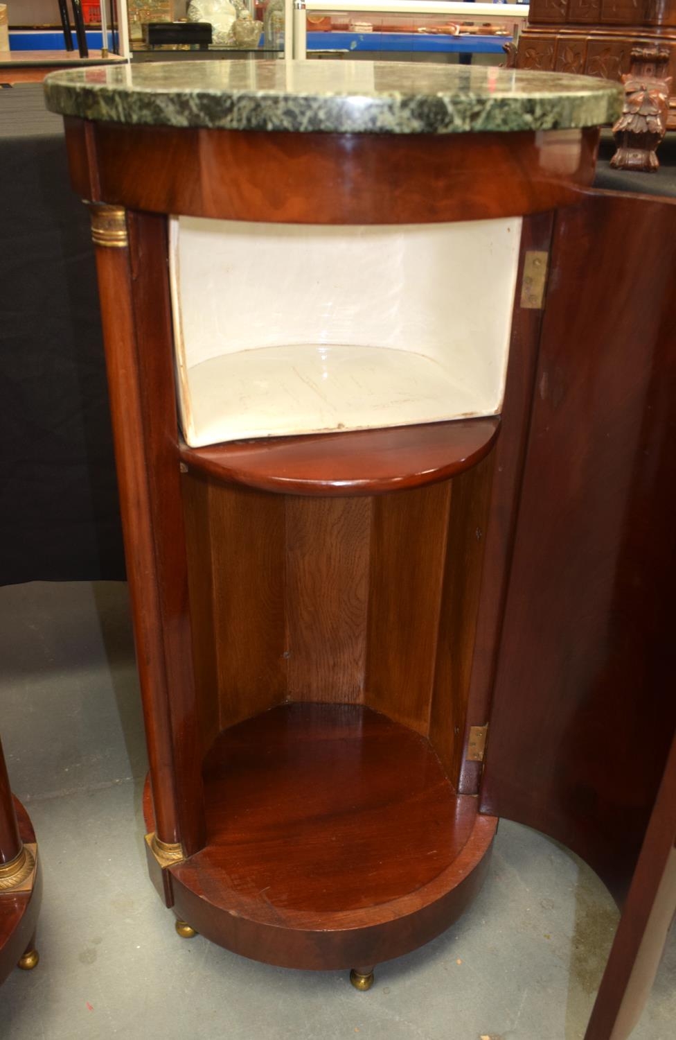 A GOOD PAIR OF EARLY 19TH CENTURY FRENCH BEDSIDE TABLES with ormolu mounts and marble tops. Largest 84 cm x 42 cm.