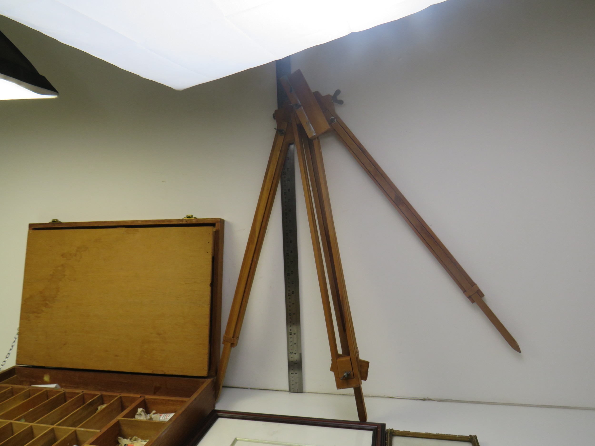 Lot of miscellaneous items, including an artist's paint set, easel etc