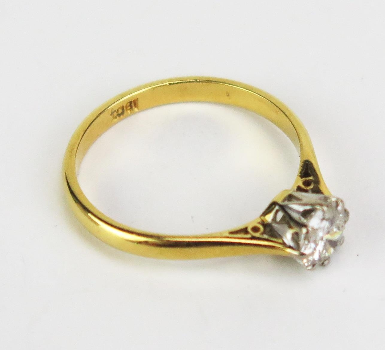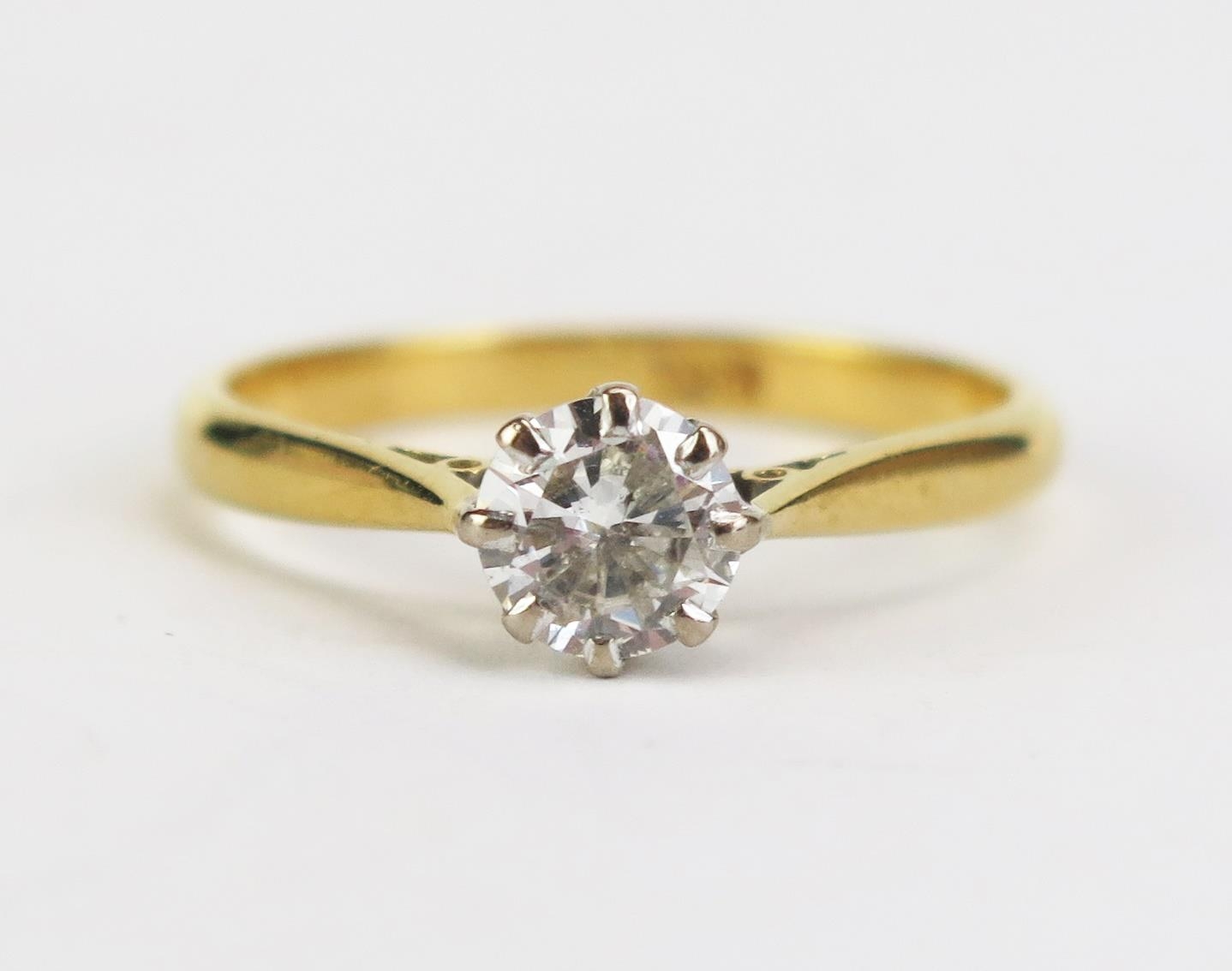An 18ct Gold and Diamond Solitaire Ring, stamped 18CT, c. 5.2mm stone, size L.75, 2.17g