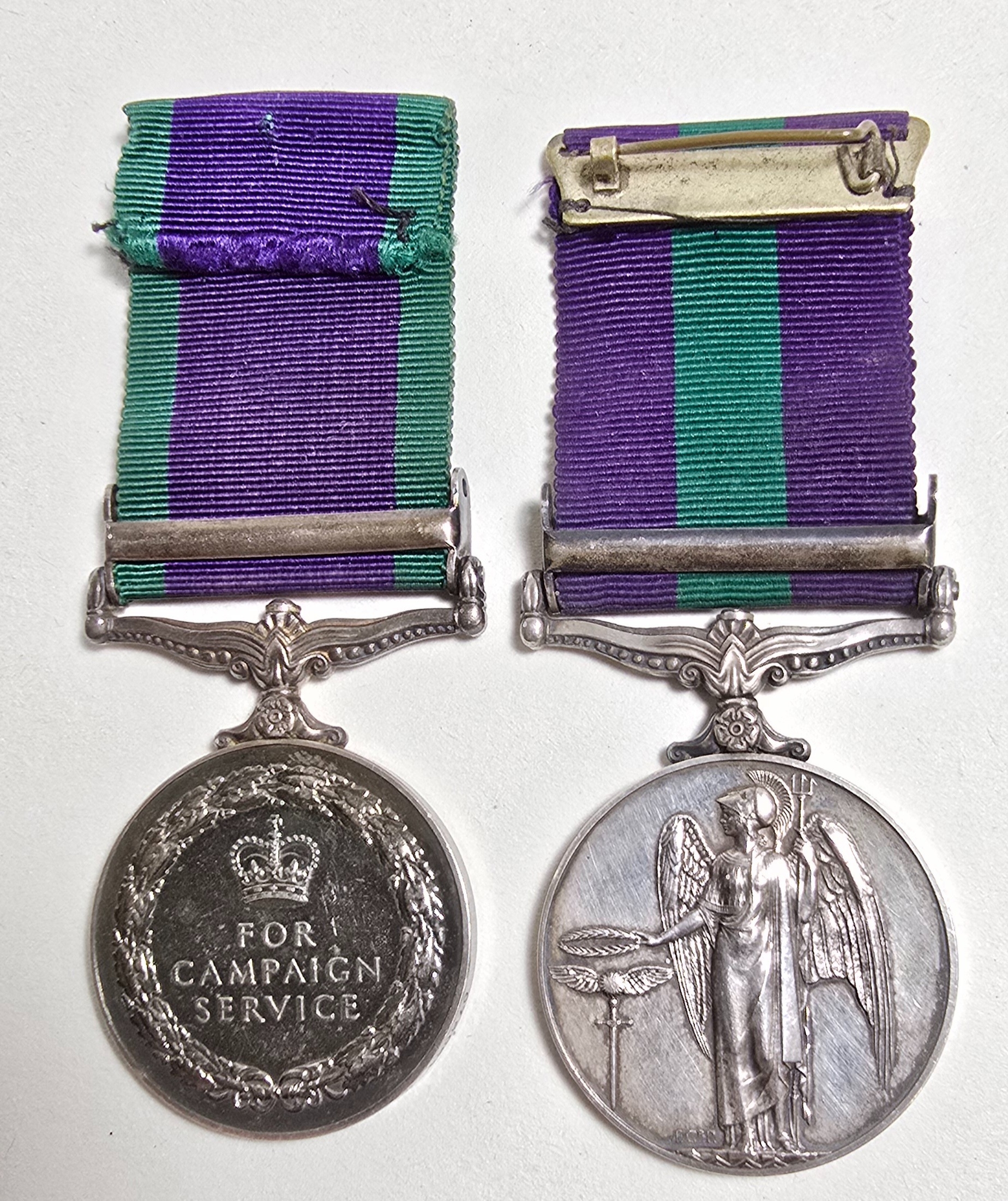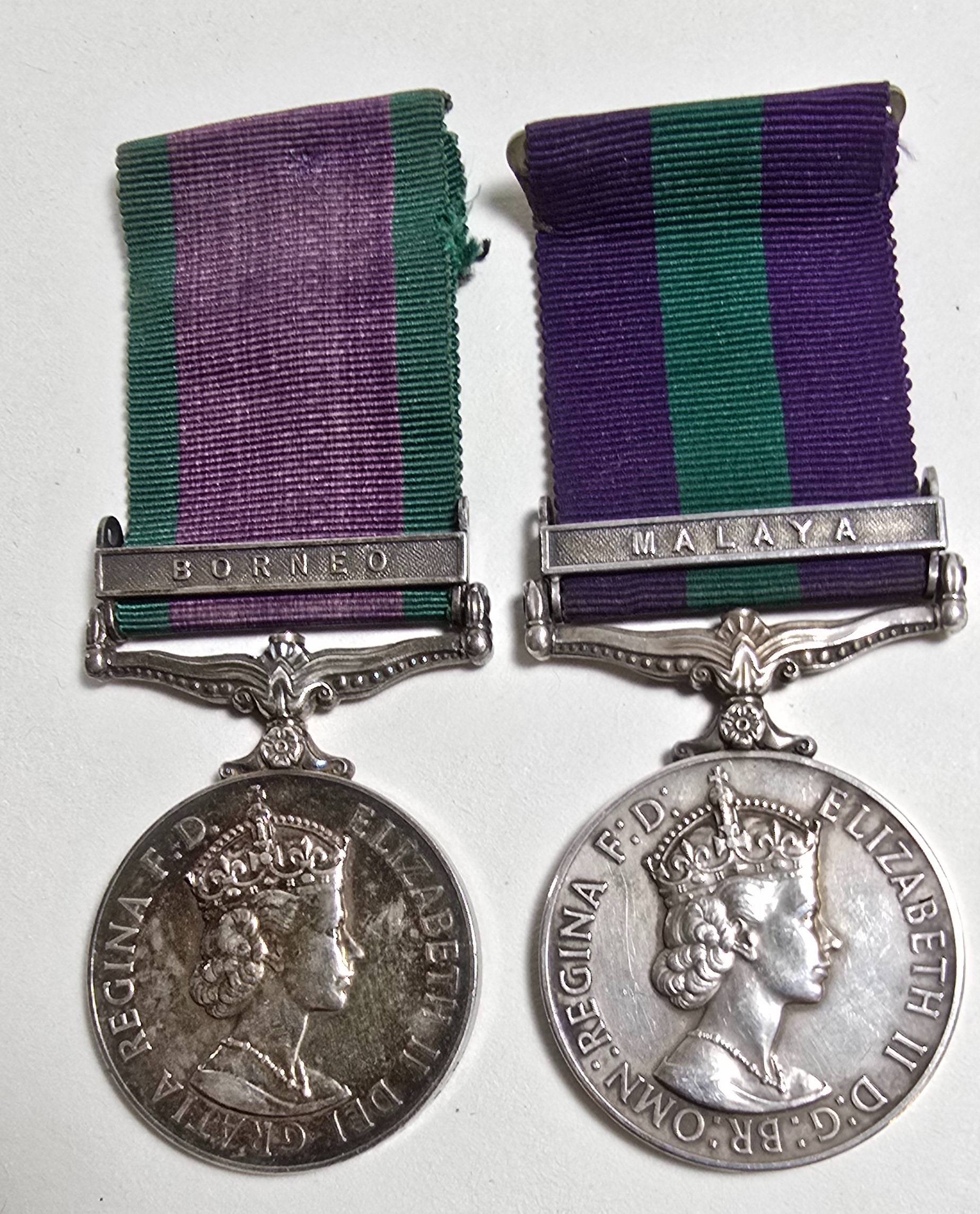 GSM 1918 with bar Malaya, ERII, impressed to Pte. B.R. Funnell A.C.C.; and GSM 1962 with bar Borneo impressed to M.A. Murray M (E)1.R.N. Good VF (2)