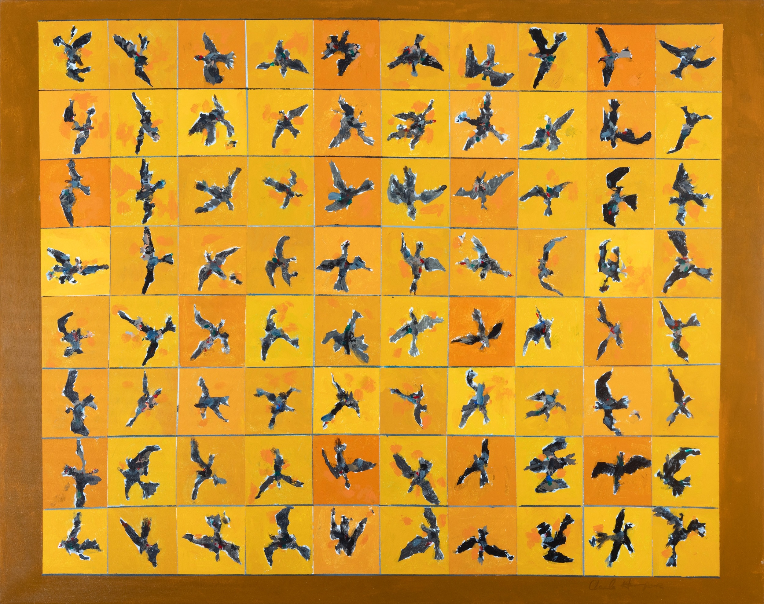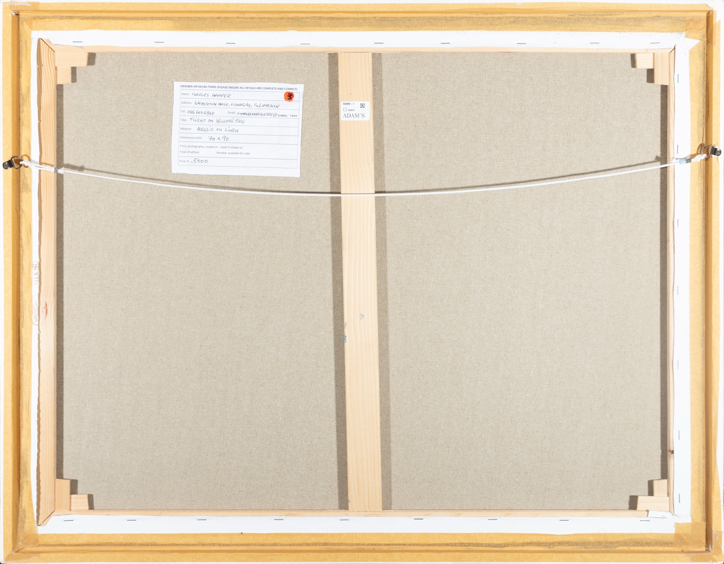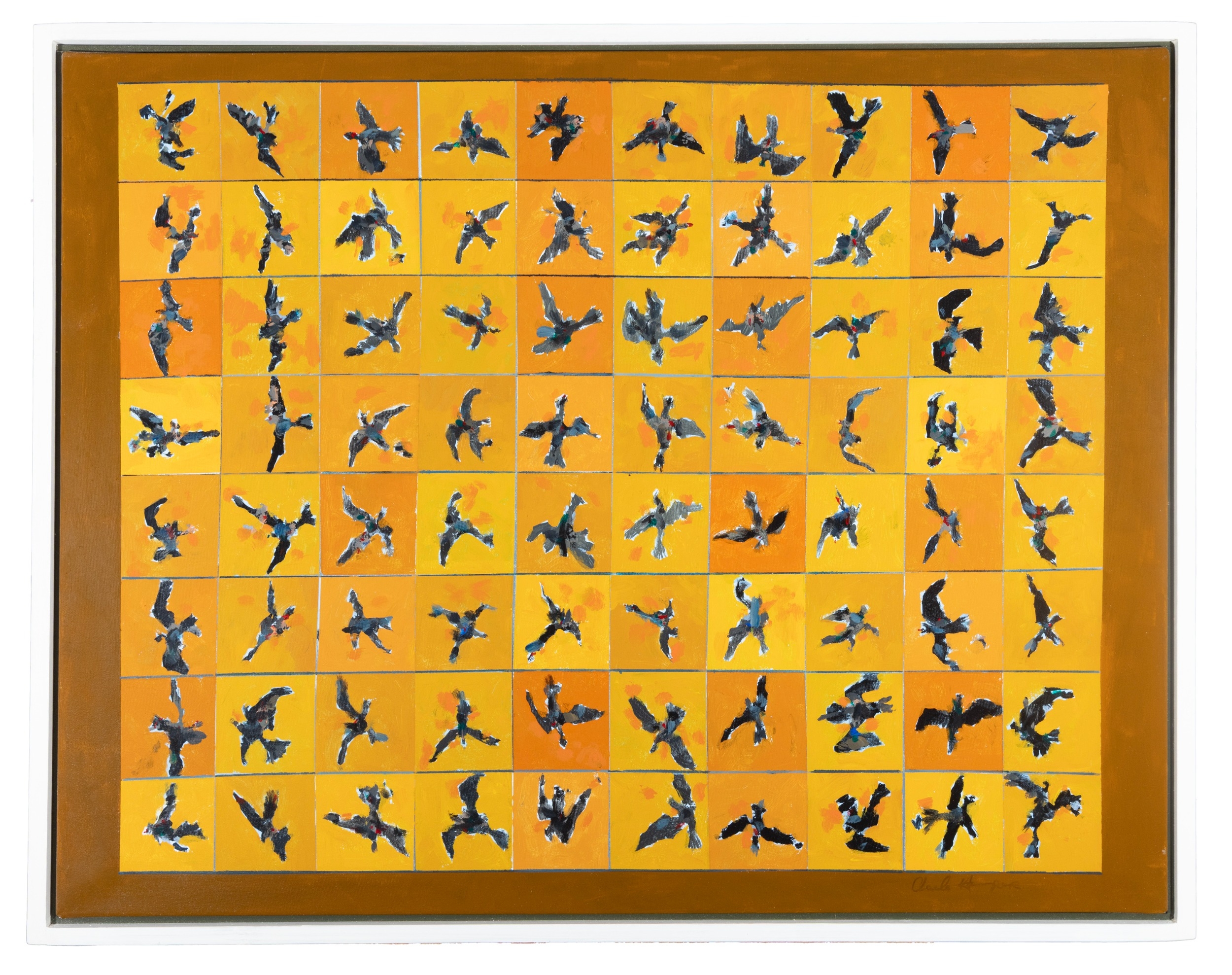 CHARLES HARPER RHA (B.1943) Flight on Yellow Sky Acrylic on canvas, 70 x 90cm Signed Exhibited: Dublin, RHA Annual Exhibition, 2025