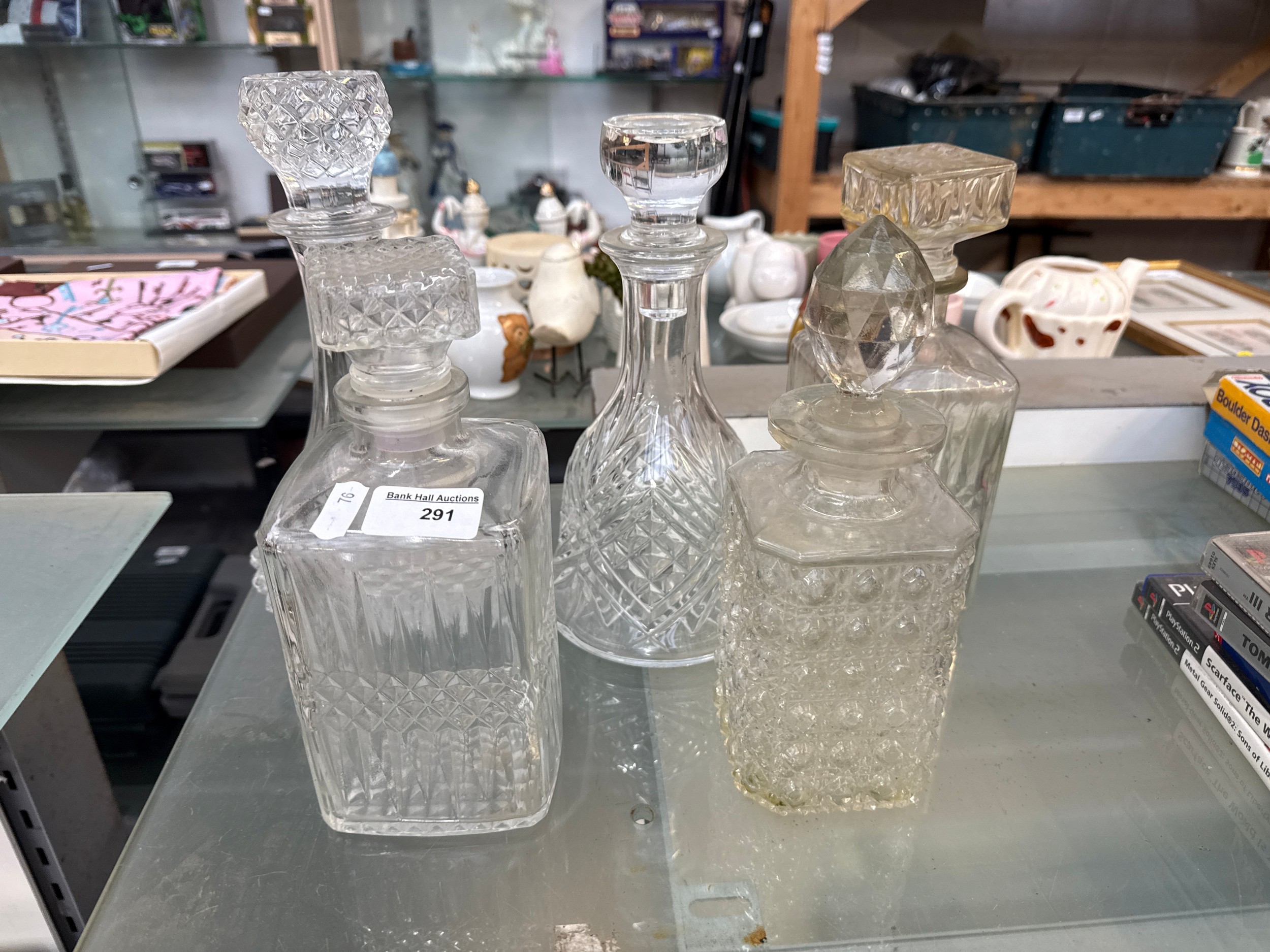 Five assorted decanters