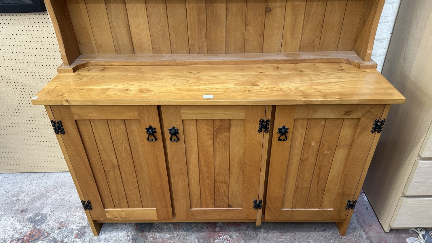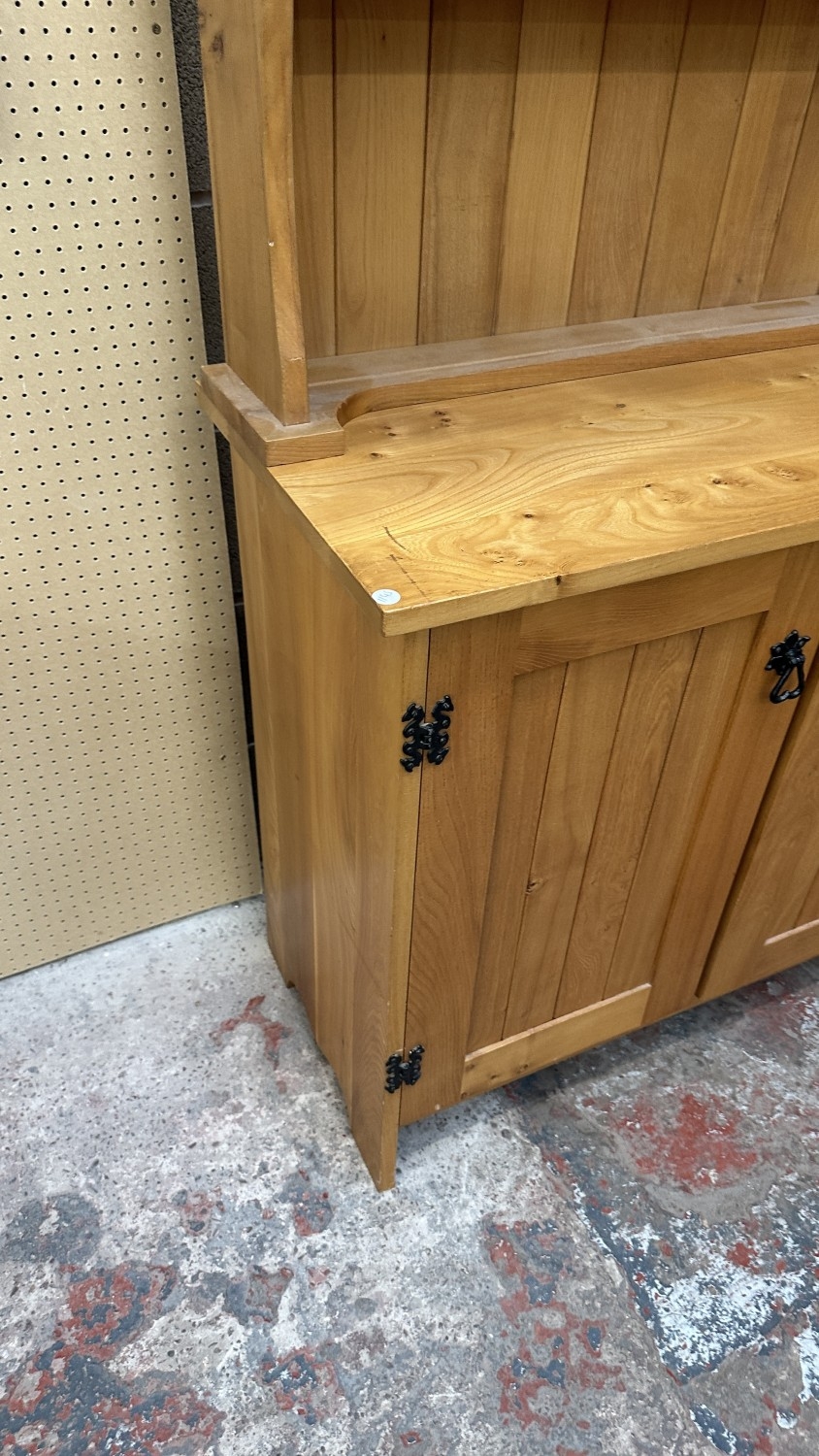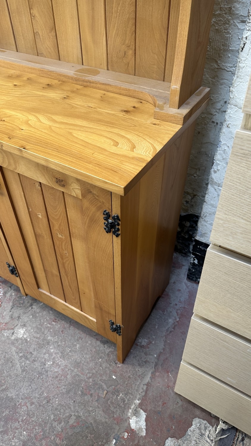 A modern Arts & Crafts style elm dresser - approx. 183cm high x 137cm wide x 43cm deep
