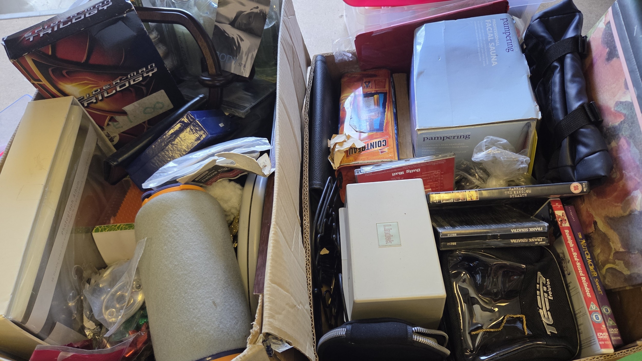 Two Boxes of Miscellaneous Household Goods, Media, Personal Care Items, and Small Electronics