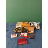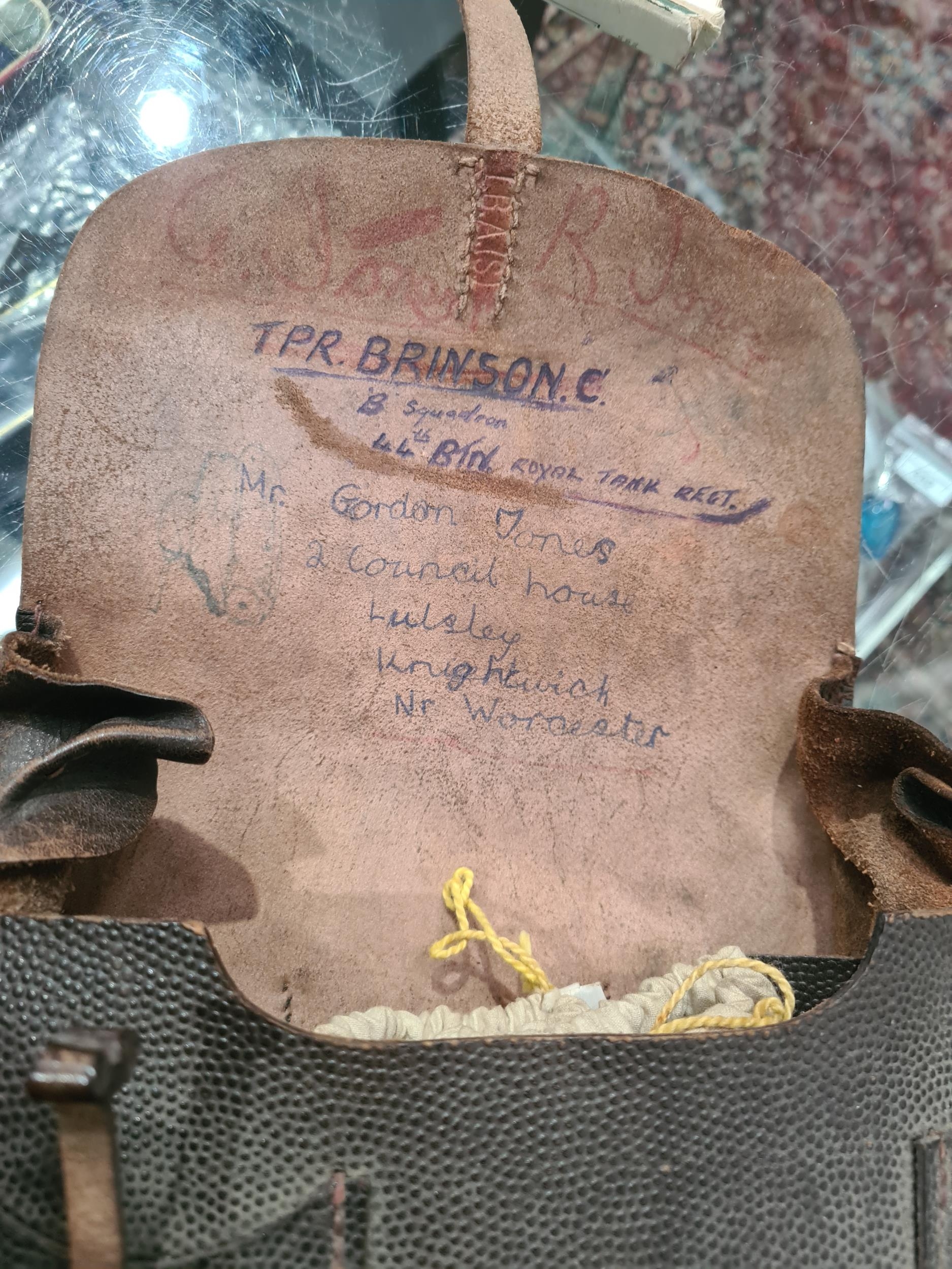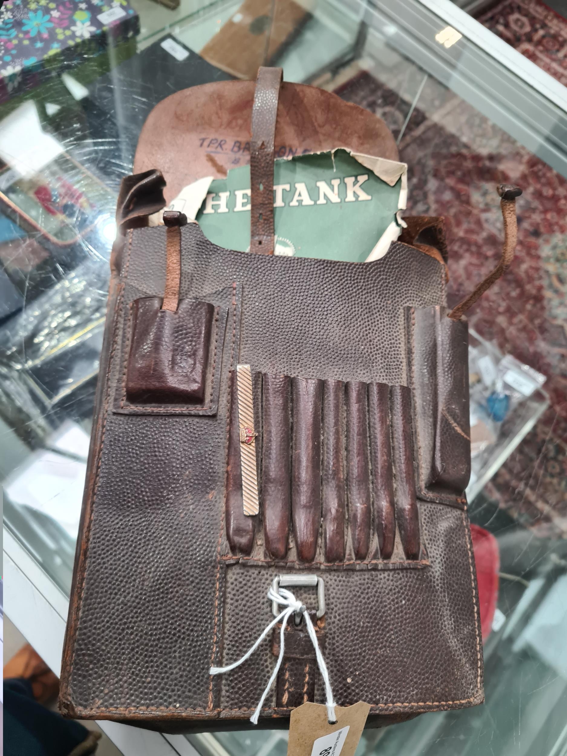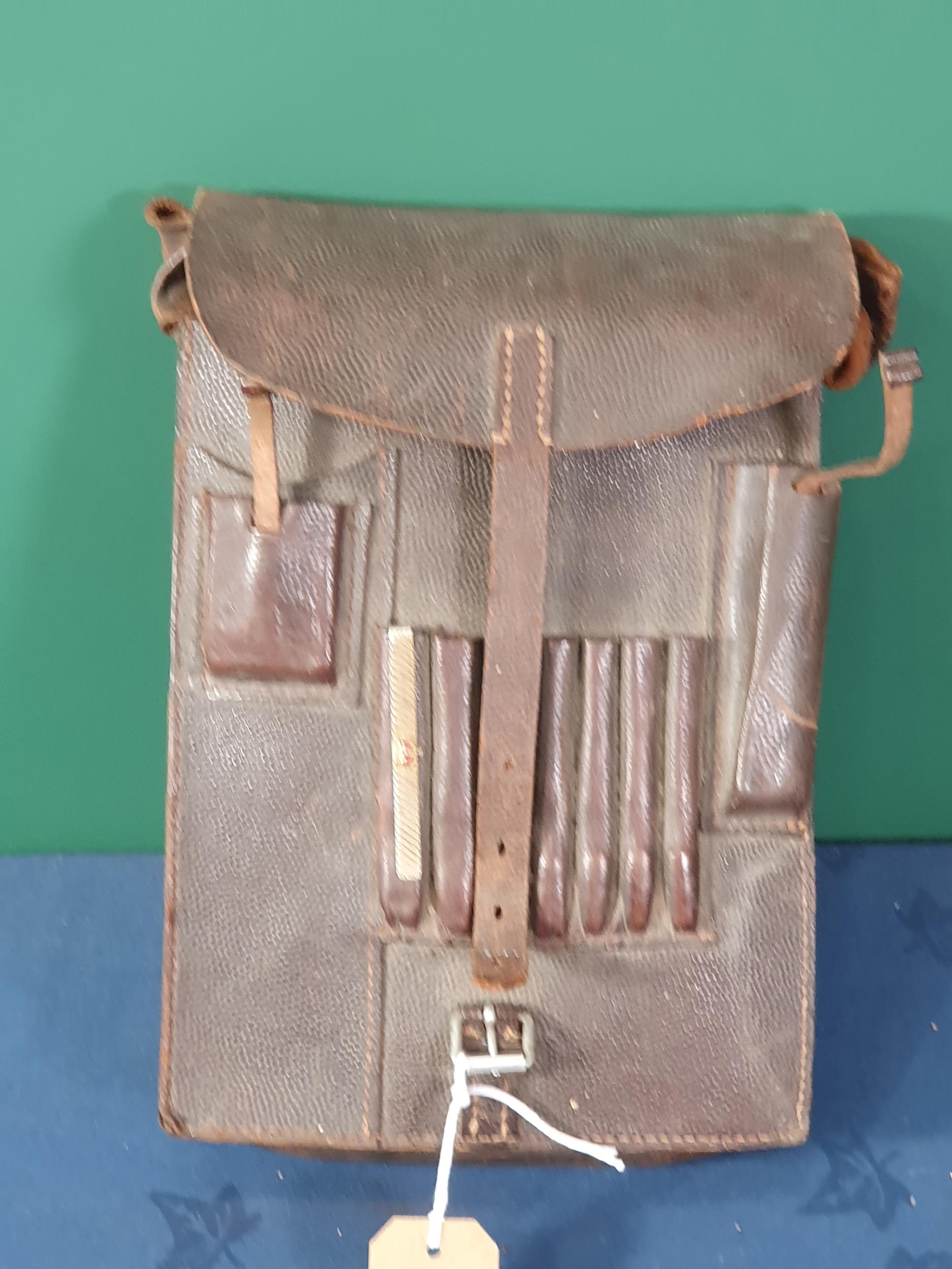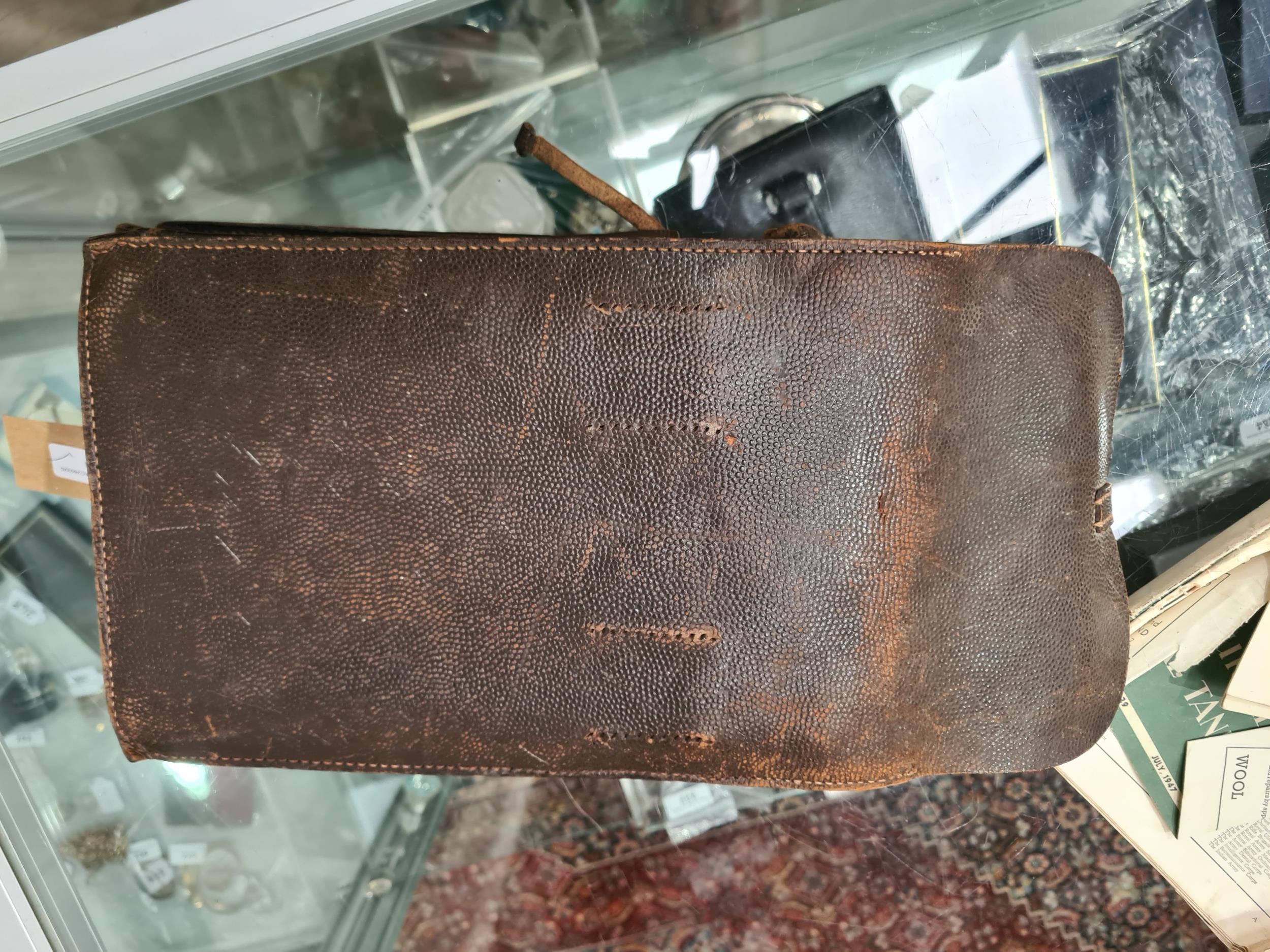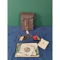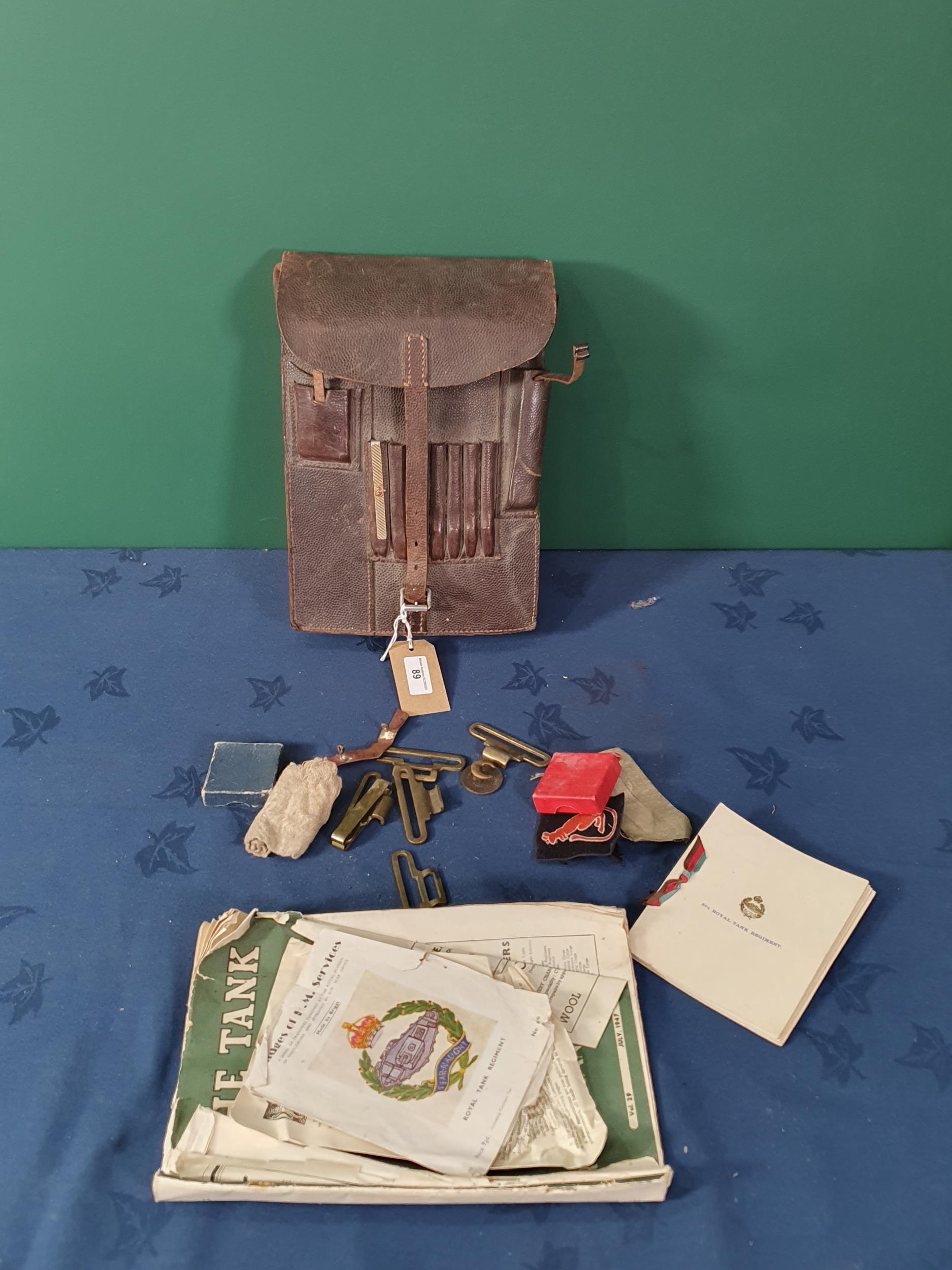 A leather military Map/Document Case, brass buckles, badges etc, (R2)