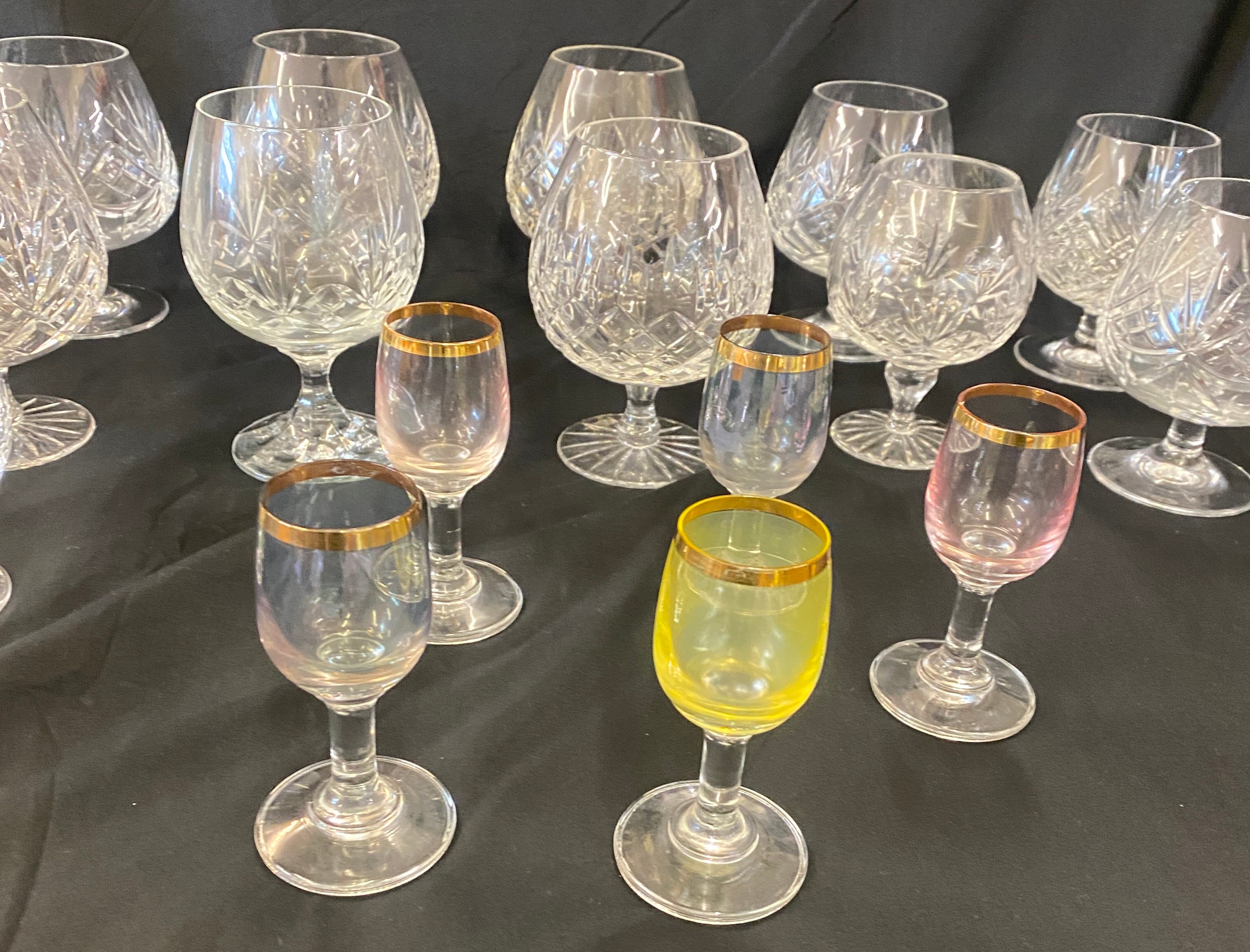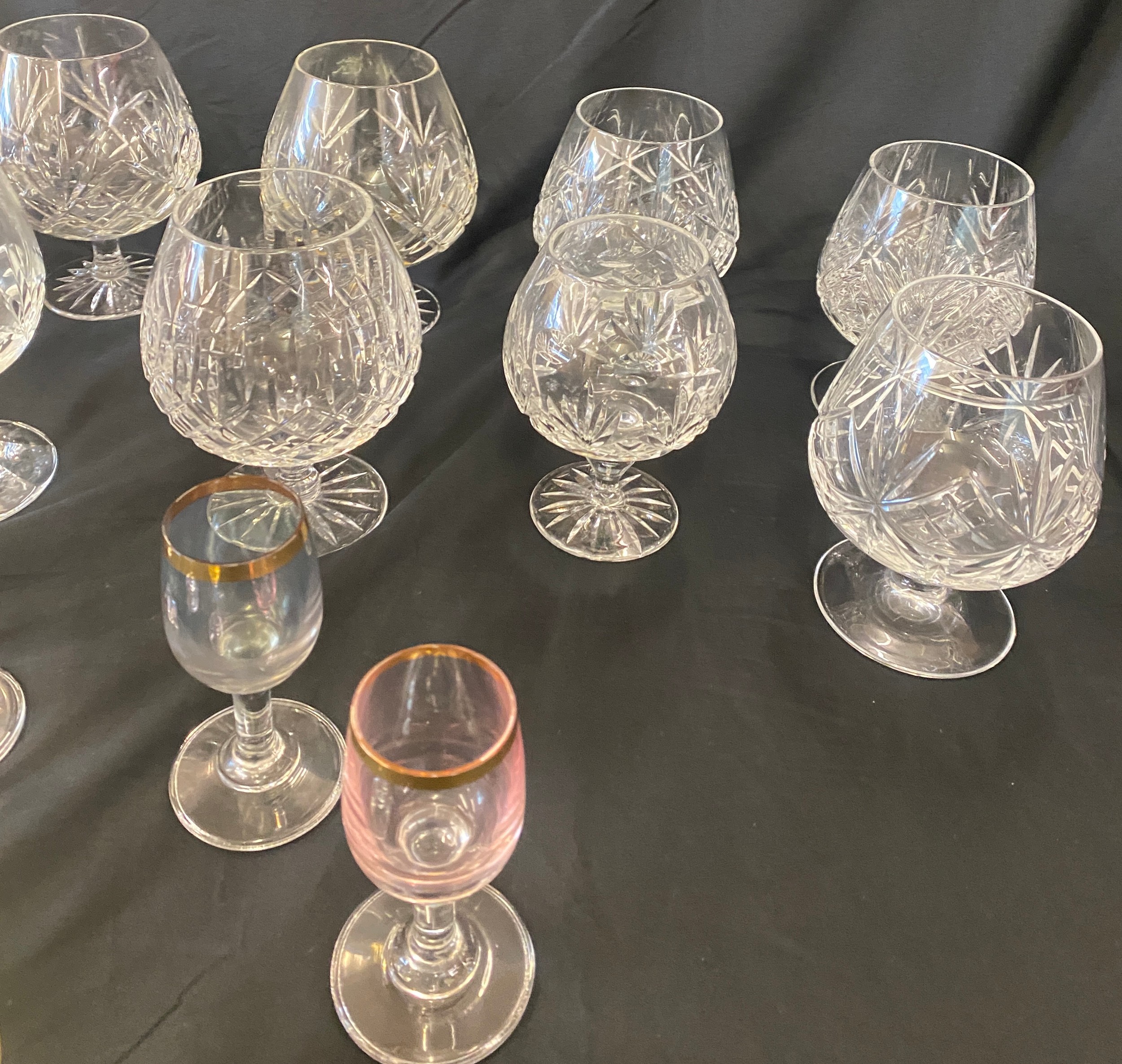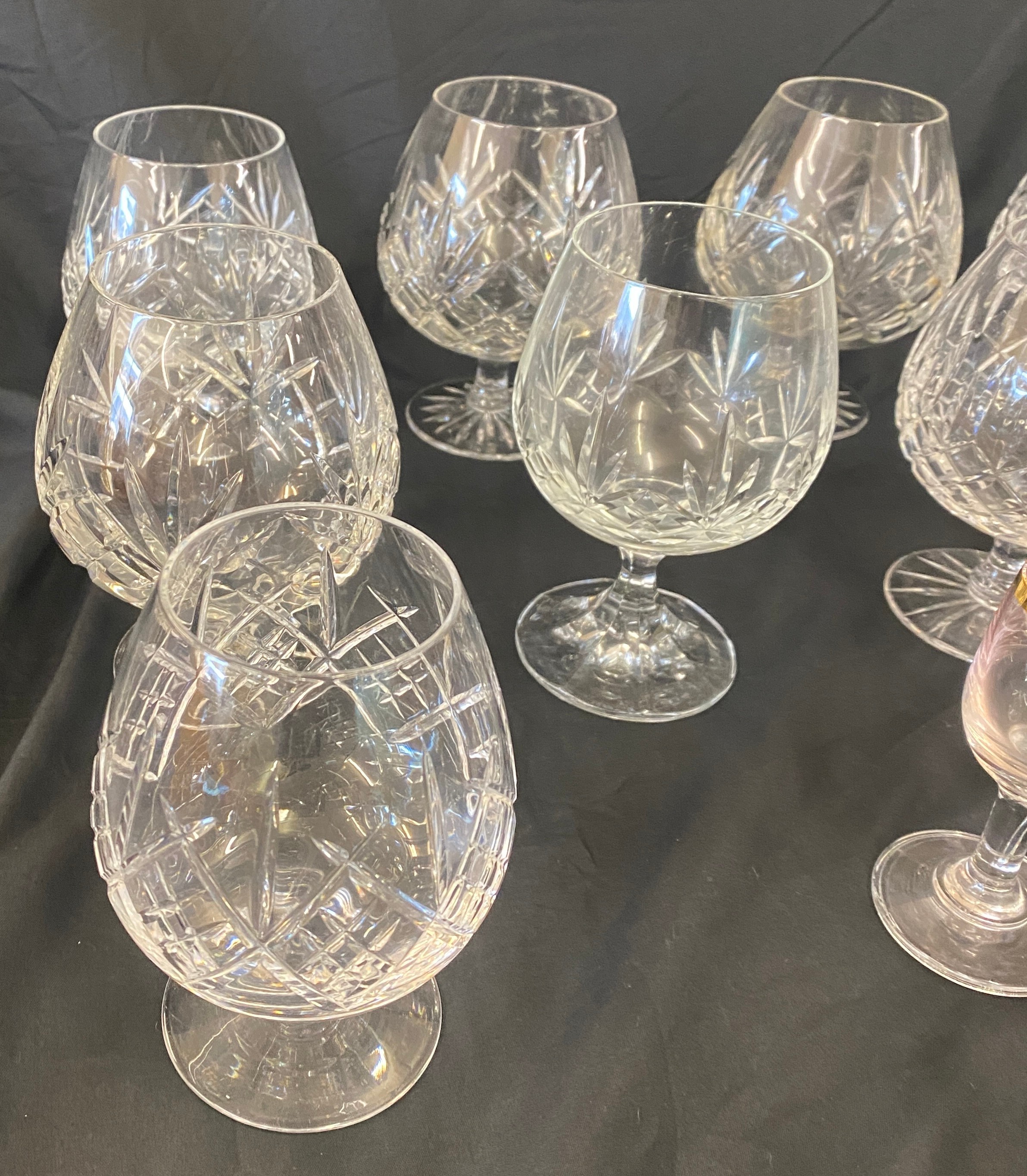 Selection of crystal glass brandy glasses