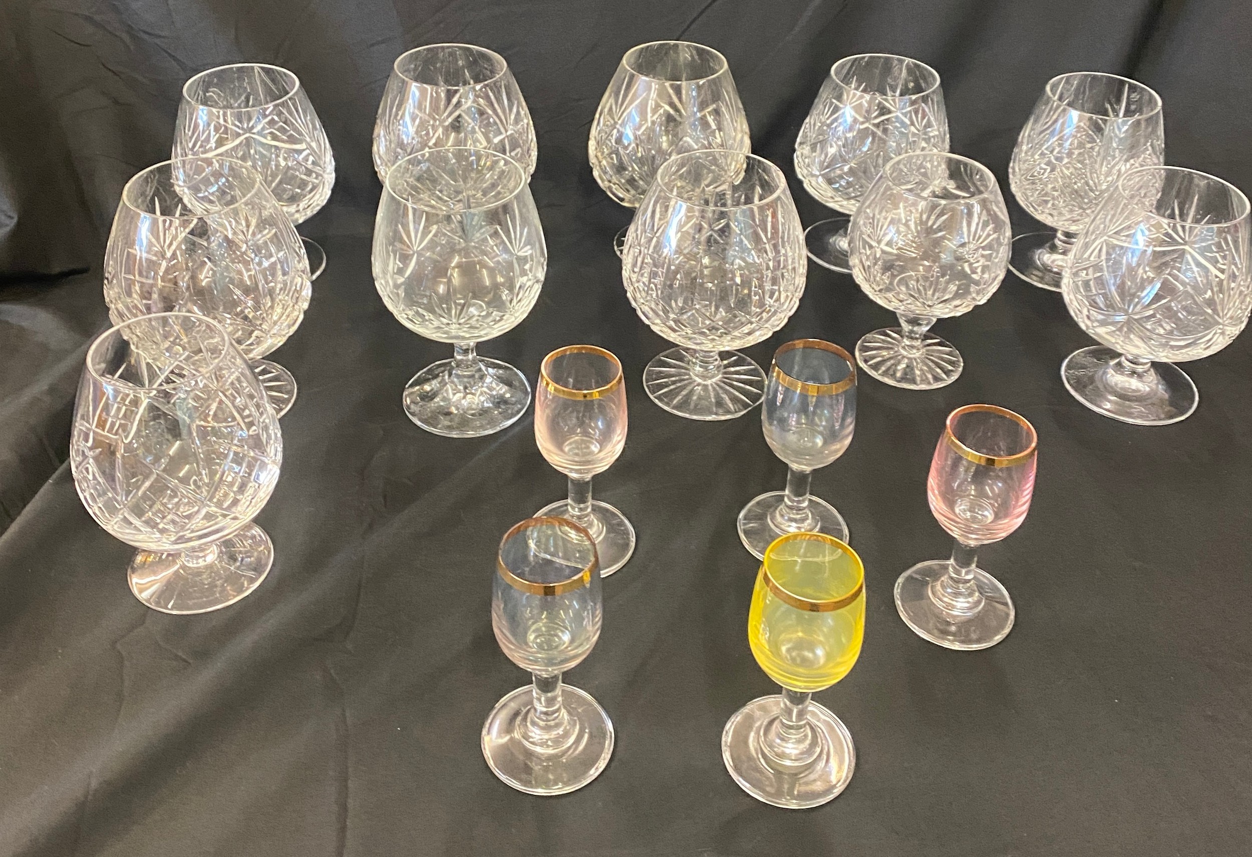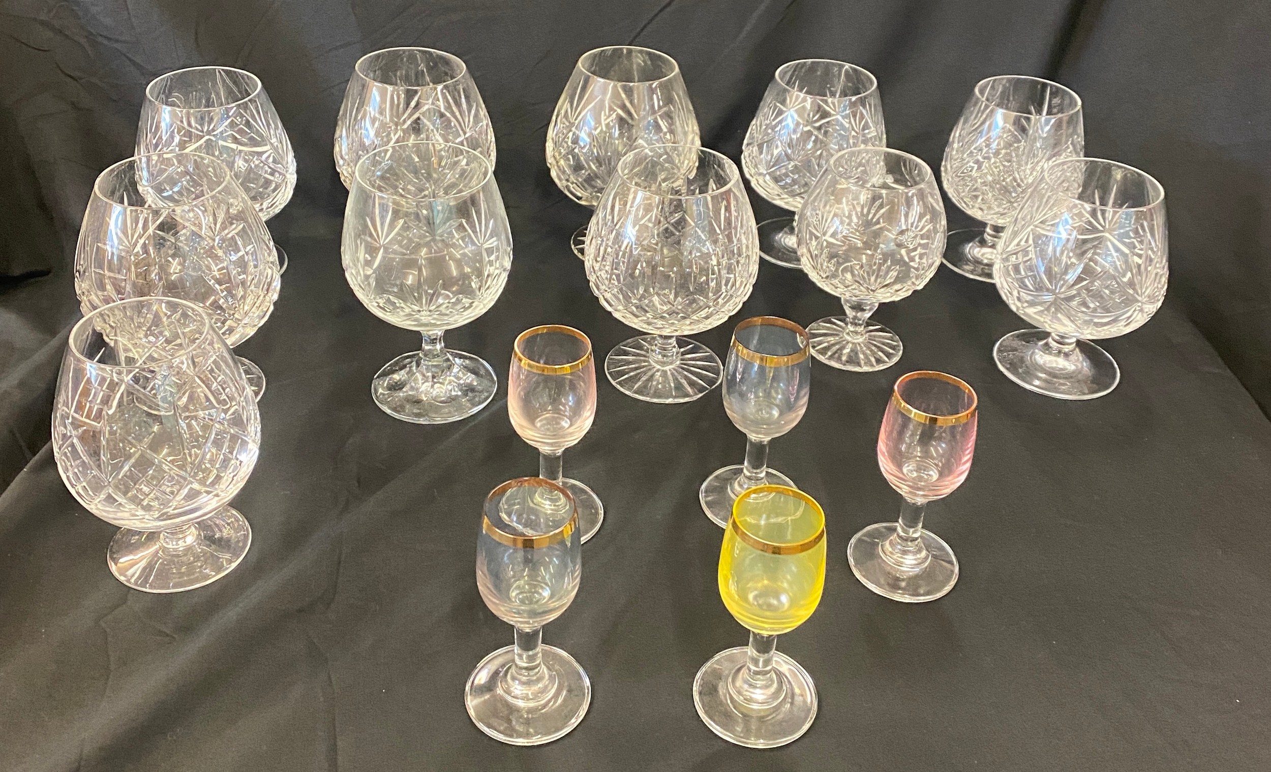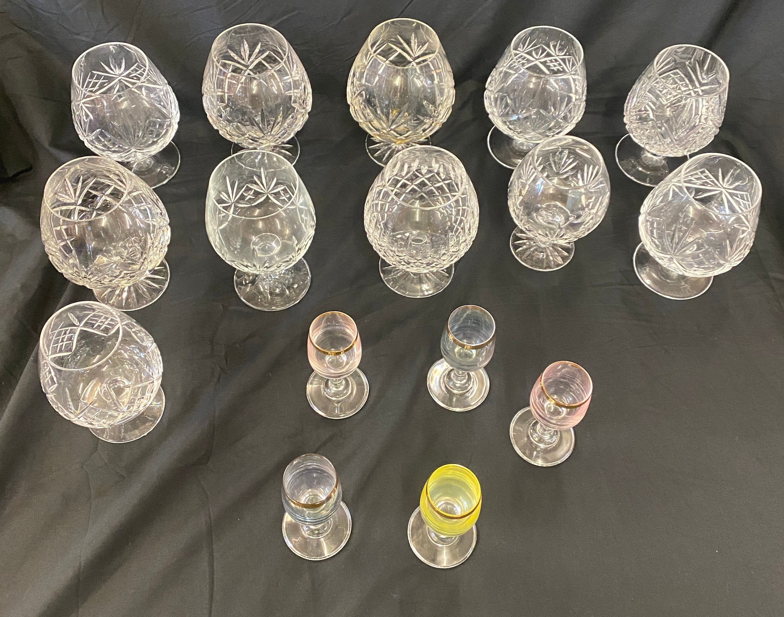 Selection of crystal glass brandy glasses