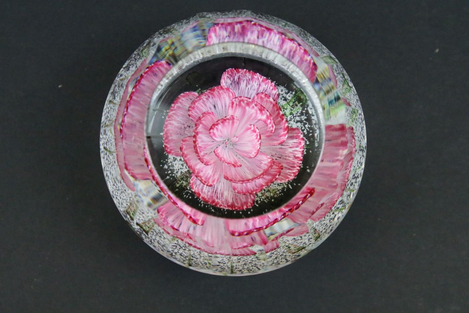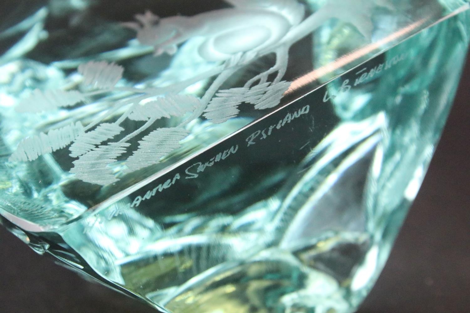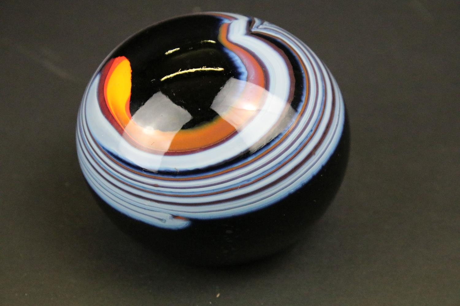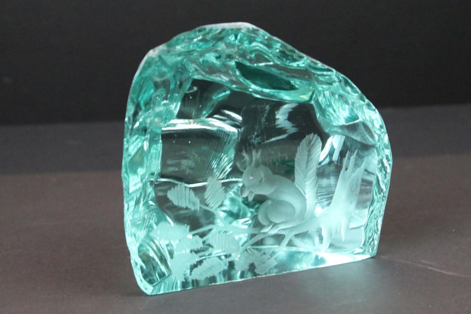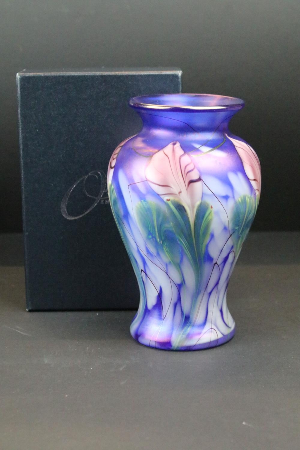 Group of 20th century glassware to include an Okra vase (boxed, approx 16.5cm high), Swedish glass paperweight (signed), Caithness 'Zest' paperweight, etc