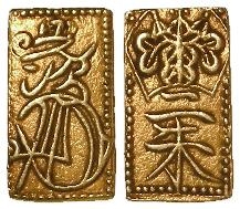 Japan gold & silver 2 Shu (Nishu Gin) Tempo era ND (1832-58) 1.61g. C# 18. NEF