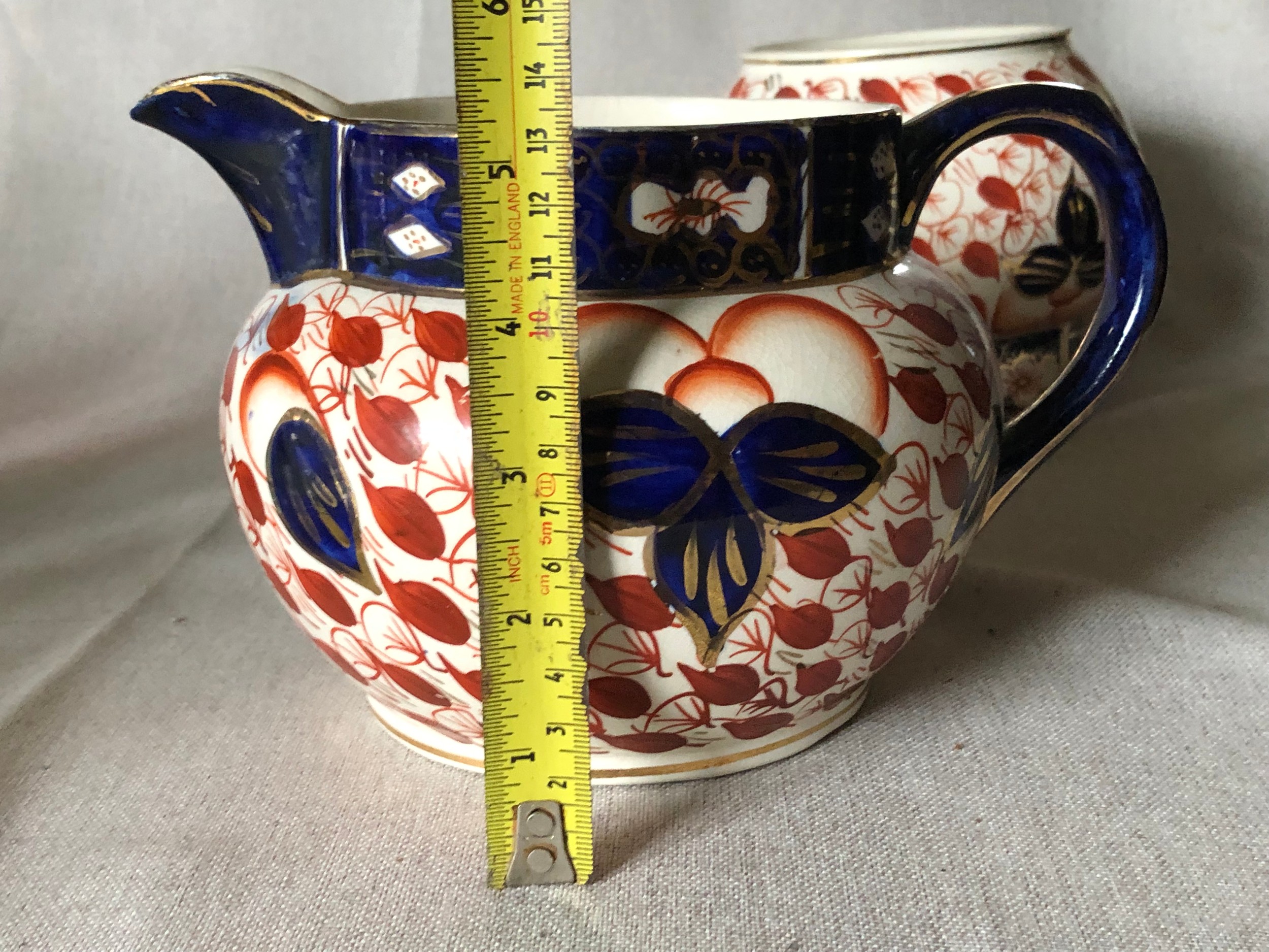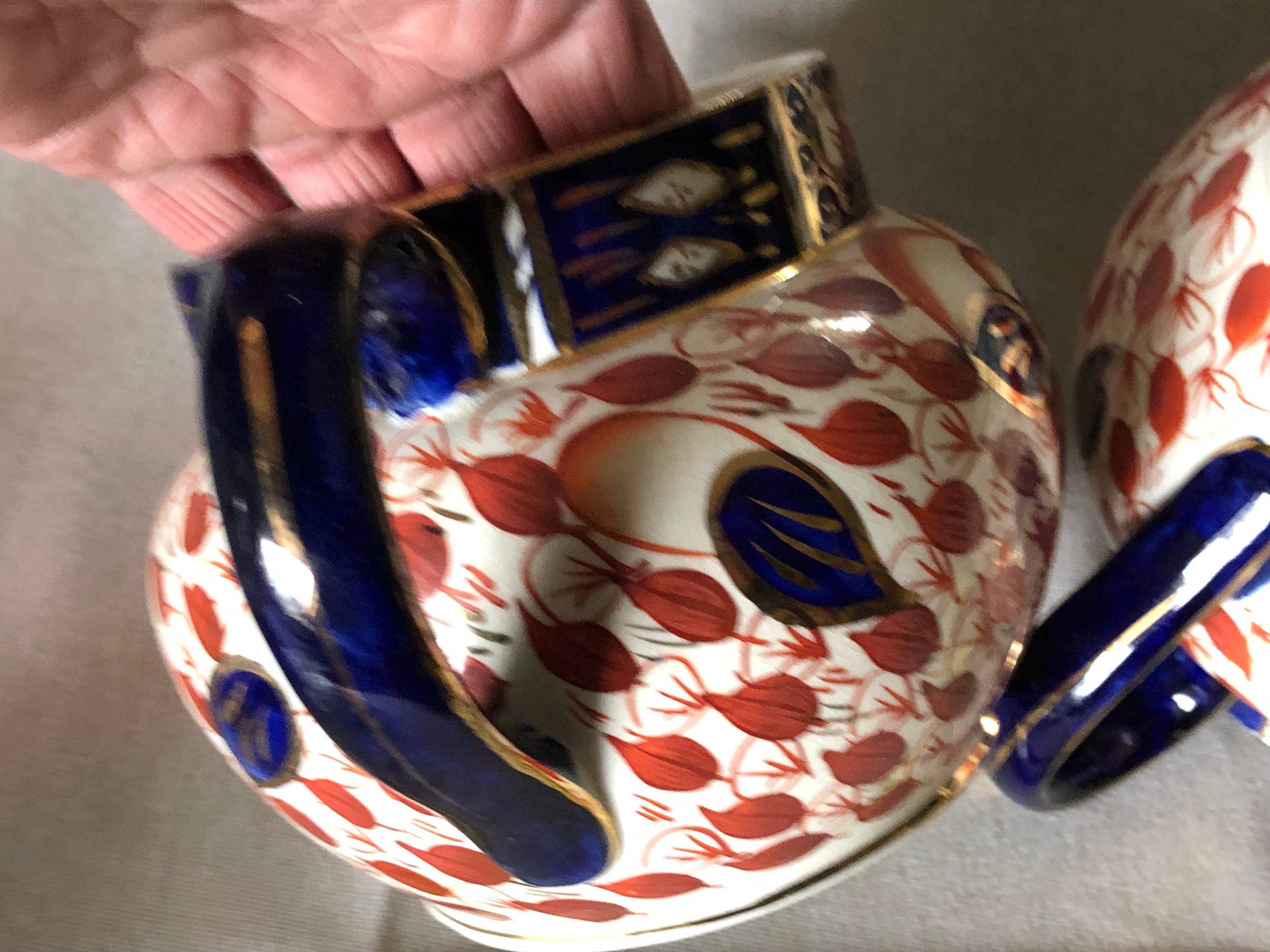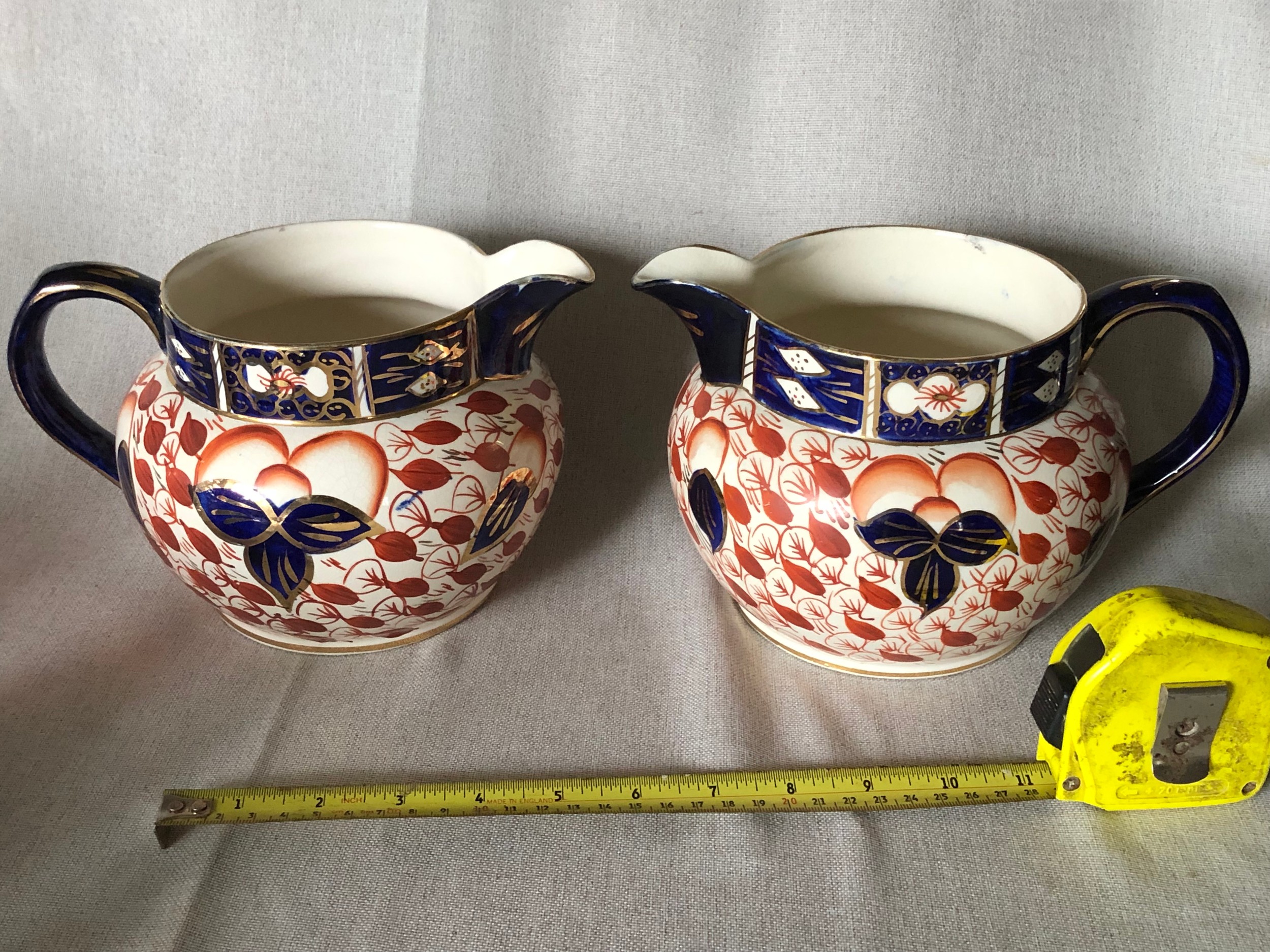 Pair of large Crown Derby Imari jugs in pattern No.1015