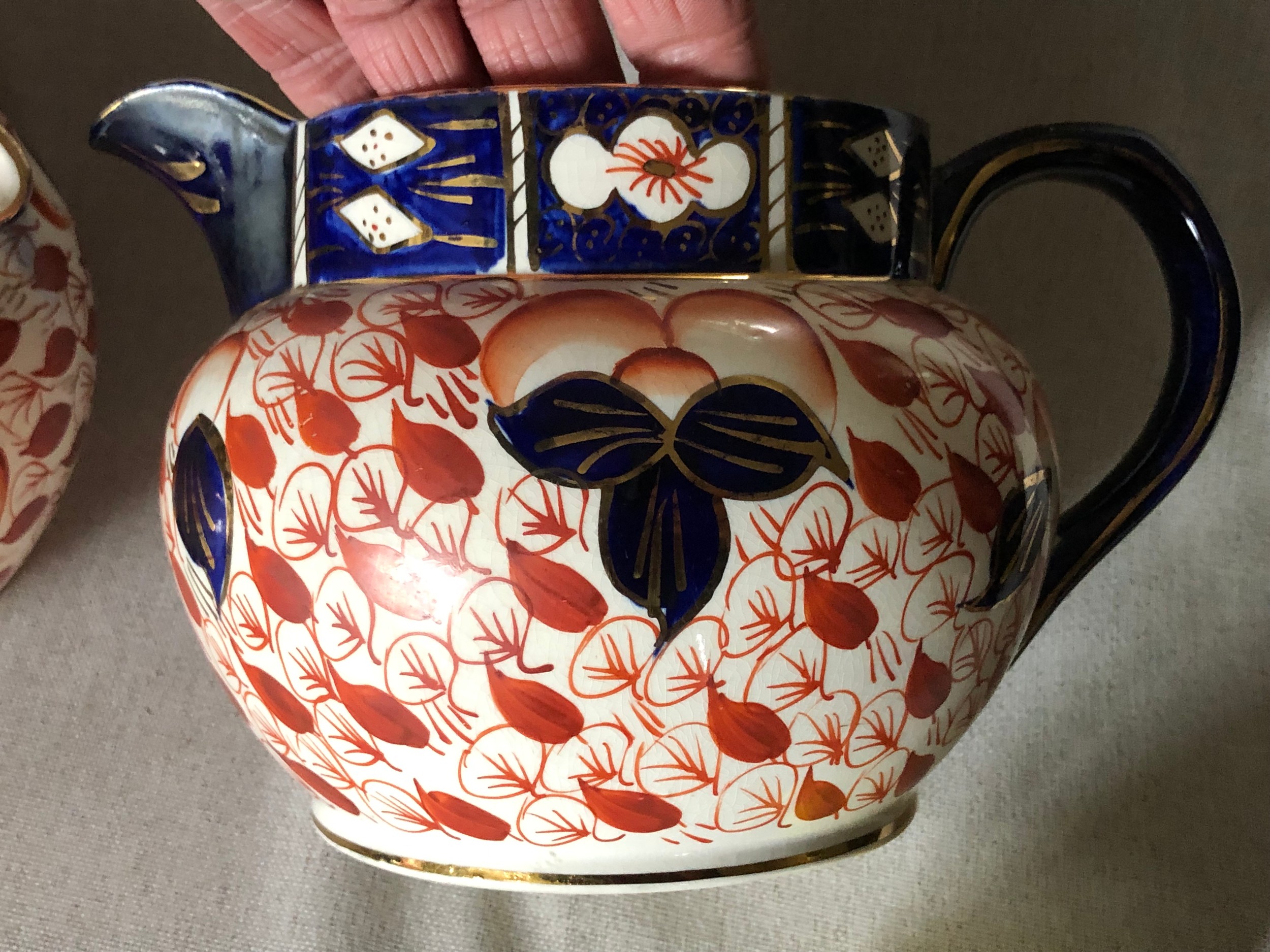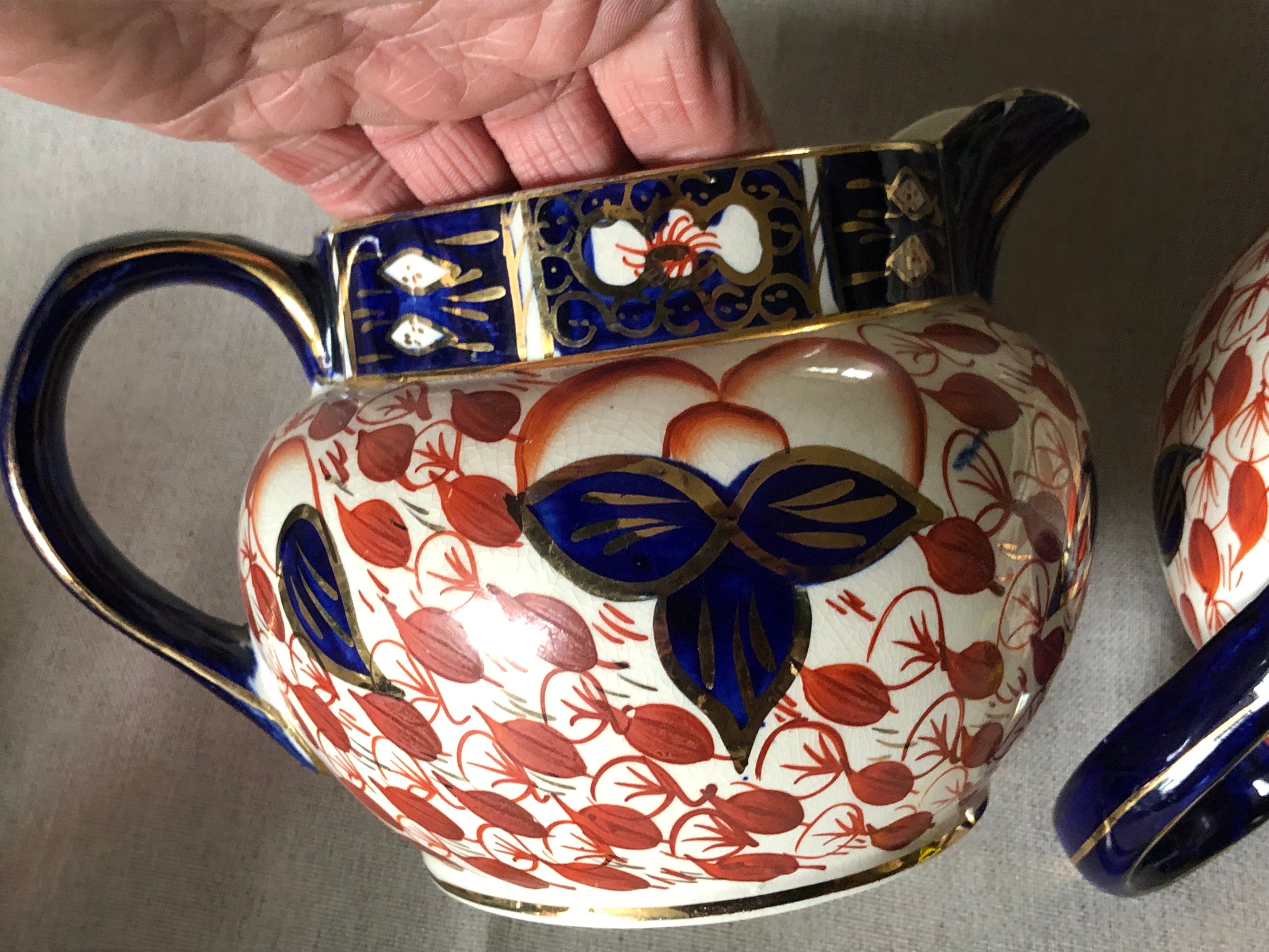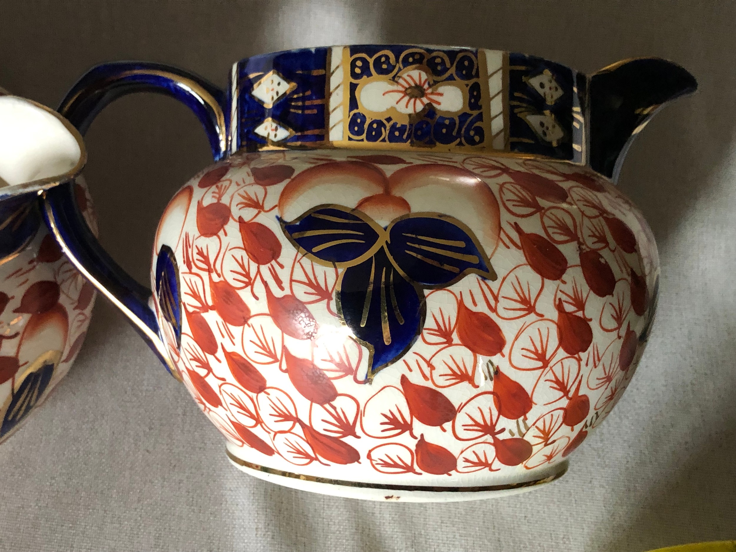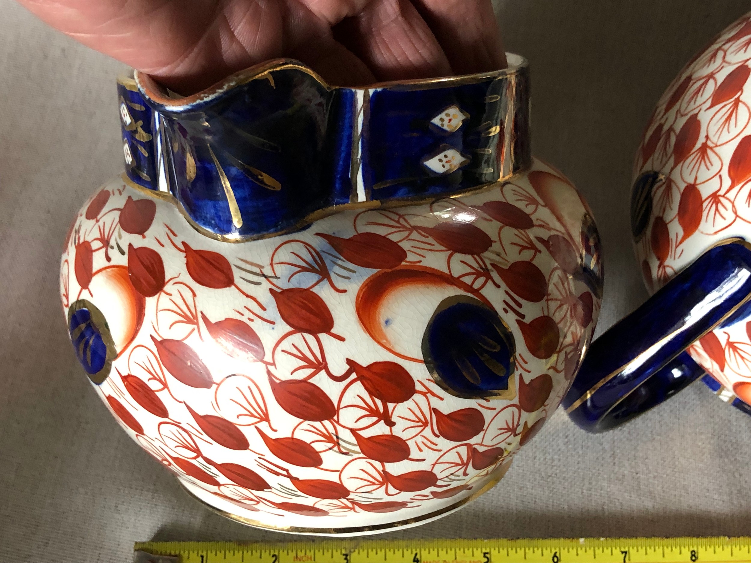 Pair of large Crown Derby Imari jugs in pattern No.1015