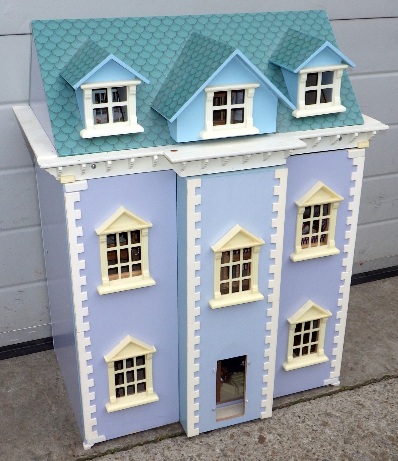 A dolls house and contents, 57cm wide