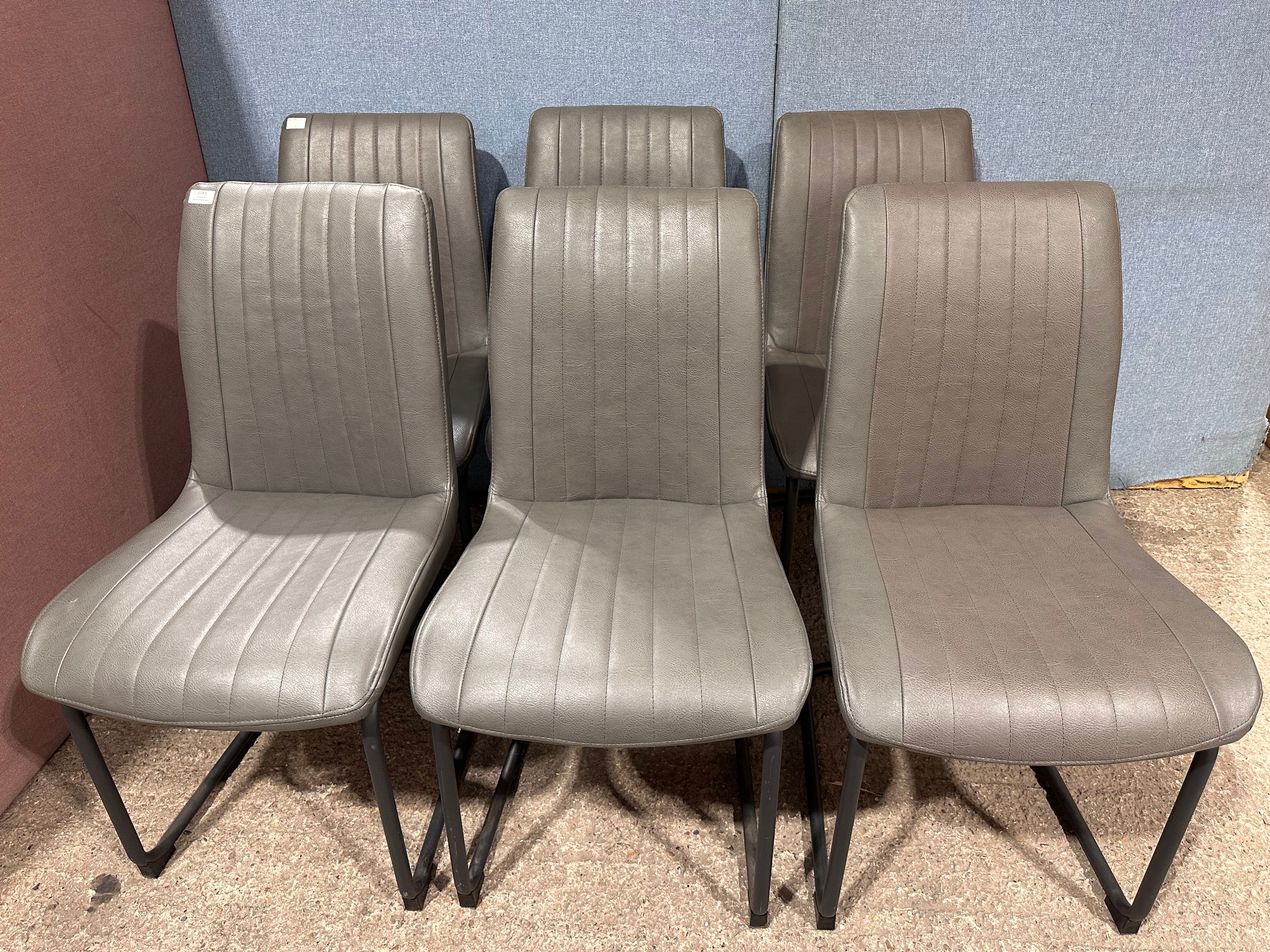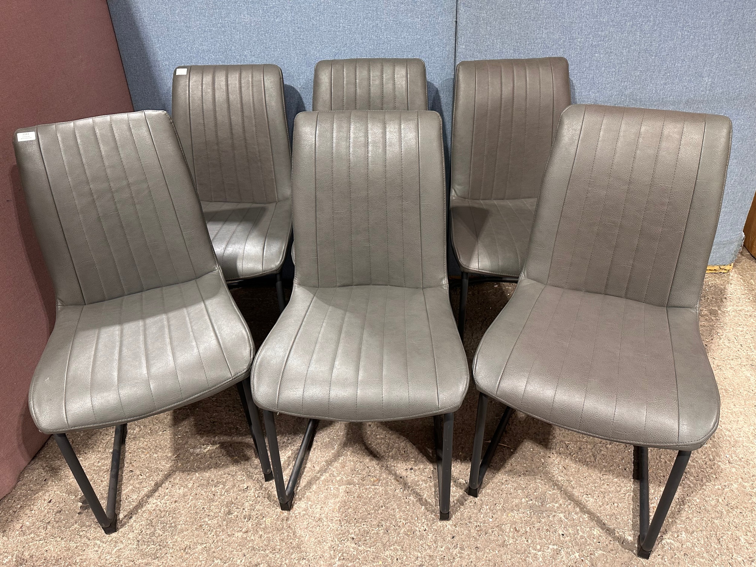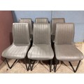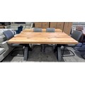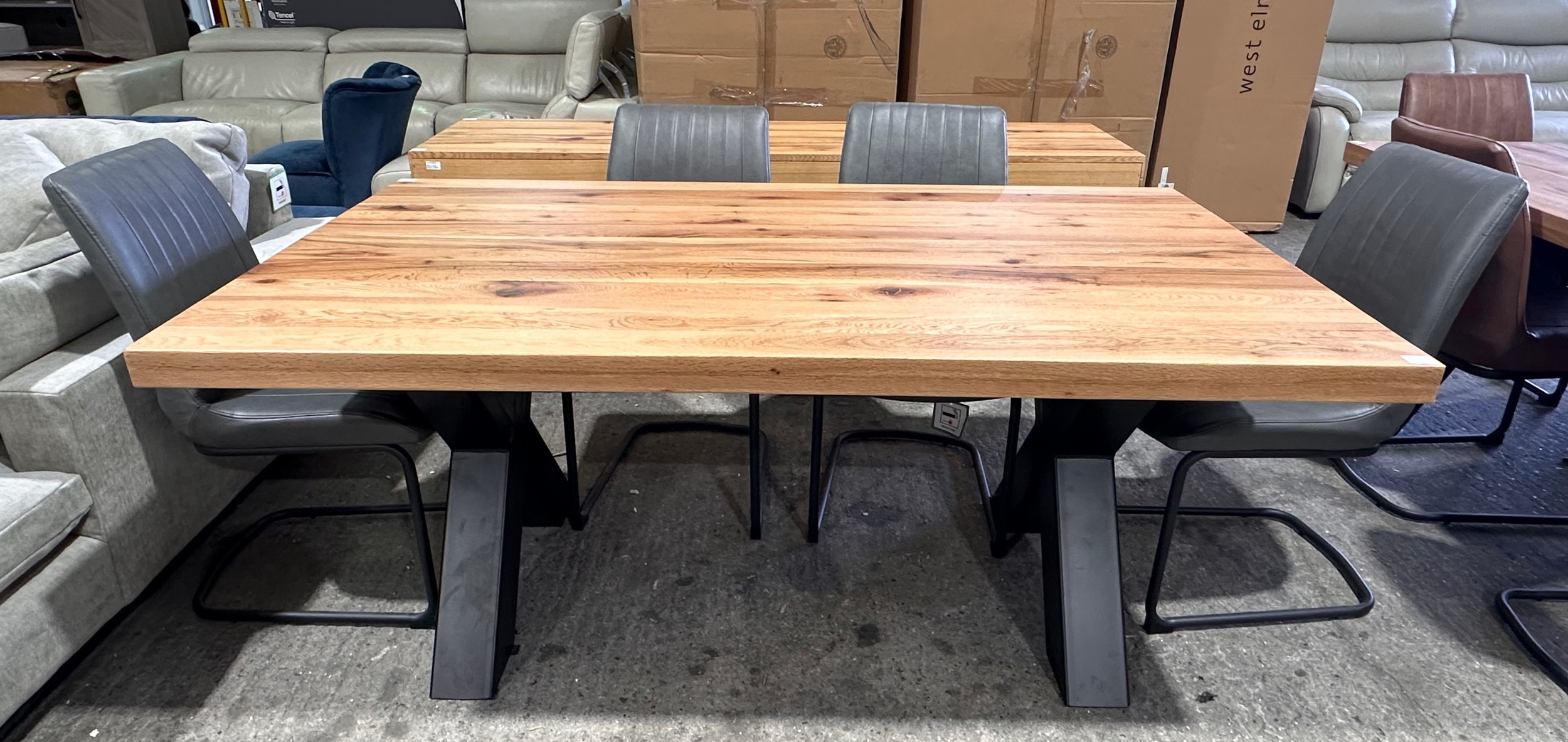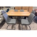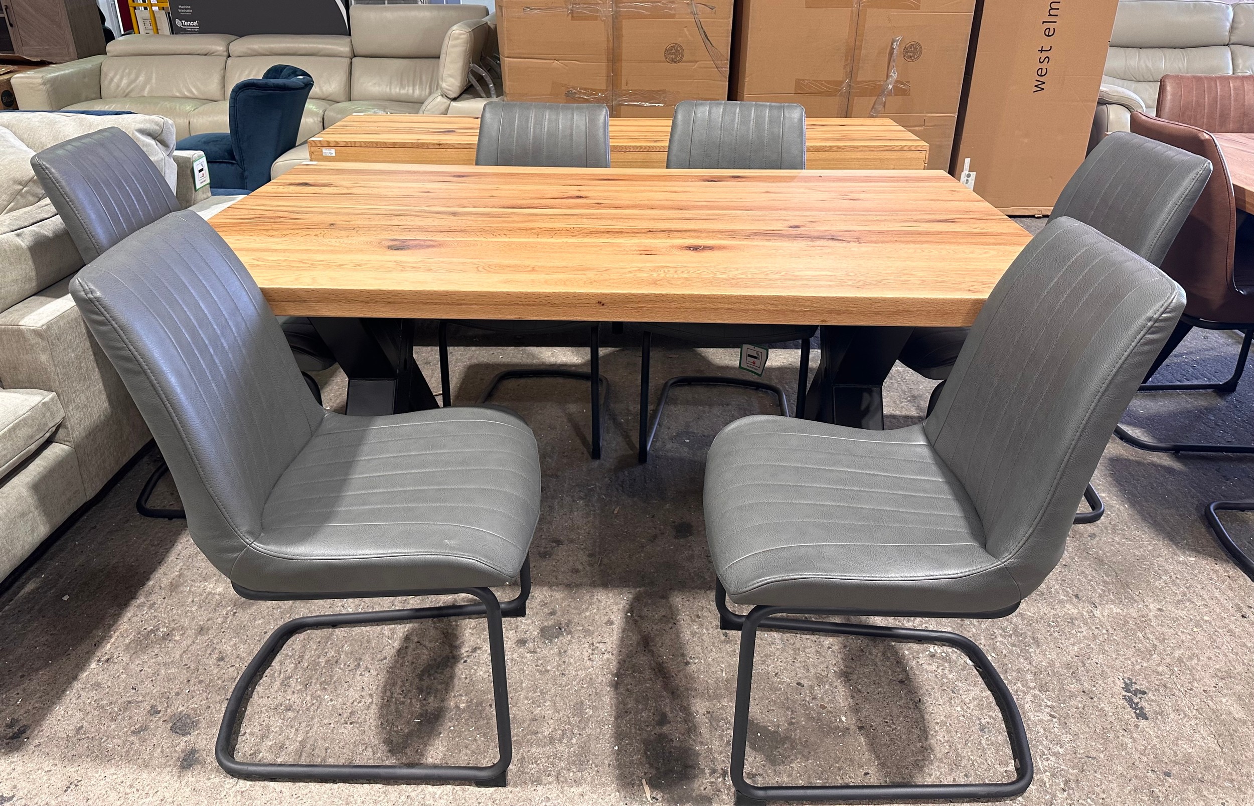 A solid oak 180cm dining table with 6 mushroom leather dining chairs