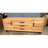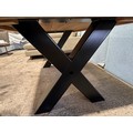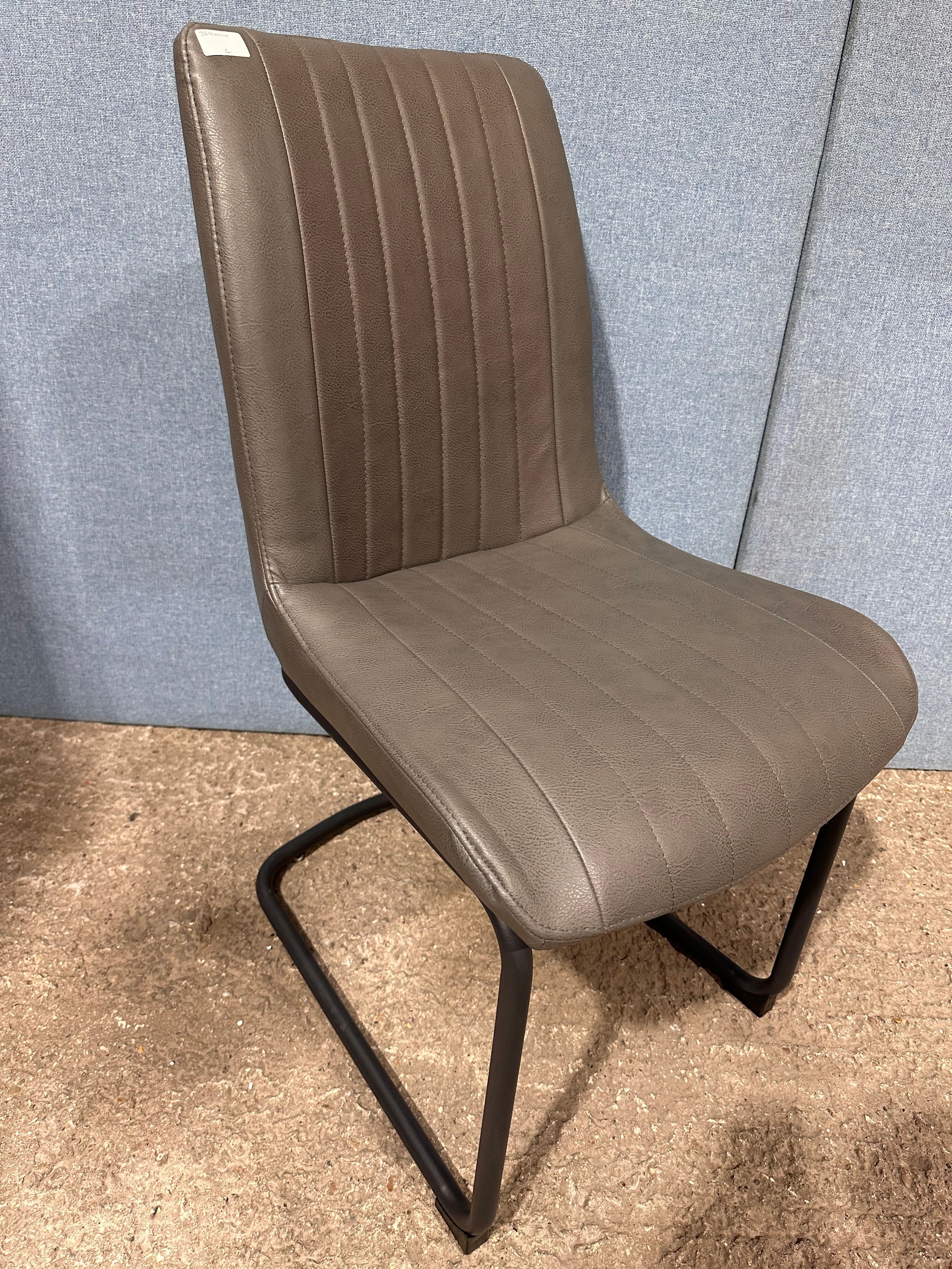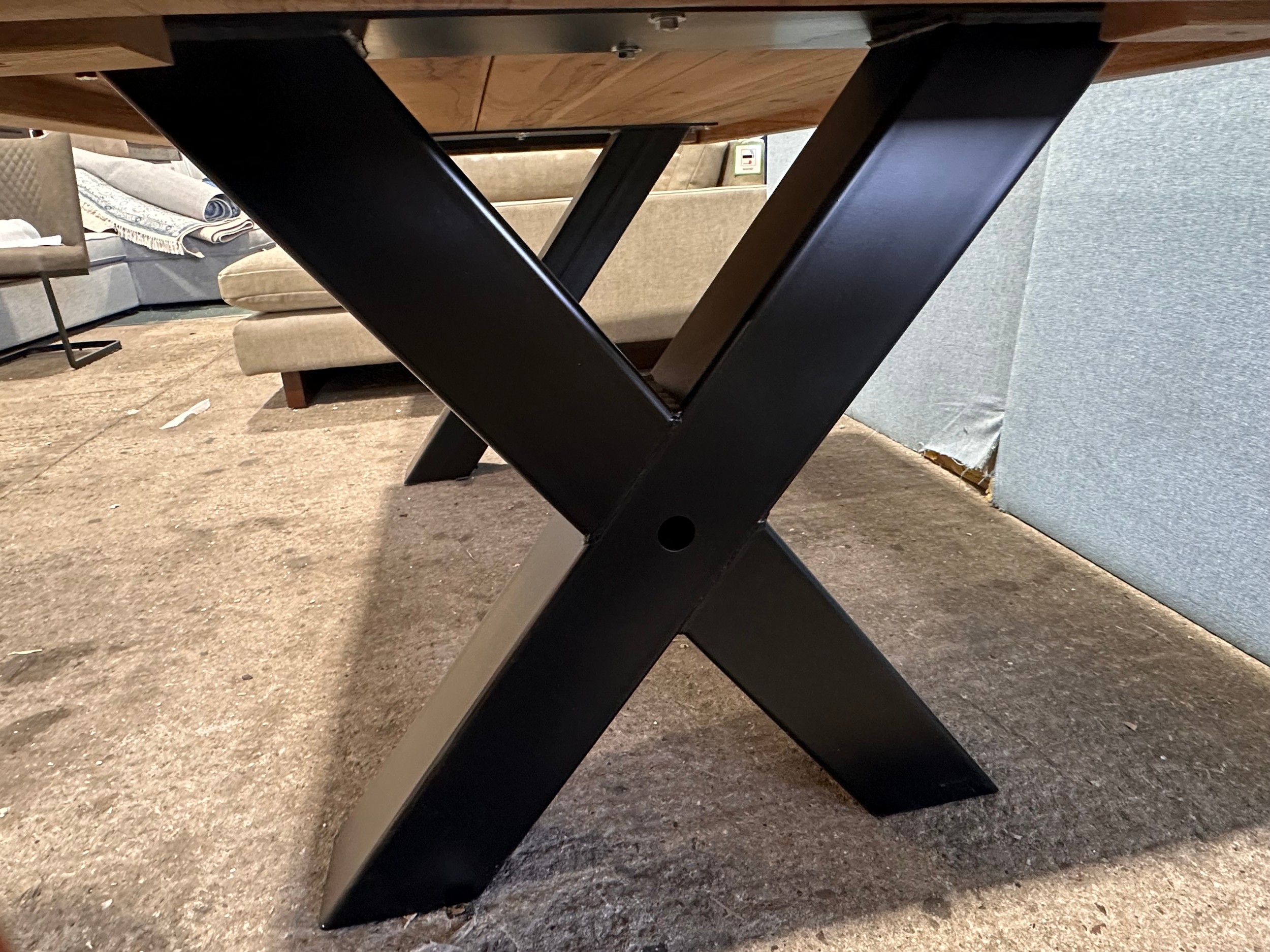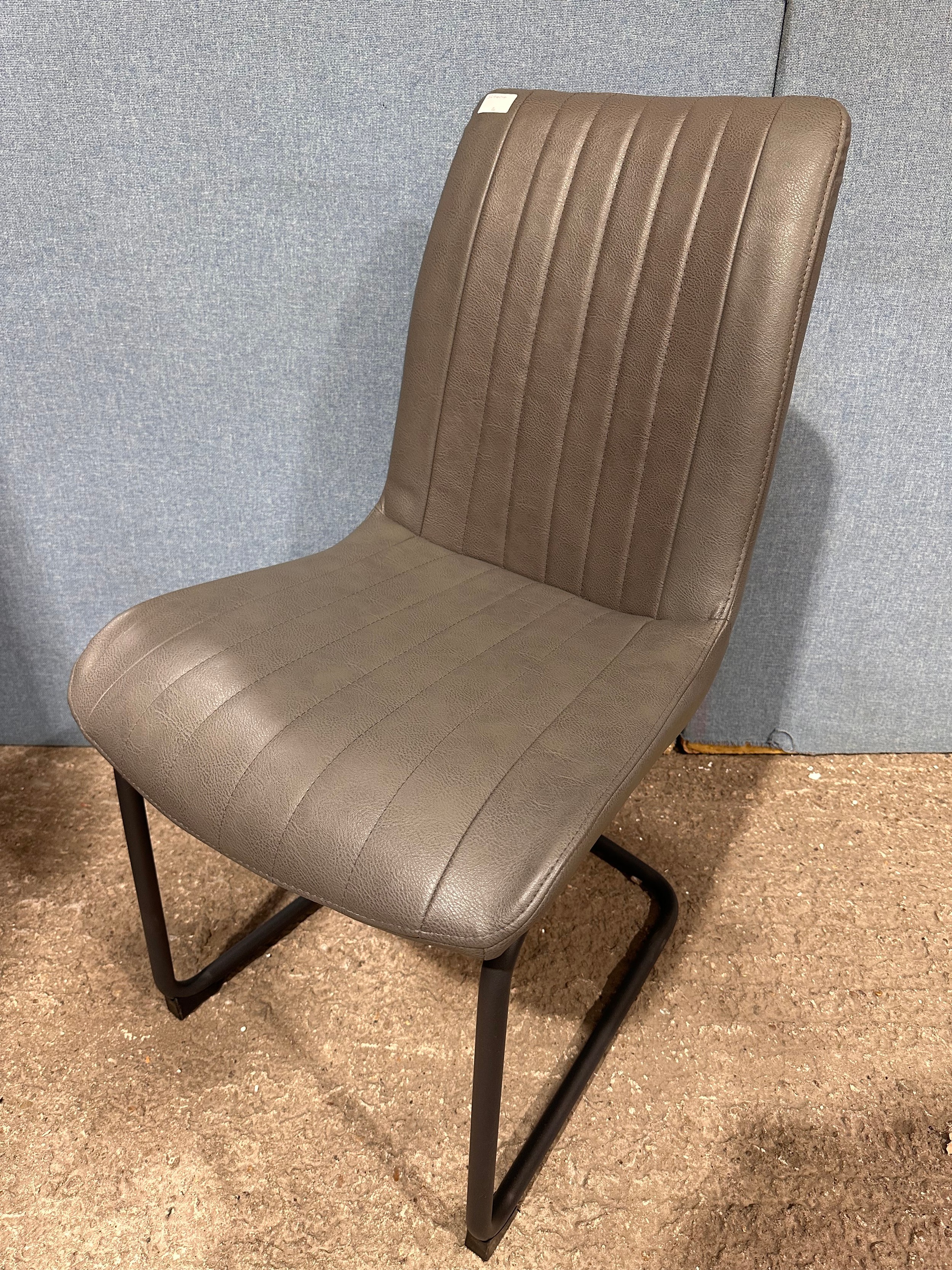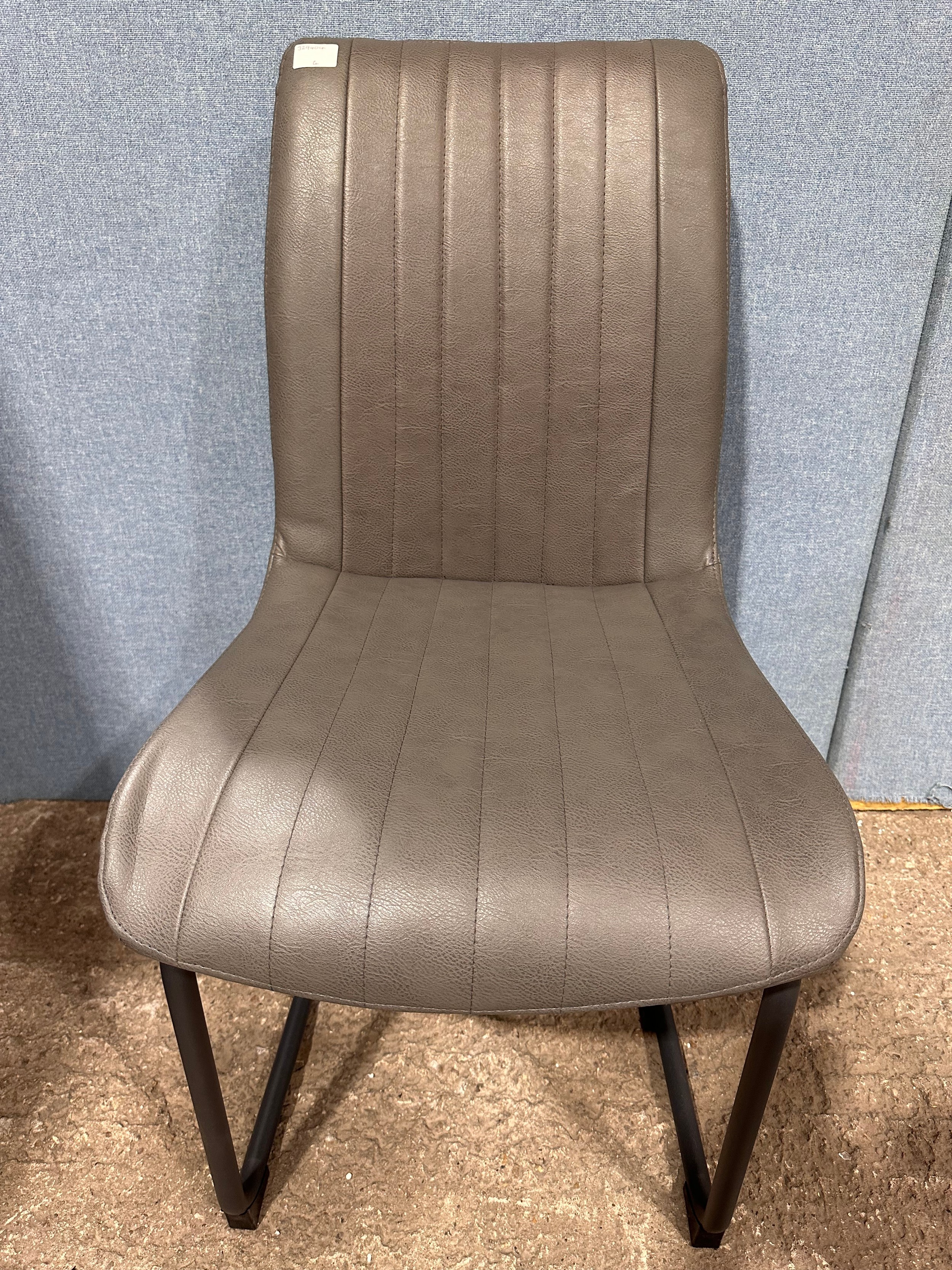 A solid oak 180cm dining table with 6 mushroom leather dining chairs