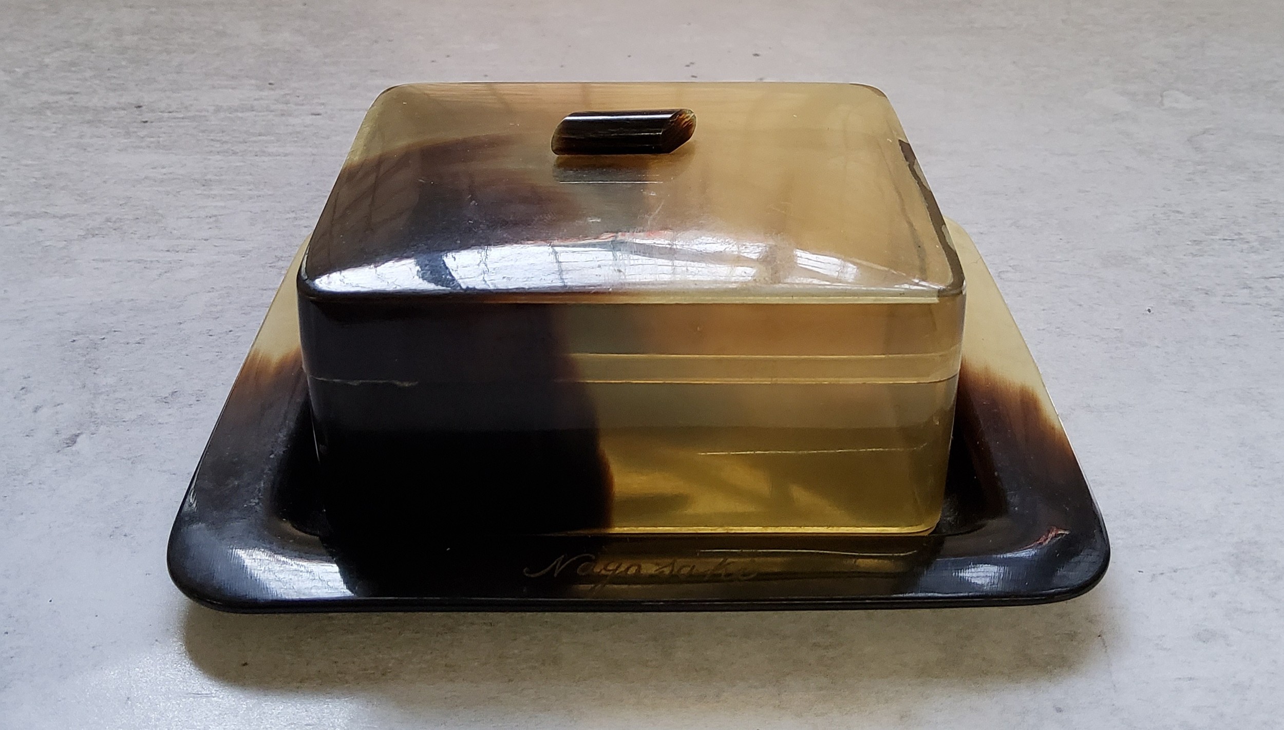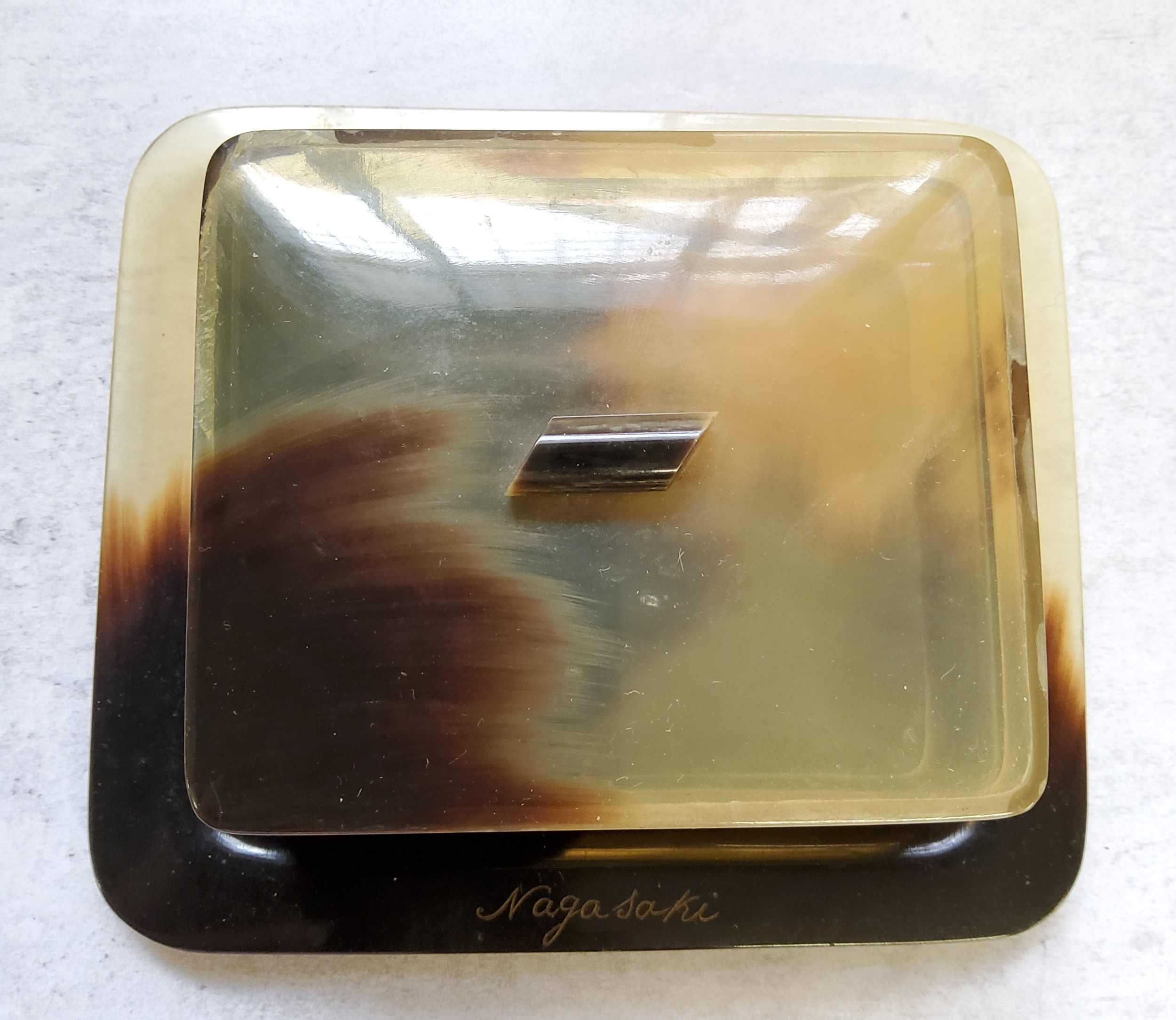 A Japanese 'tortoise shell' box & cover with tray inscribed Nagasaki