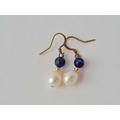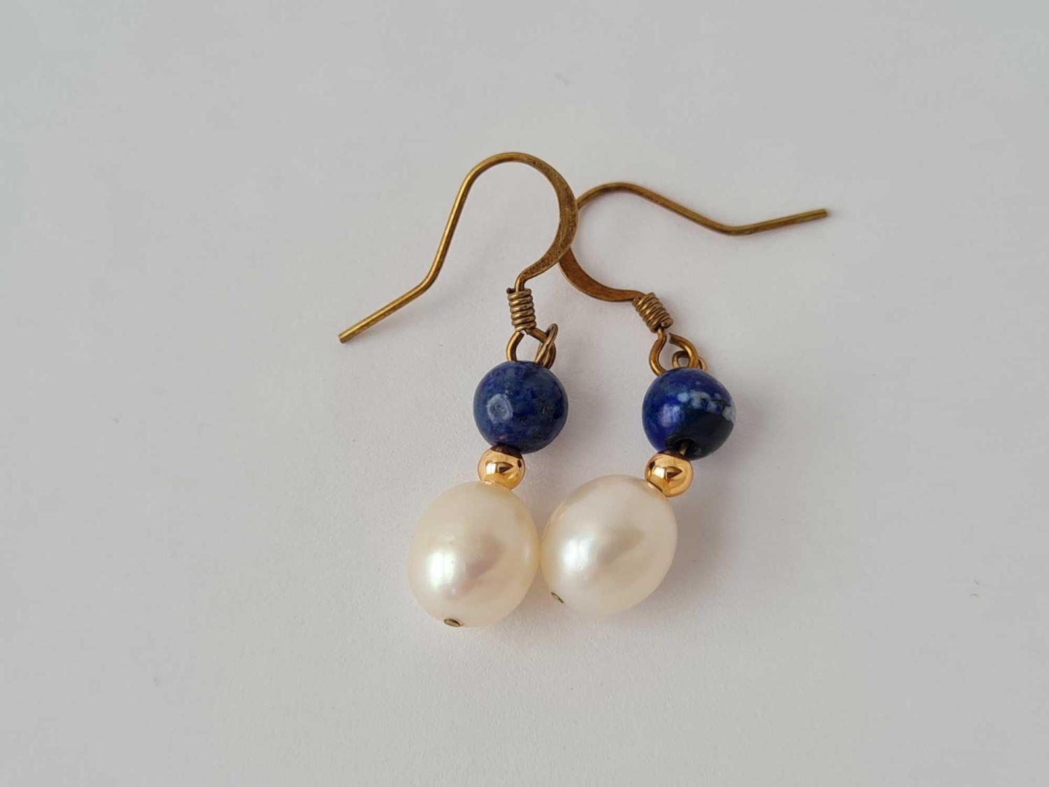 A pair of lapis and pearl drop earrings