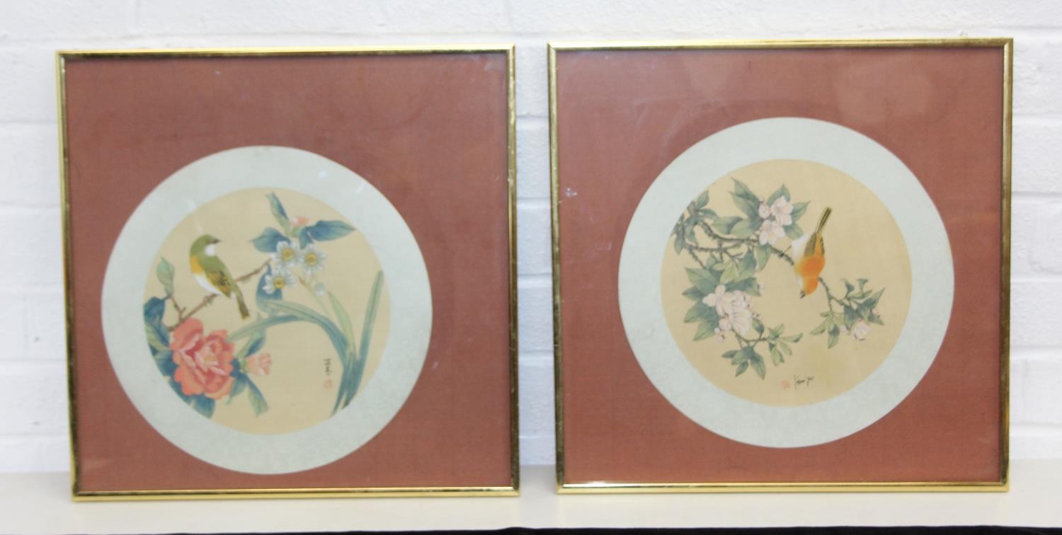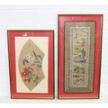 Six assorted Chinese paintings on silk and fabric and an Oriental embroidery, all framed, 20th century, the largest 71cm x 35cm [6]