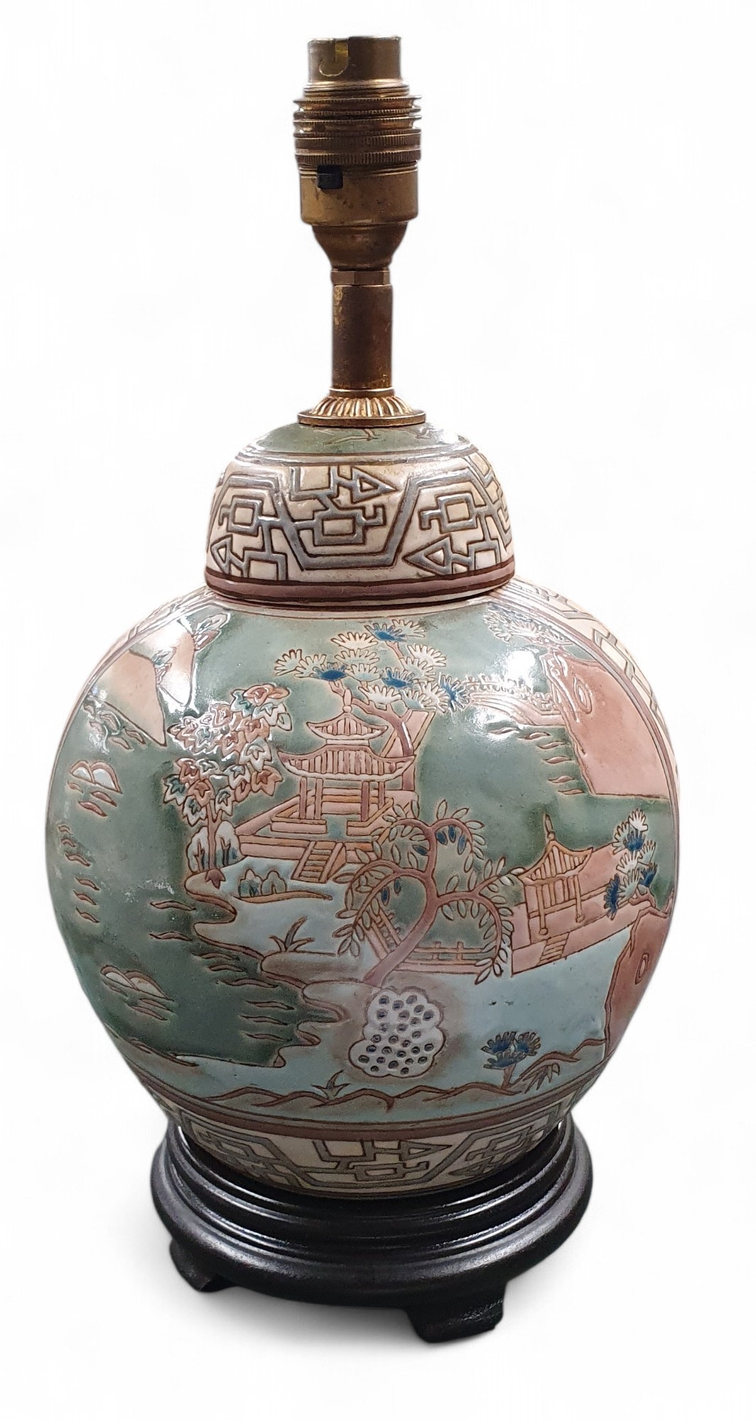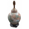 An Oriental green ground Table Lamp converted from a ginger jar with hand painted panel decoration.
