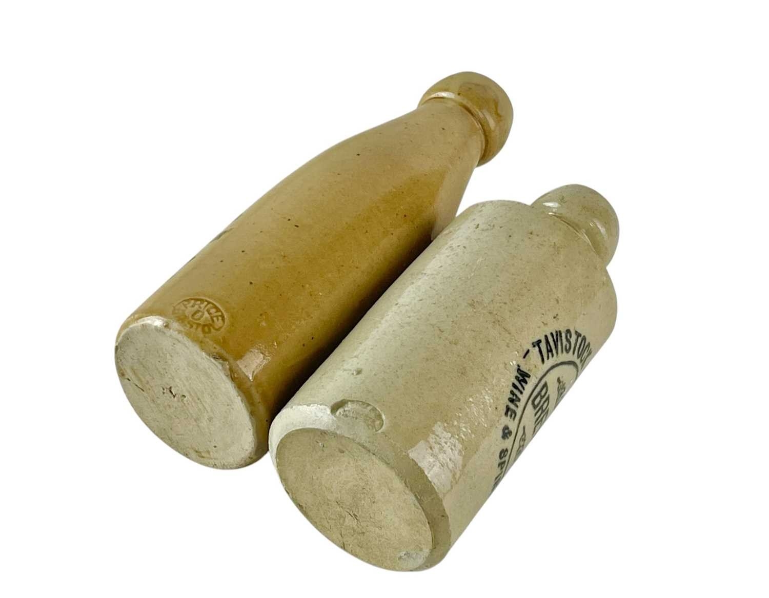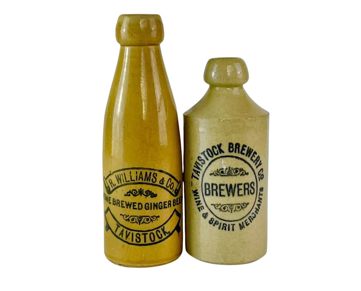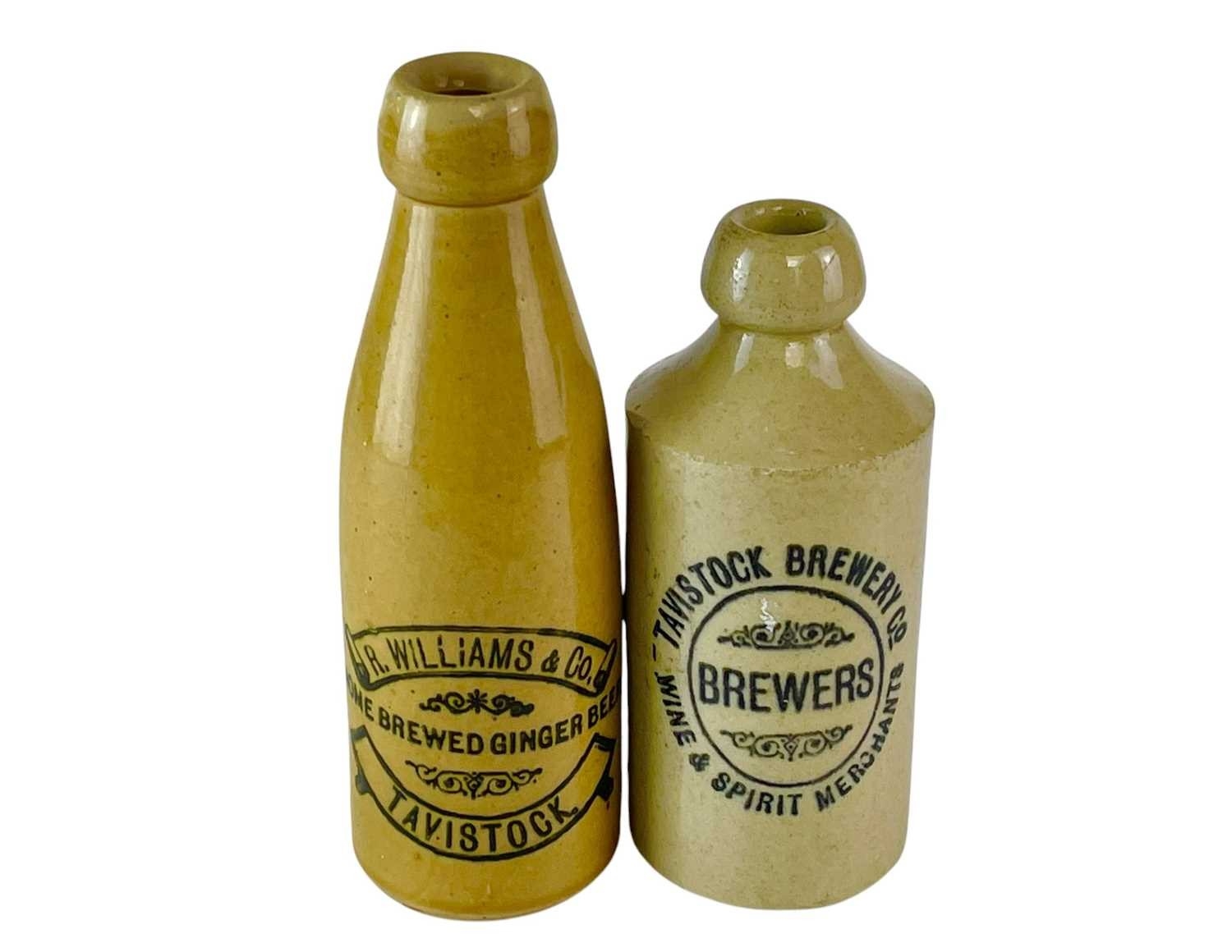 A Tavistock Brewery Co stoneware ginger beer bottle. Height 17cm, together with an R. Williams & Co bottle (cracked) (2).