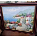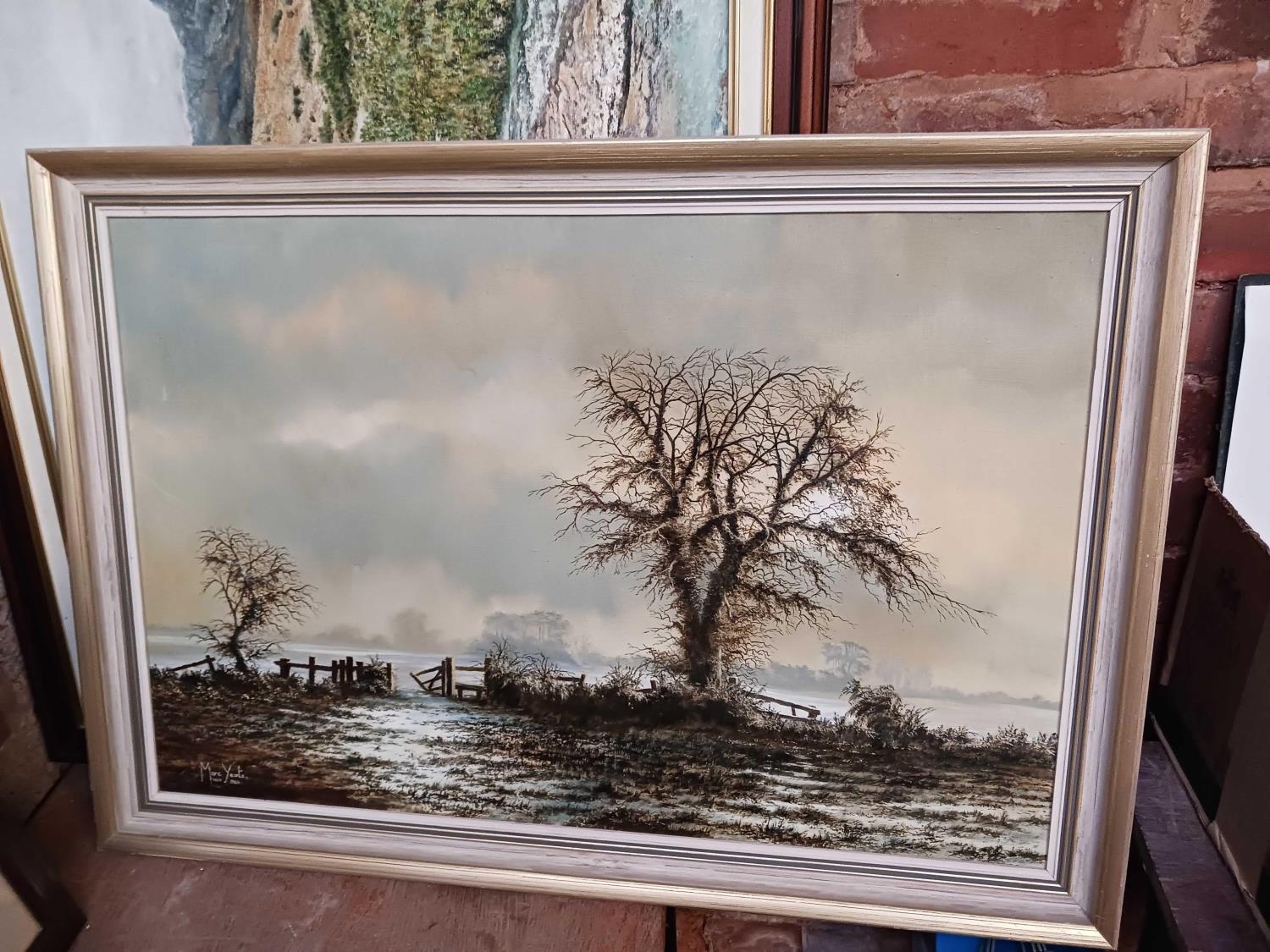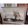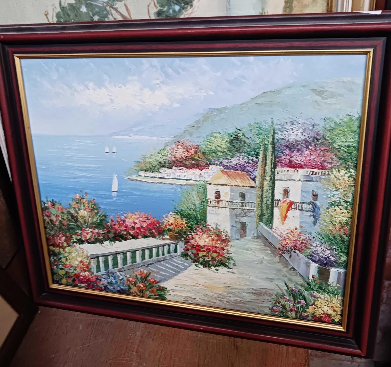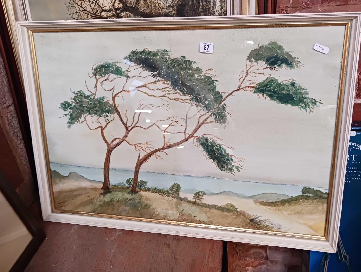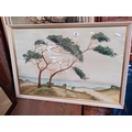 F/G WATERCOLOUR OF A TREE & SEASCAPE SCENE & 3 OTHERS POSSIBLY OIL ON CANVAS & BOARD