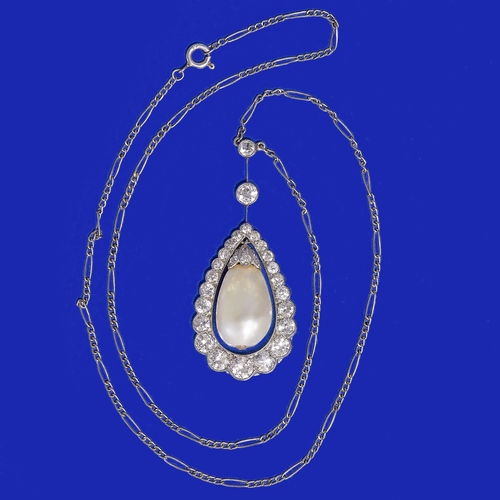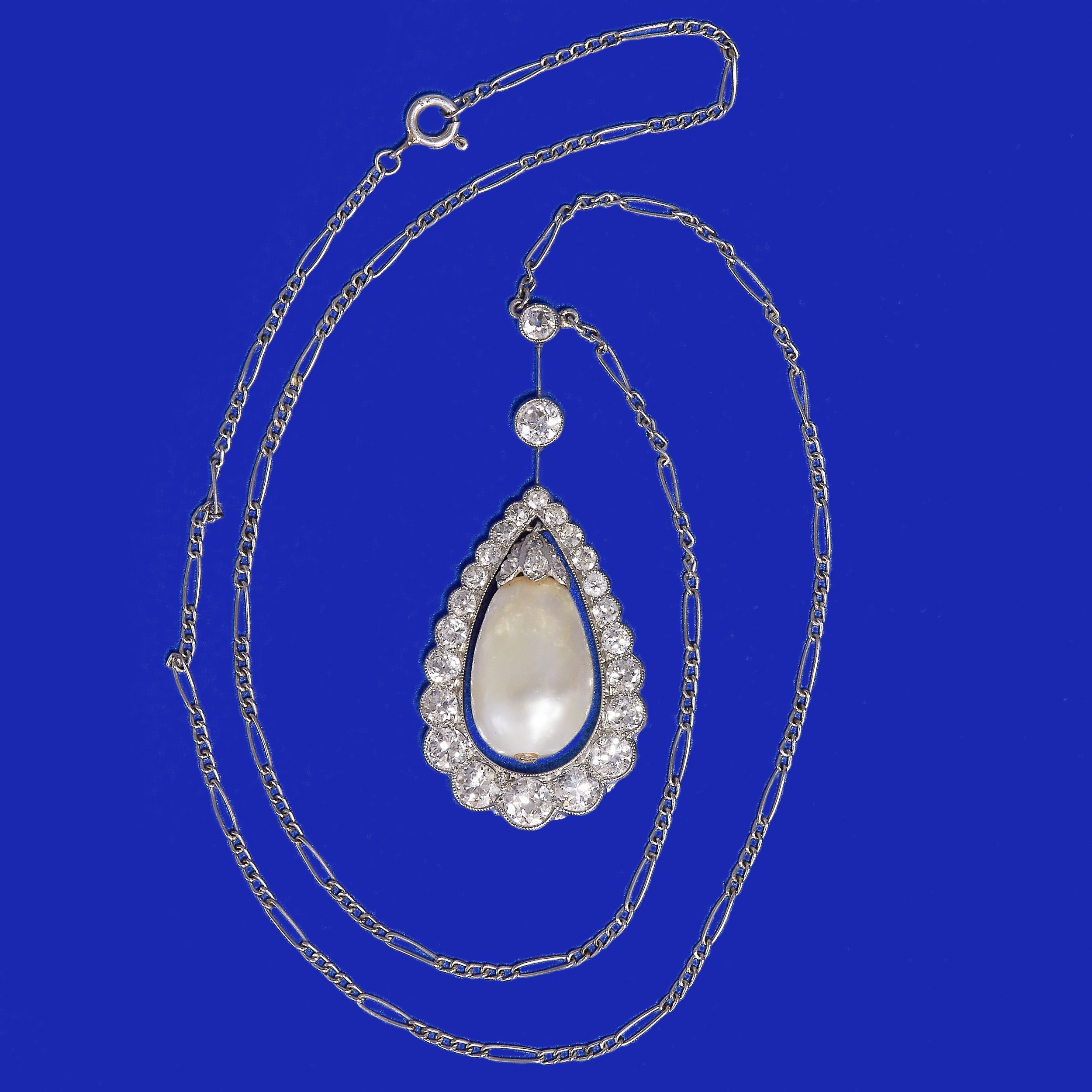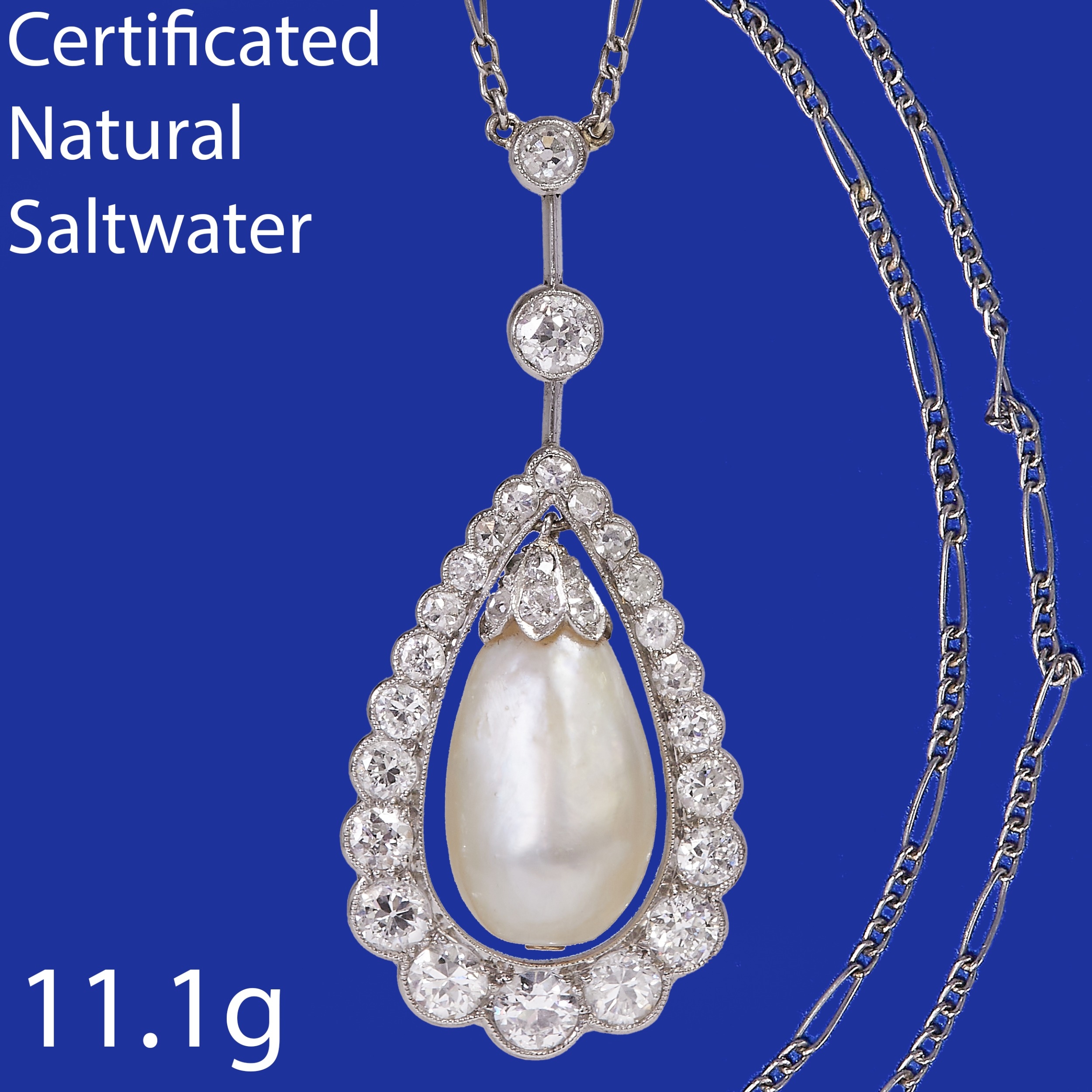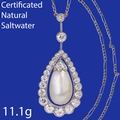 IMPORTANT CERTIFICATED LARGE NATURAL SALTWATER PEARL AND DIAMOND PENDANT NECKLACE,