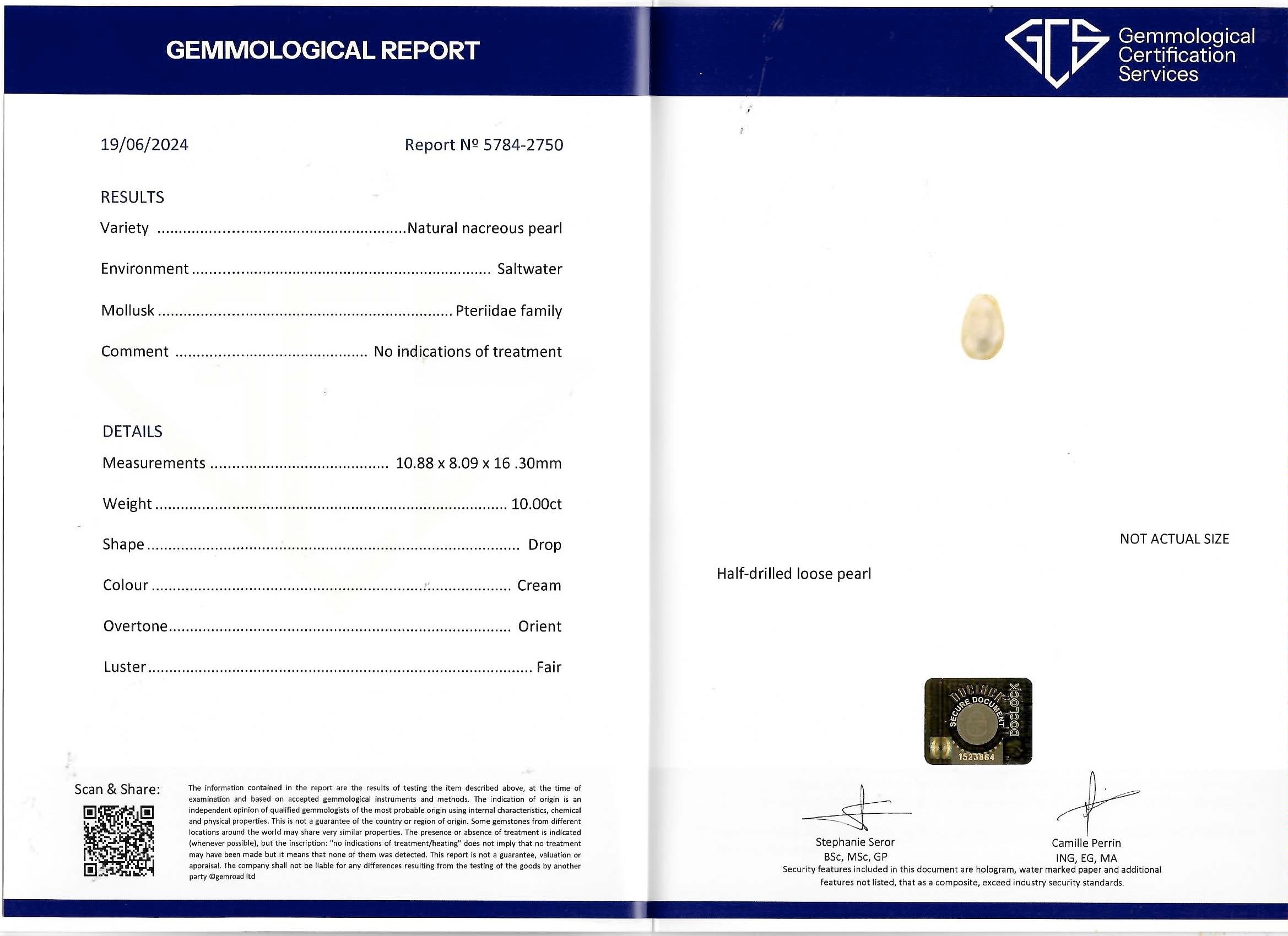 The large pearl of approx. 16.3 x 10.88 x 8.09 mm.