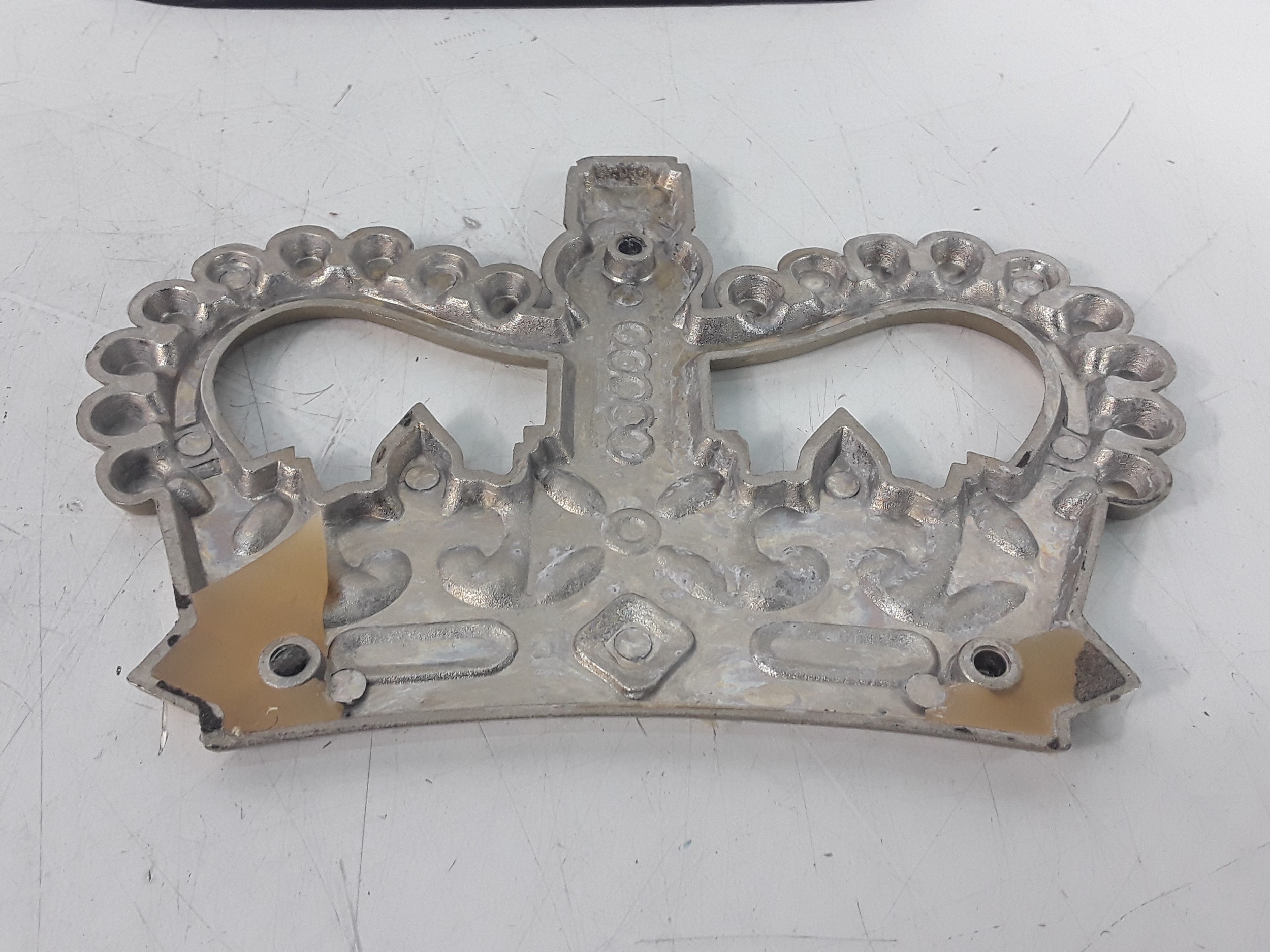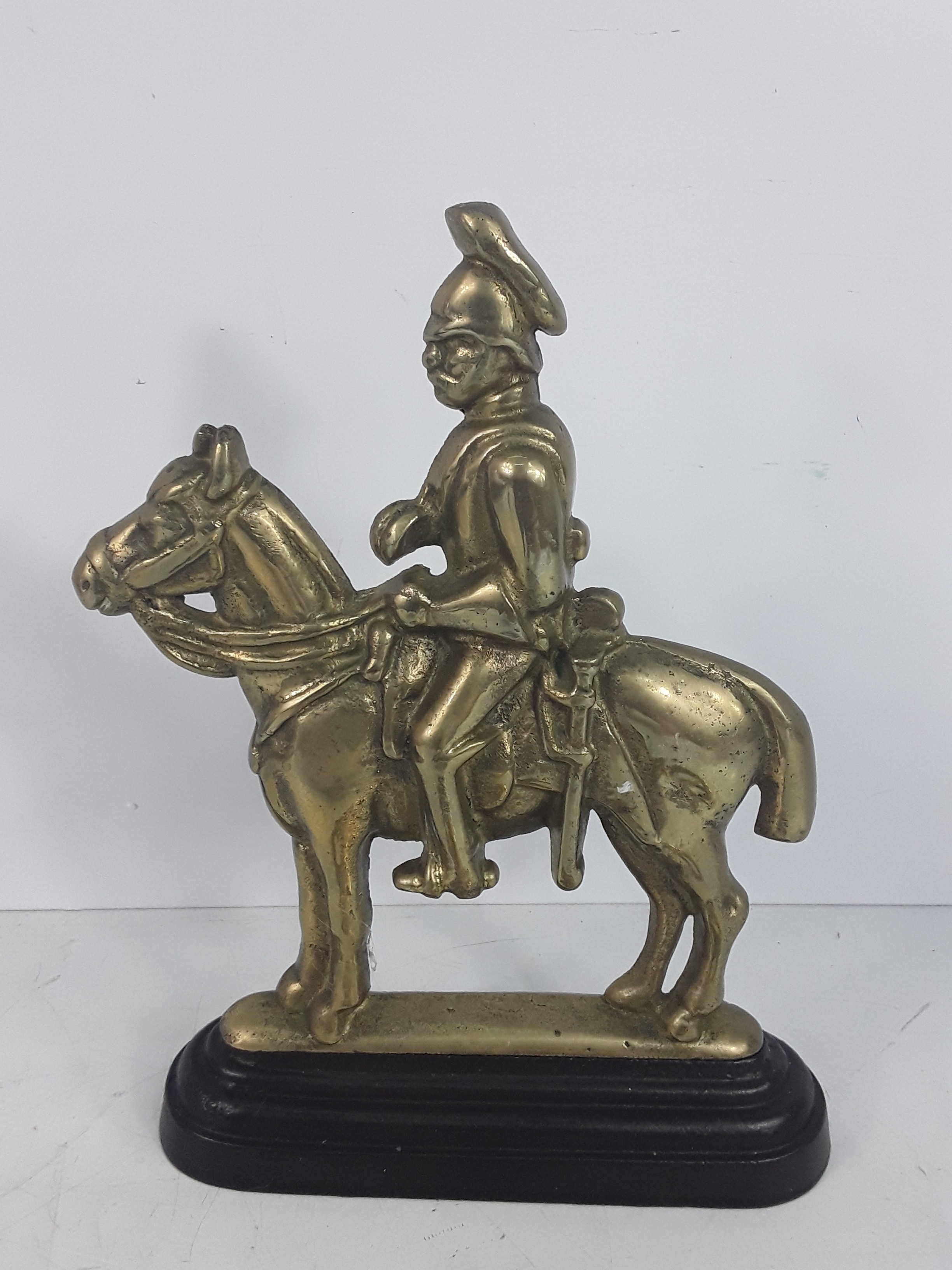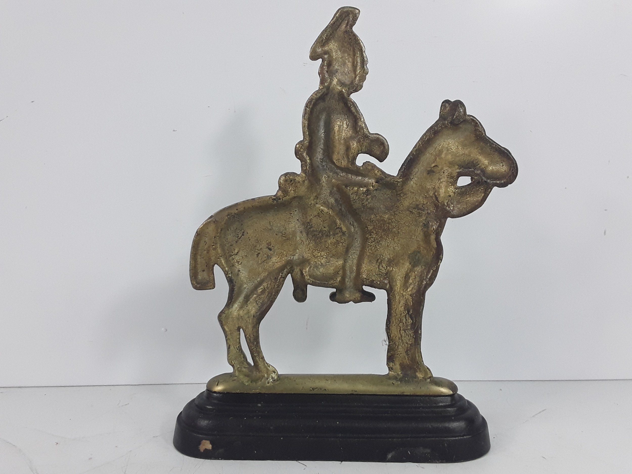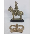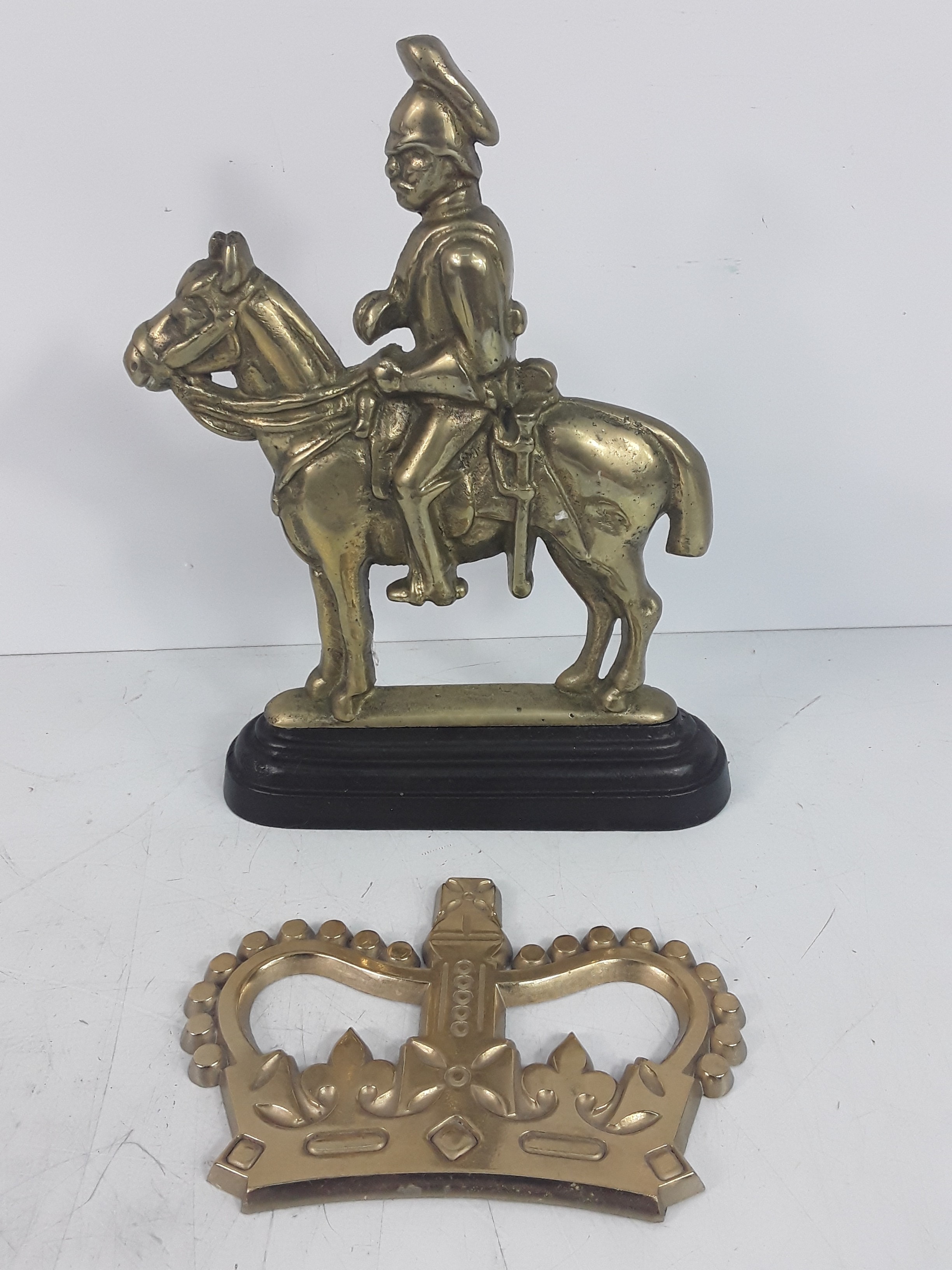 Victorian brass Hussar doorstop and a brass Crown believed to be from the Post Office