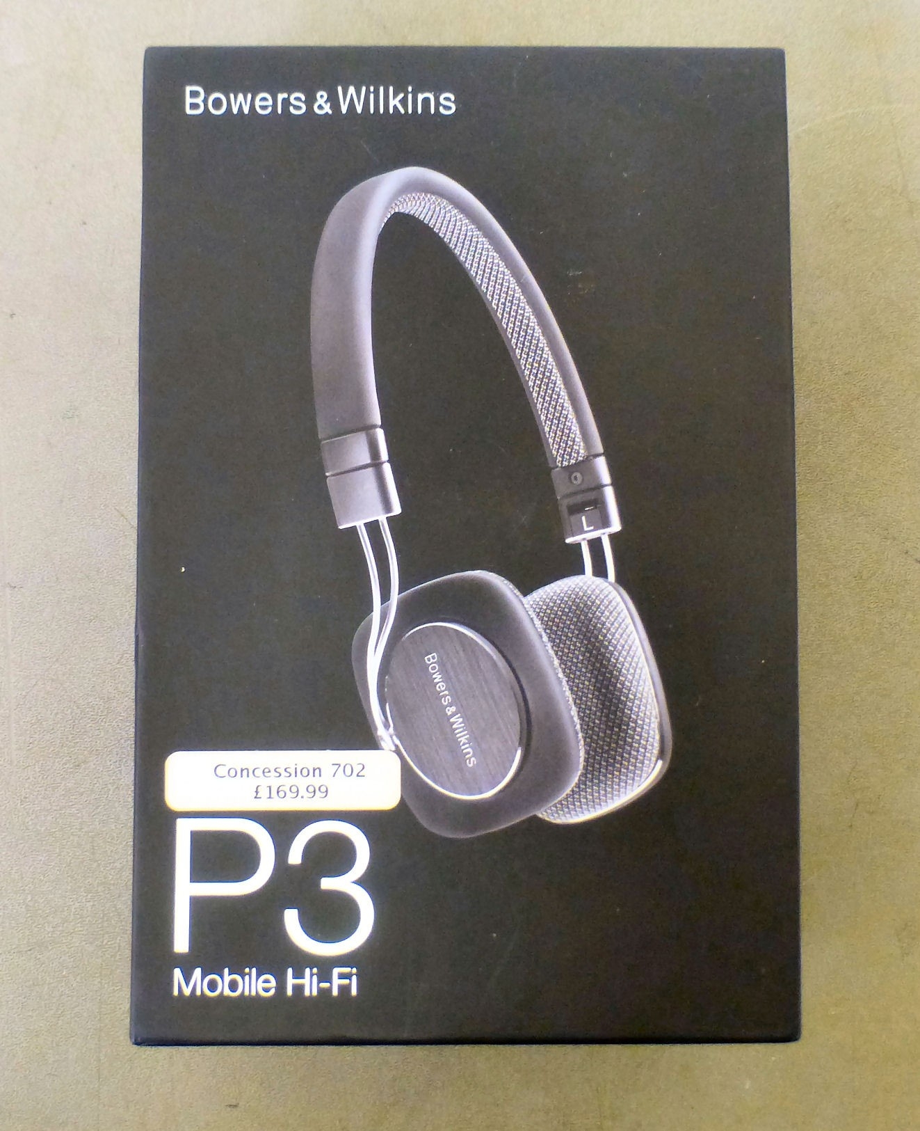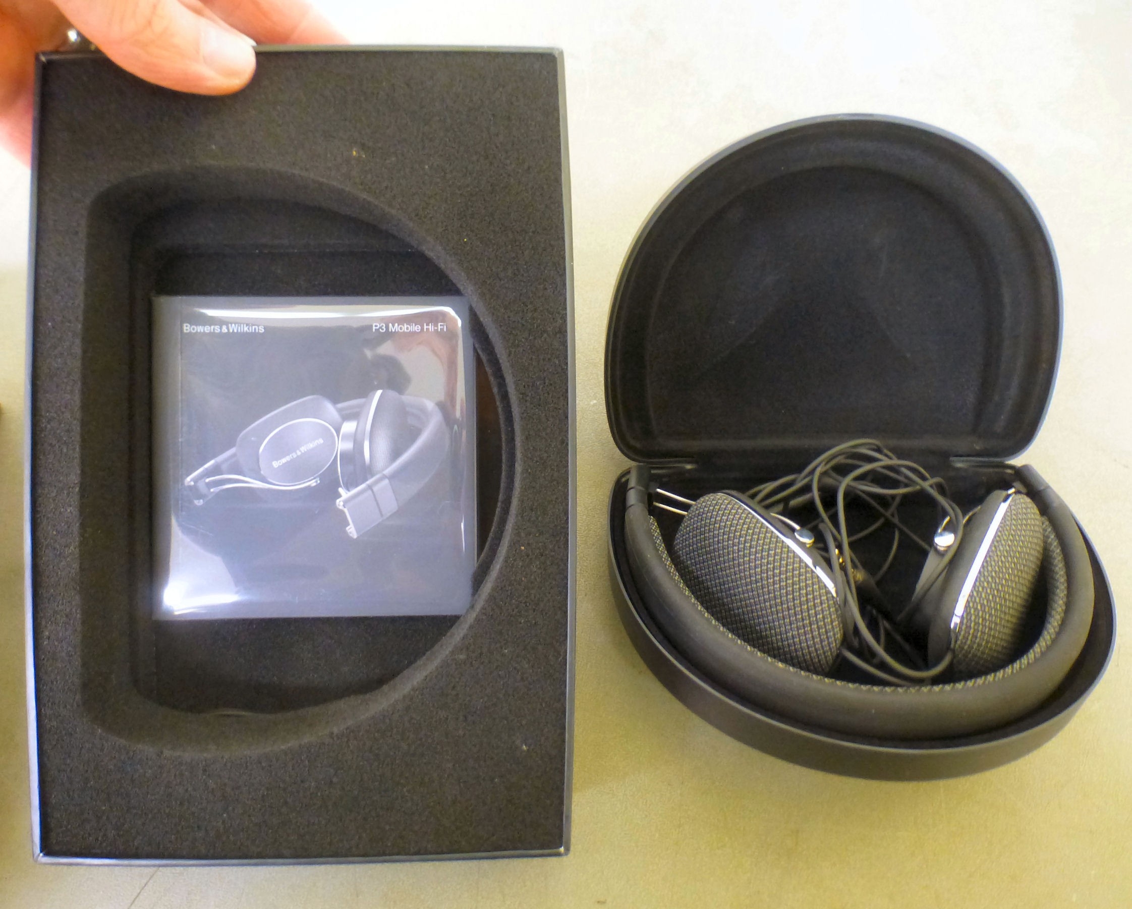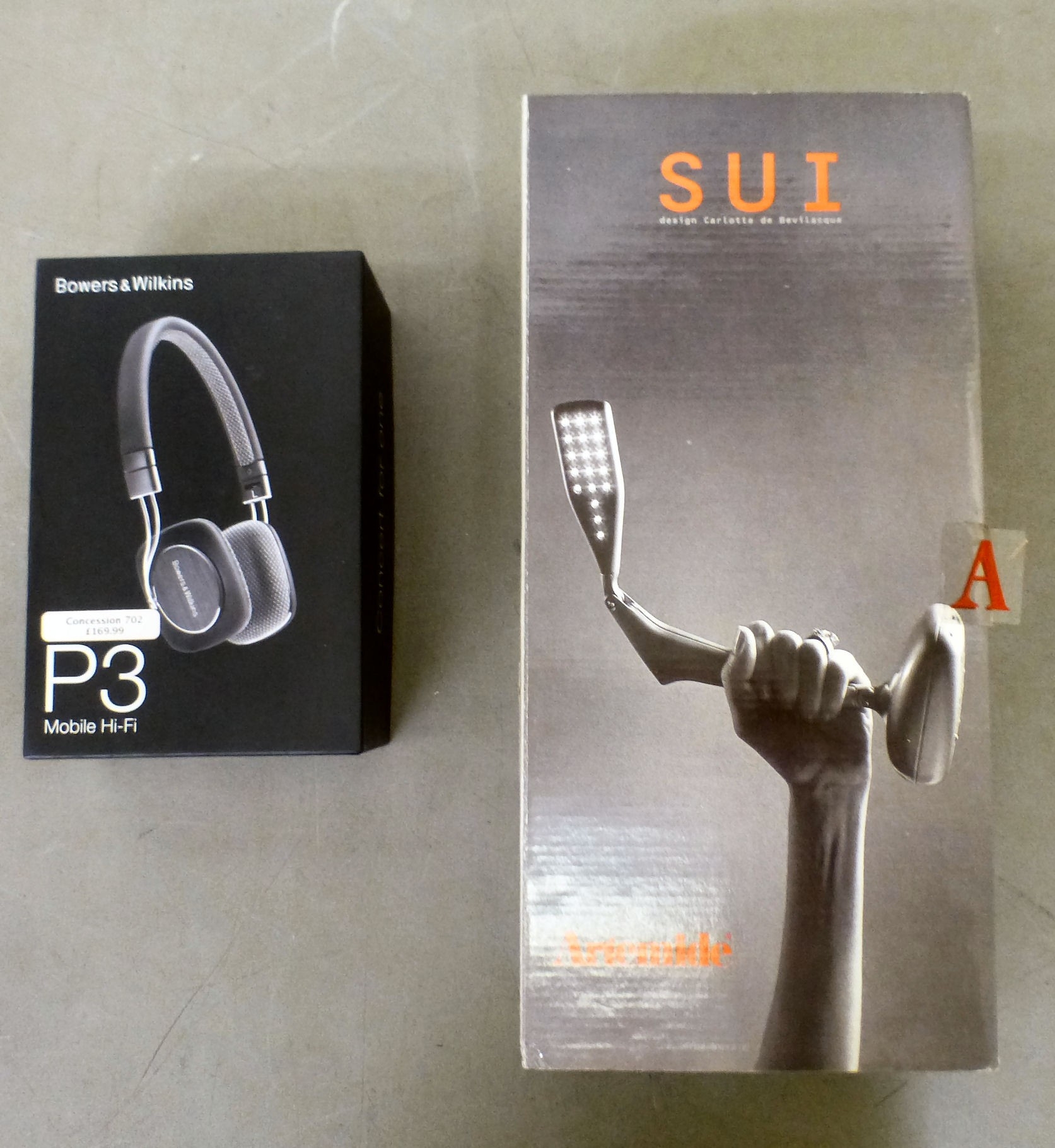 A pair of Bawers & Wilkins P3 headphones boxed; and a SUI Artemide desk lamp 16"h boxed