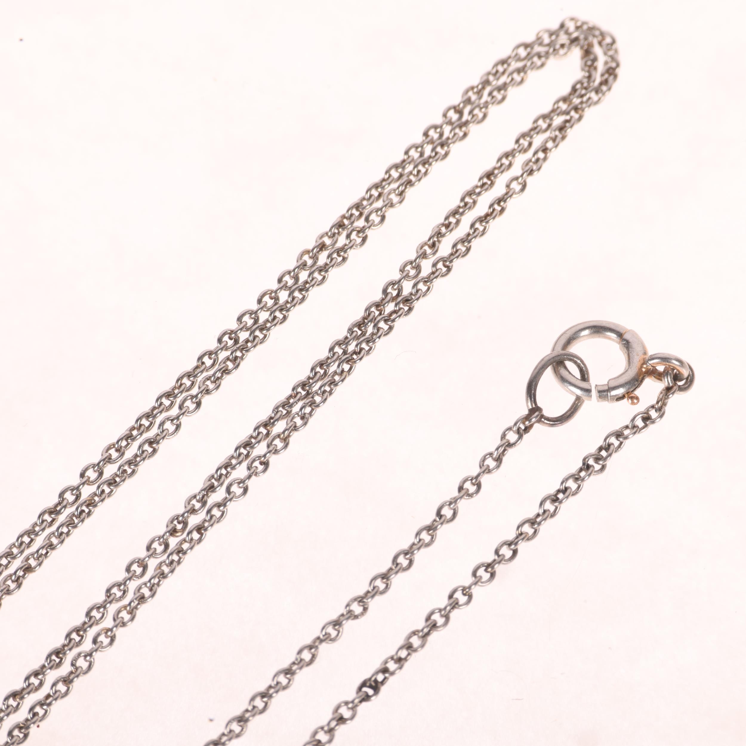 An Antique platinum fine cable link chain necklace, with platinum and gold bolt clasp, unmarked mount tests as platinum, 112cm, 8.9g