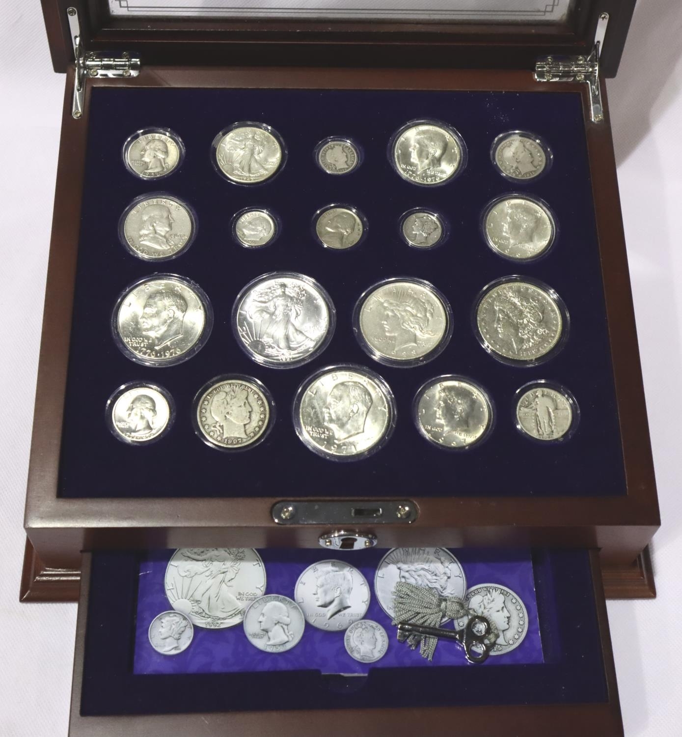 Century of US silver coins, a complete set of nineteen coins within a presentation case, with booklet. P&P Group 2 (£18+VAT for the first lot and £3+VAT for subsequent lots)