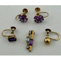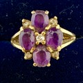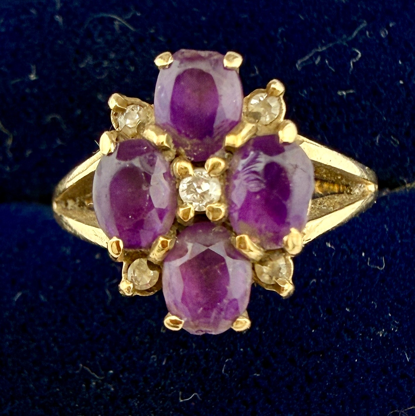 A 9 carat gold ring set with amethysts and diamonds. Size K Weight 2.5gm.