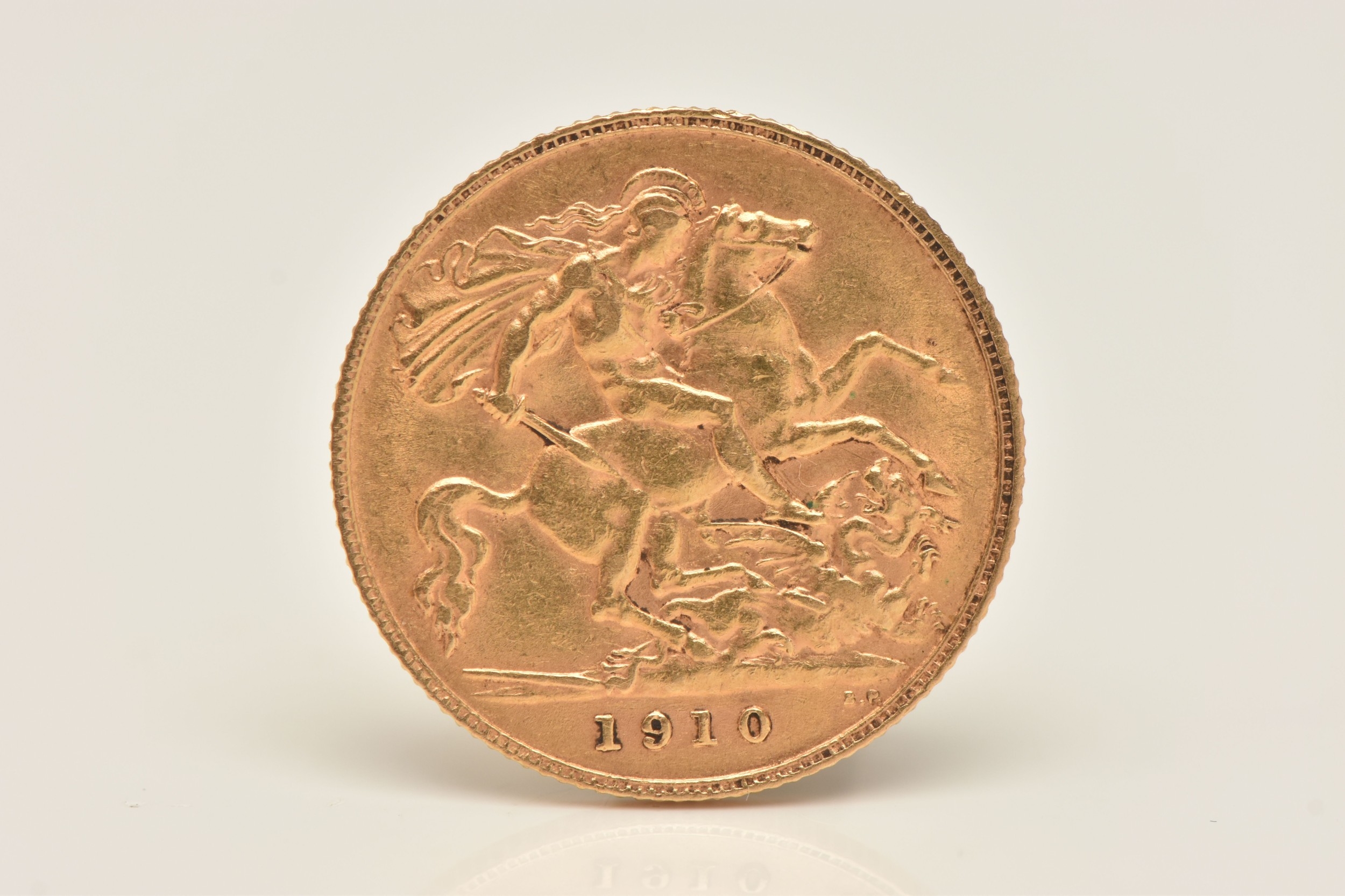 A GOLD HALF SOVEREIGN COIN, depicting Edward VII, dated 1910, approximate width 19.2mm, approximate gross weight 3.9 grams