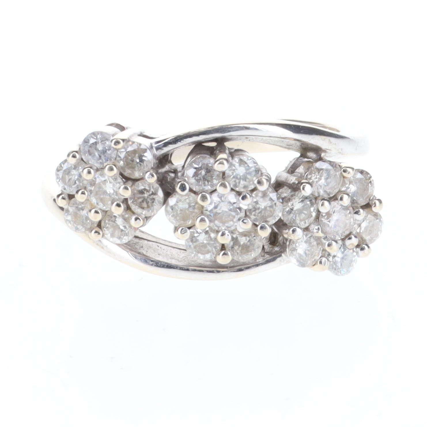 Diamond Triple Cluster 18ct White Gold Ring, est. 1.00ct, 6g