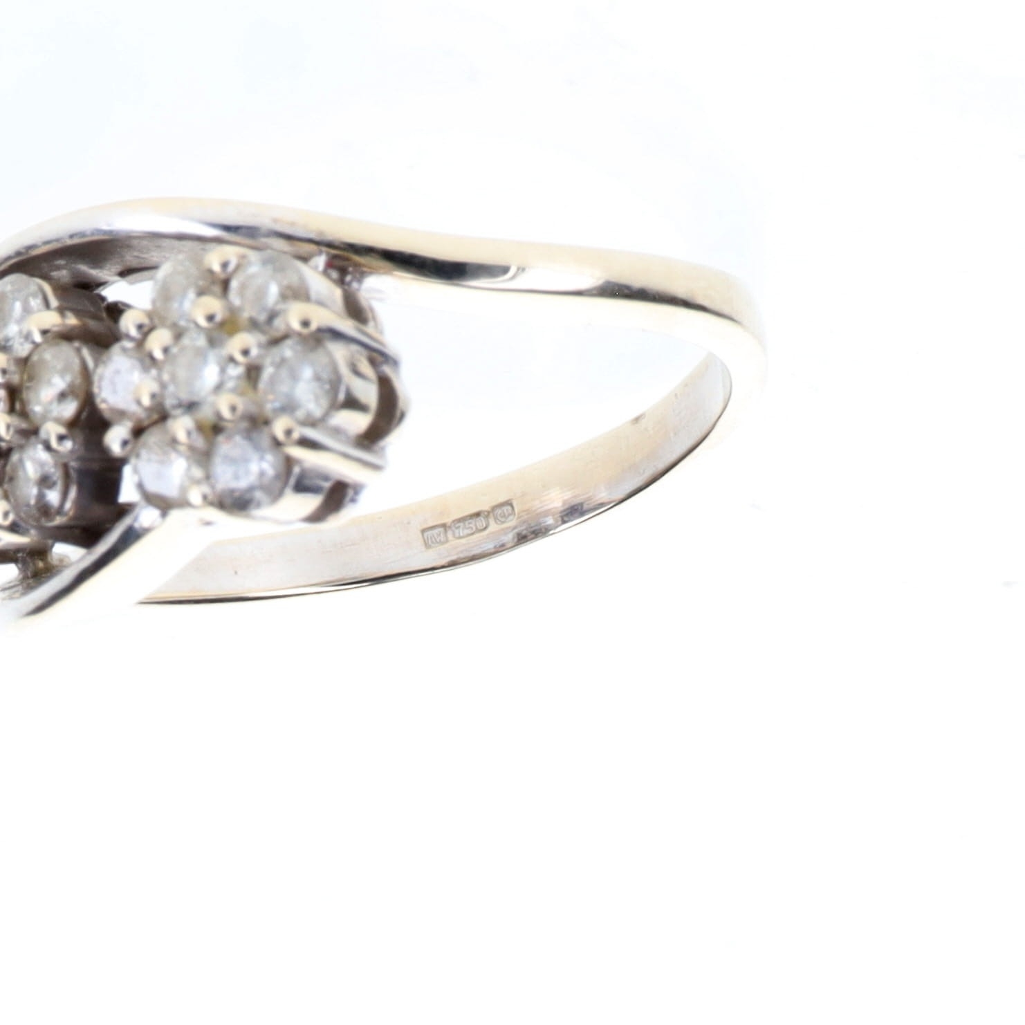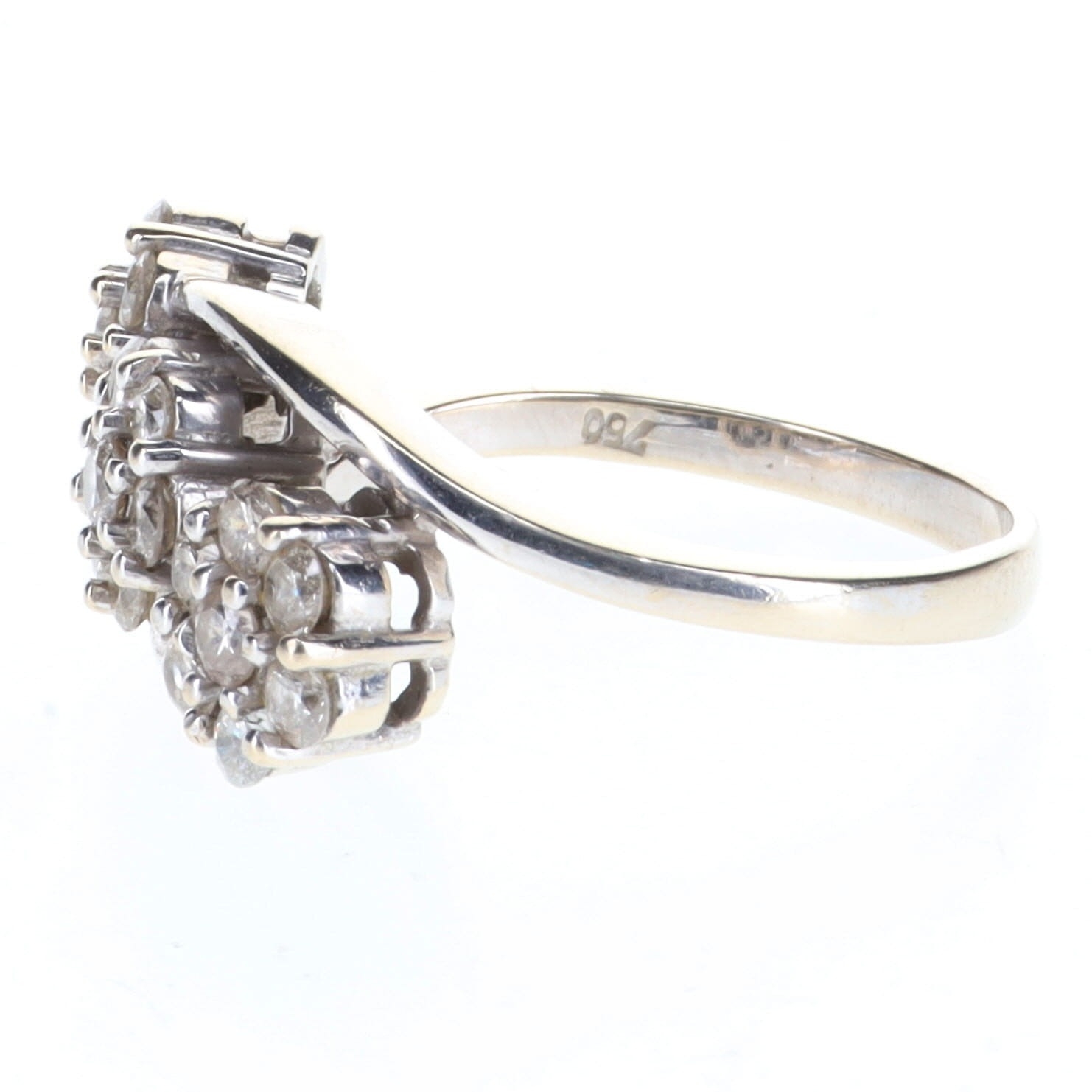 Diamond Triple Cluster 18ct White Gold Ring, est. 1.00ct. This piece is hallmarked 750 on the inner band. There is light to moderate wear and scratches to the metal, with some wear to the rhodium plating at the reverse. There is light wear and scratches to the stones, all secure. There is some thinning of the band to the reverse. The estimated total diamond weight is +/- 1.00ct, G-H, SI1-SI2. The ring is a UK size N 1/2, weighs in total 6.0g.