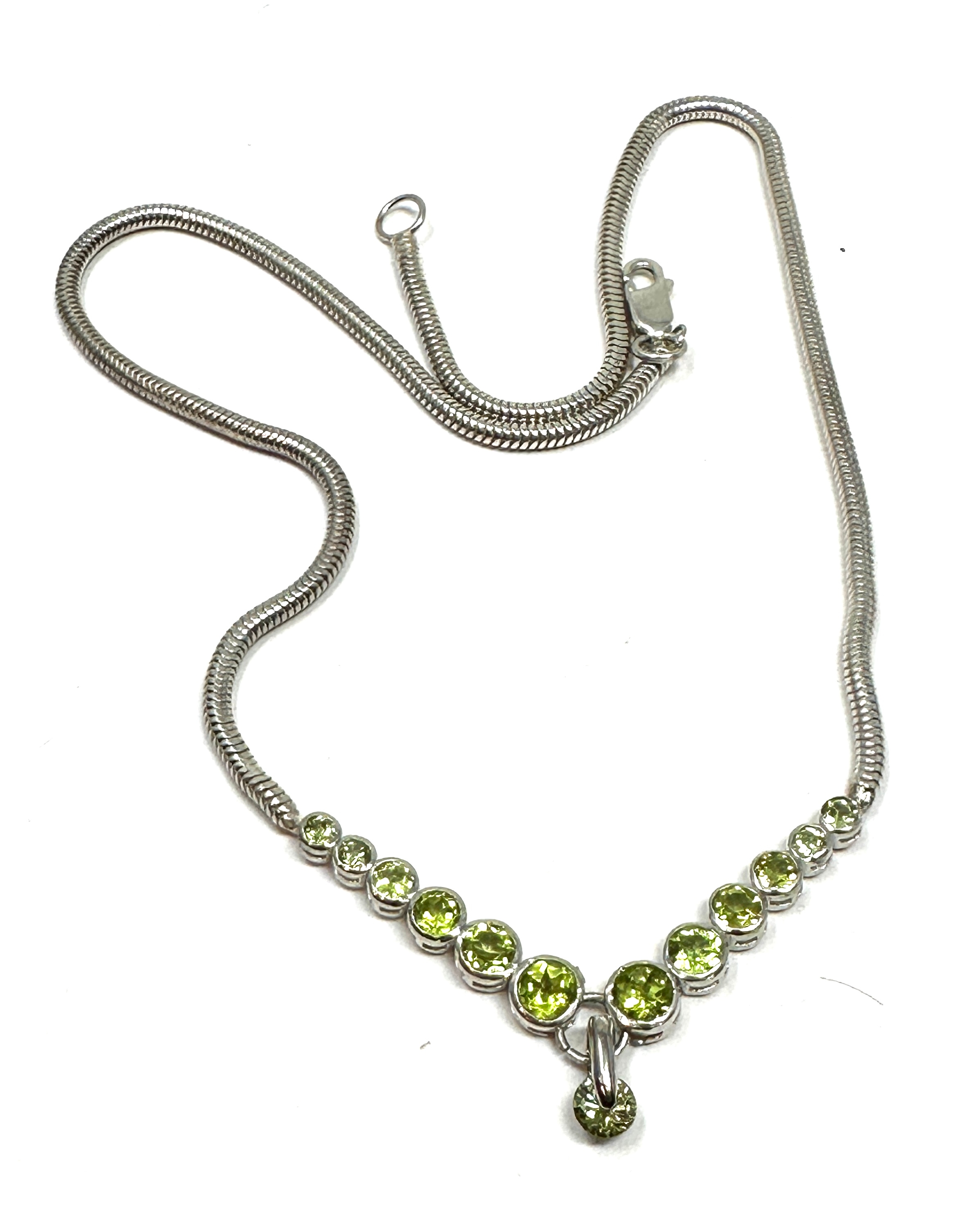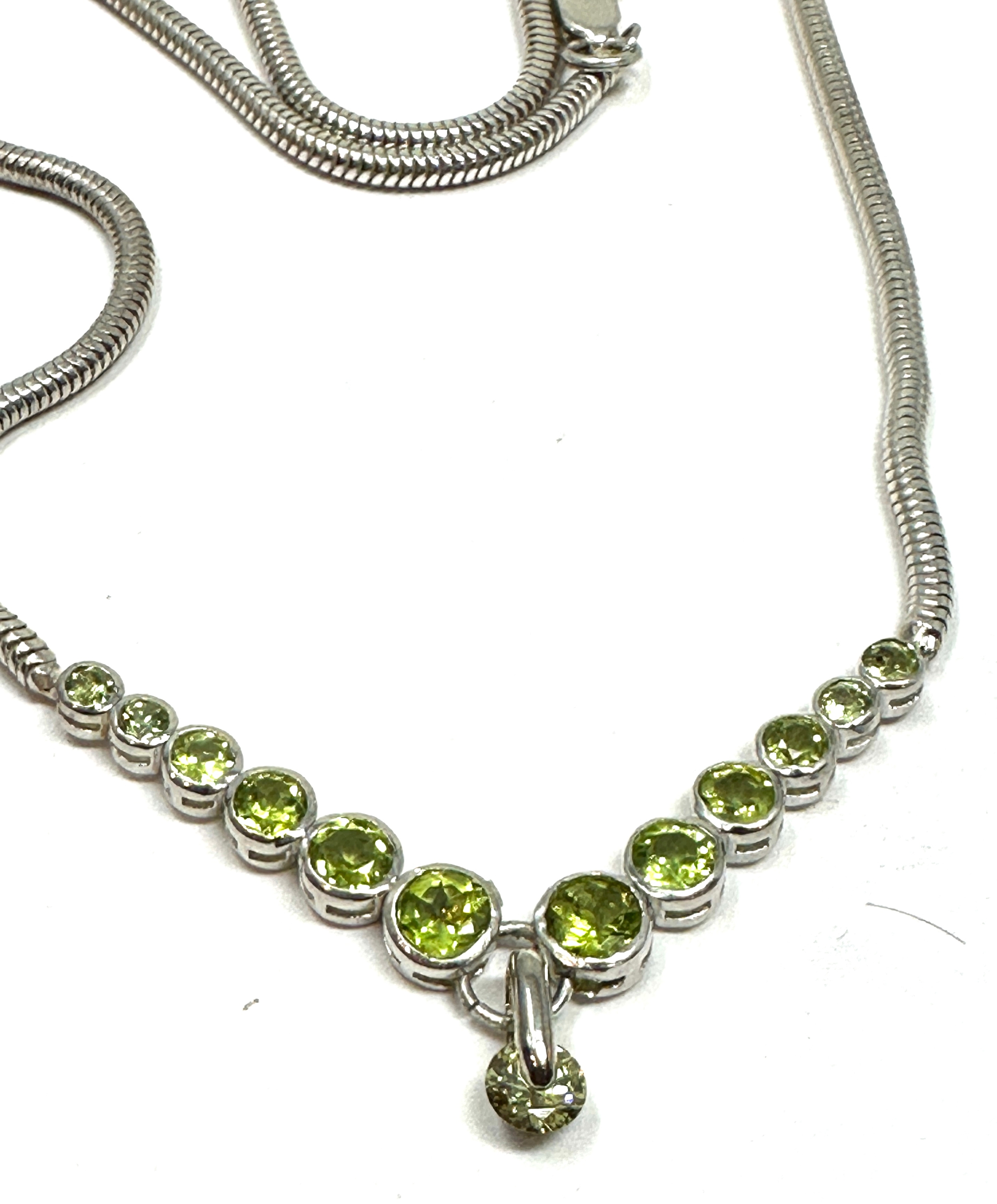 Silver green gemstone set necklace