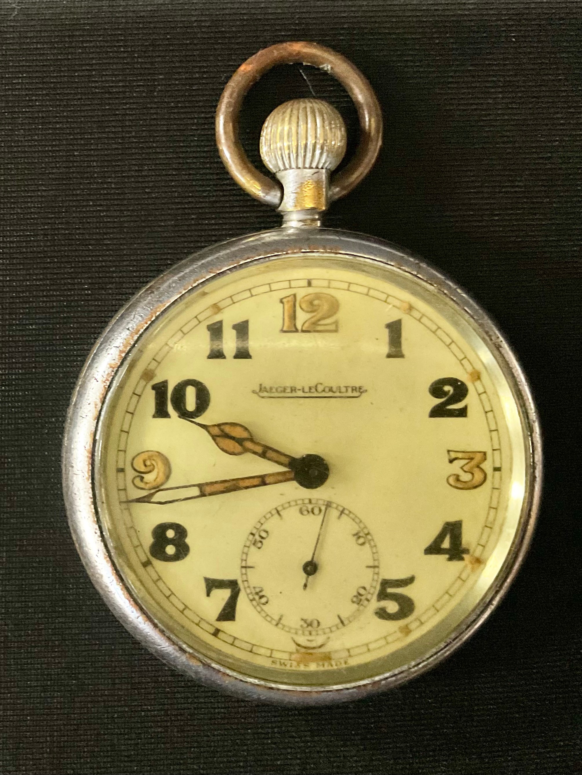 A World War II Jaeger Le Coultre military open faced pocket watch, inscribed to verso G.S.T.P 261952 XX