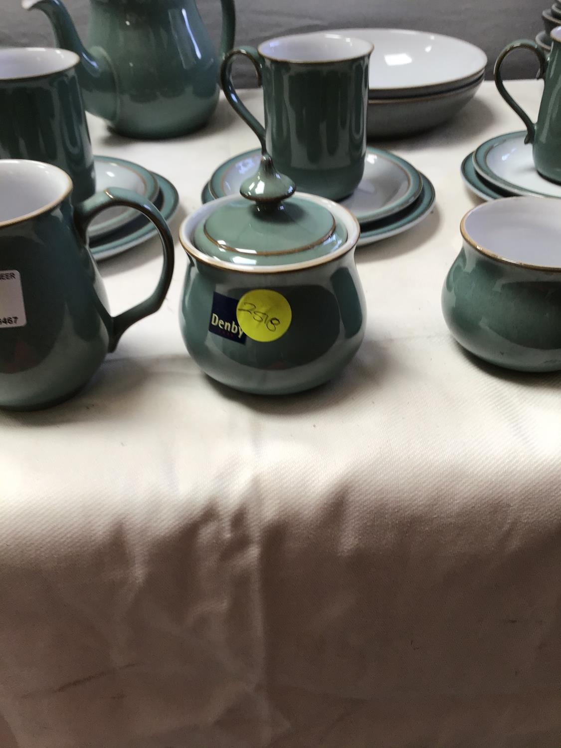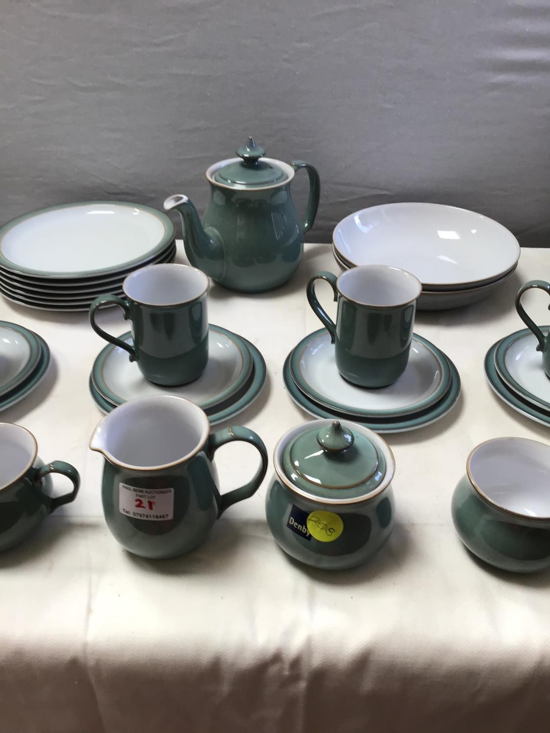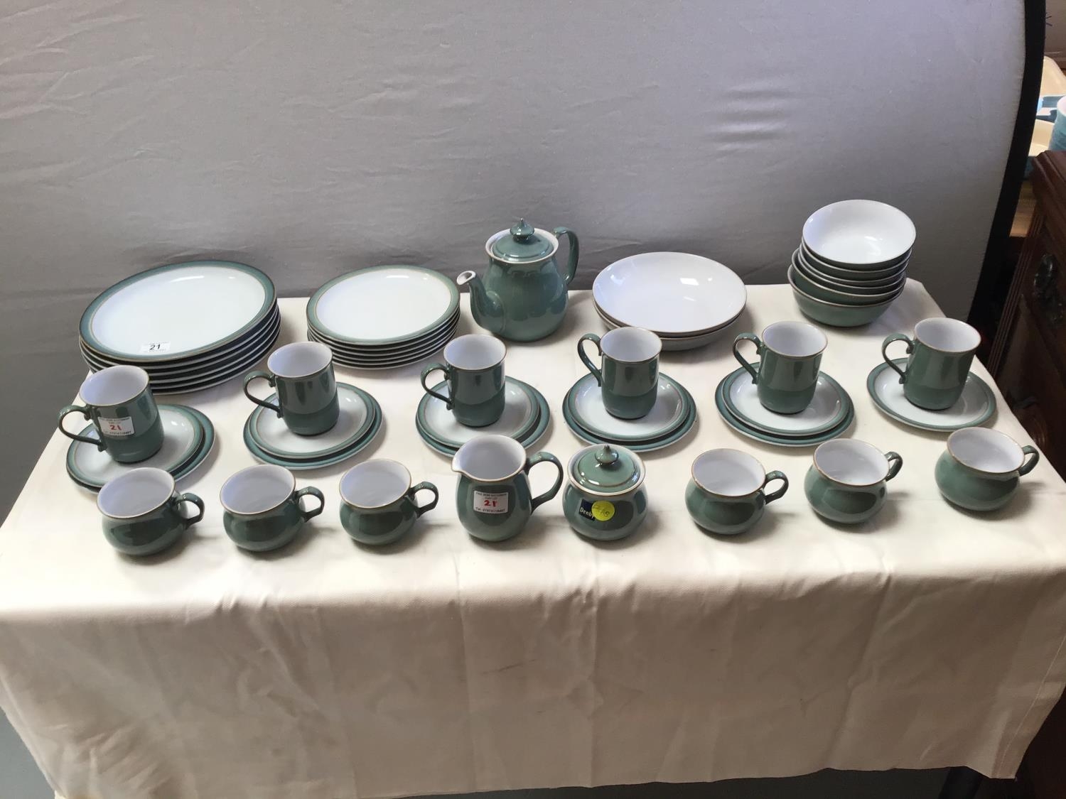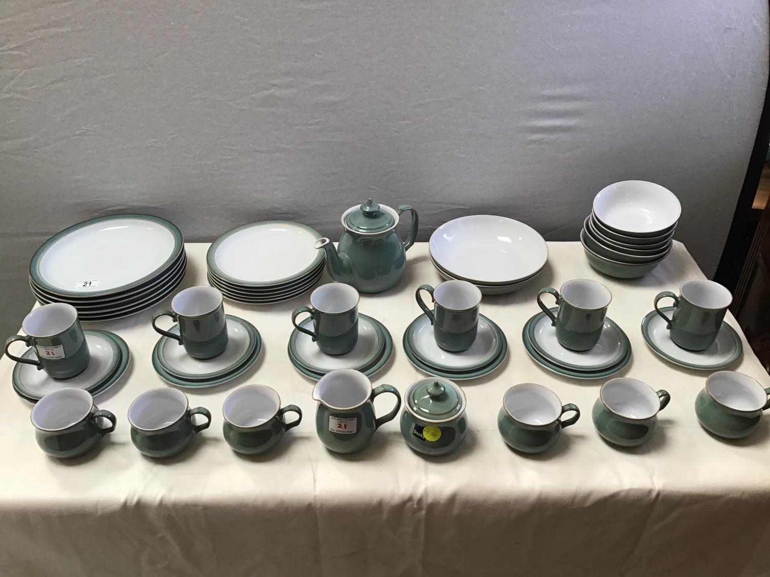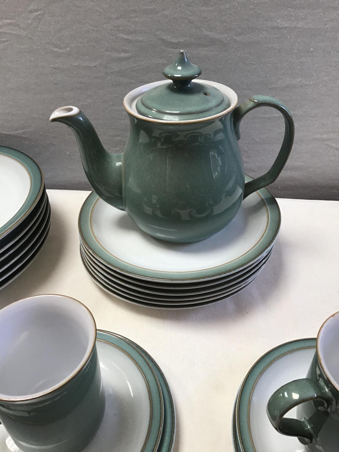MODERN DENBY WARE - 48 PEICES- PLATES, SIDE PLATES, CUPS SAUCERS, MUGS, TEAPOT ETC