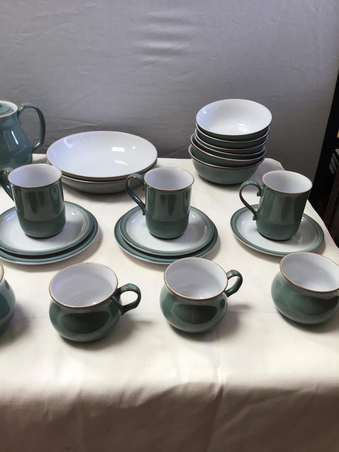 MODERN DENBY WARE - 48 PEICES- PLATES, SIDE PLATES, CUPS SAU...