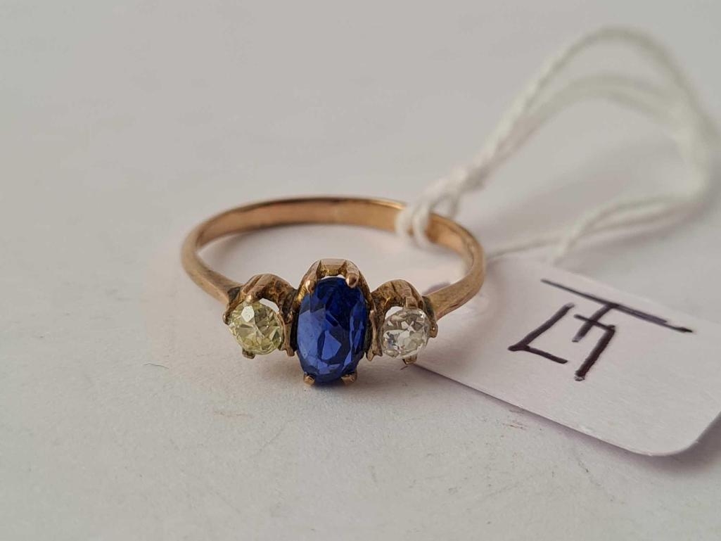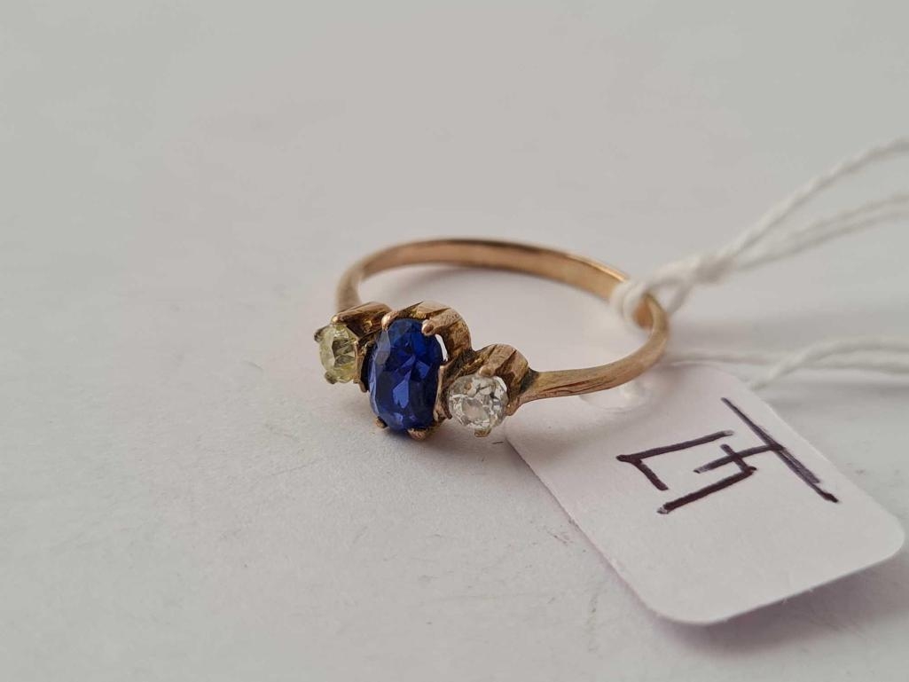 A sapphire and diamond vintage ring 9ct (tested) size M1/2 - 2.1 gms