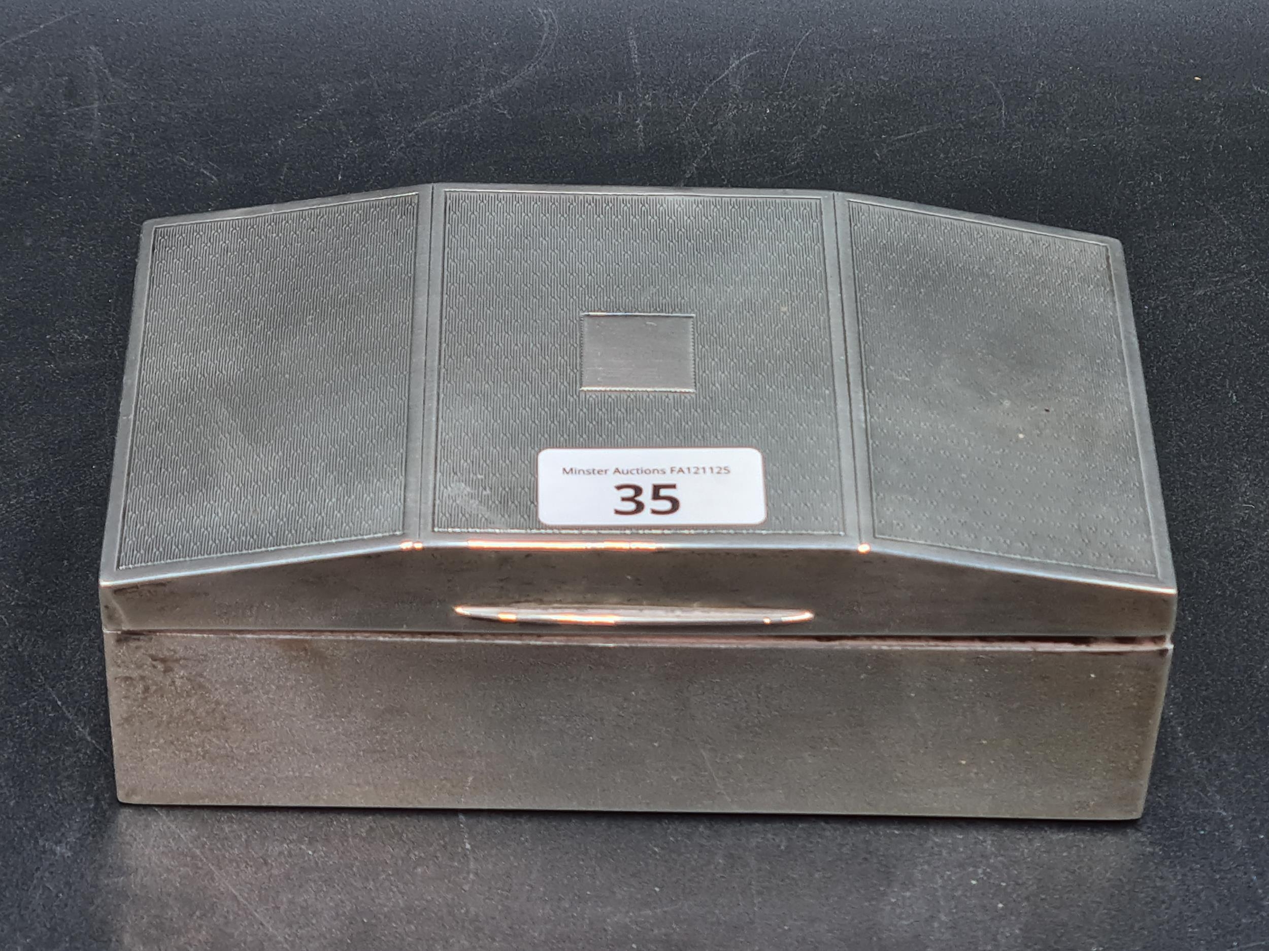 A George V silver Cigarette Box with engine turned decoration, Birmingham 1927, 7 x 3 1/2in, total weight 550gms