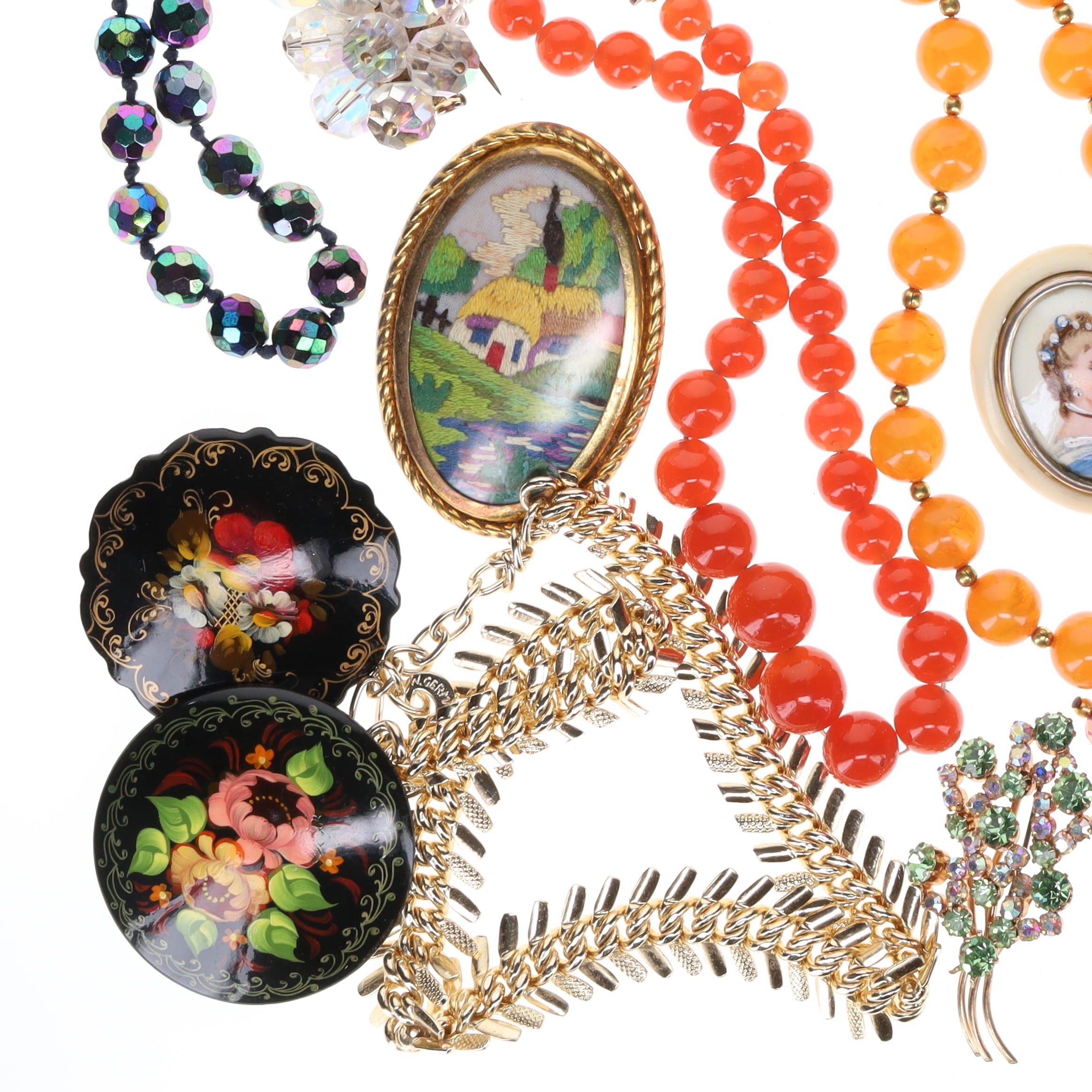 Kitsch Jewellery Collection incl. Lacquer, Aurora. Items are in good condition with signs of wear and age. Weighs in total 382g.