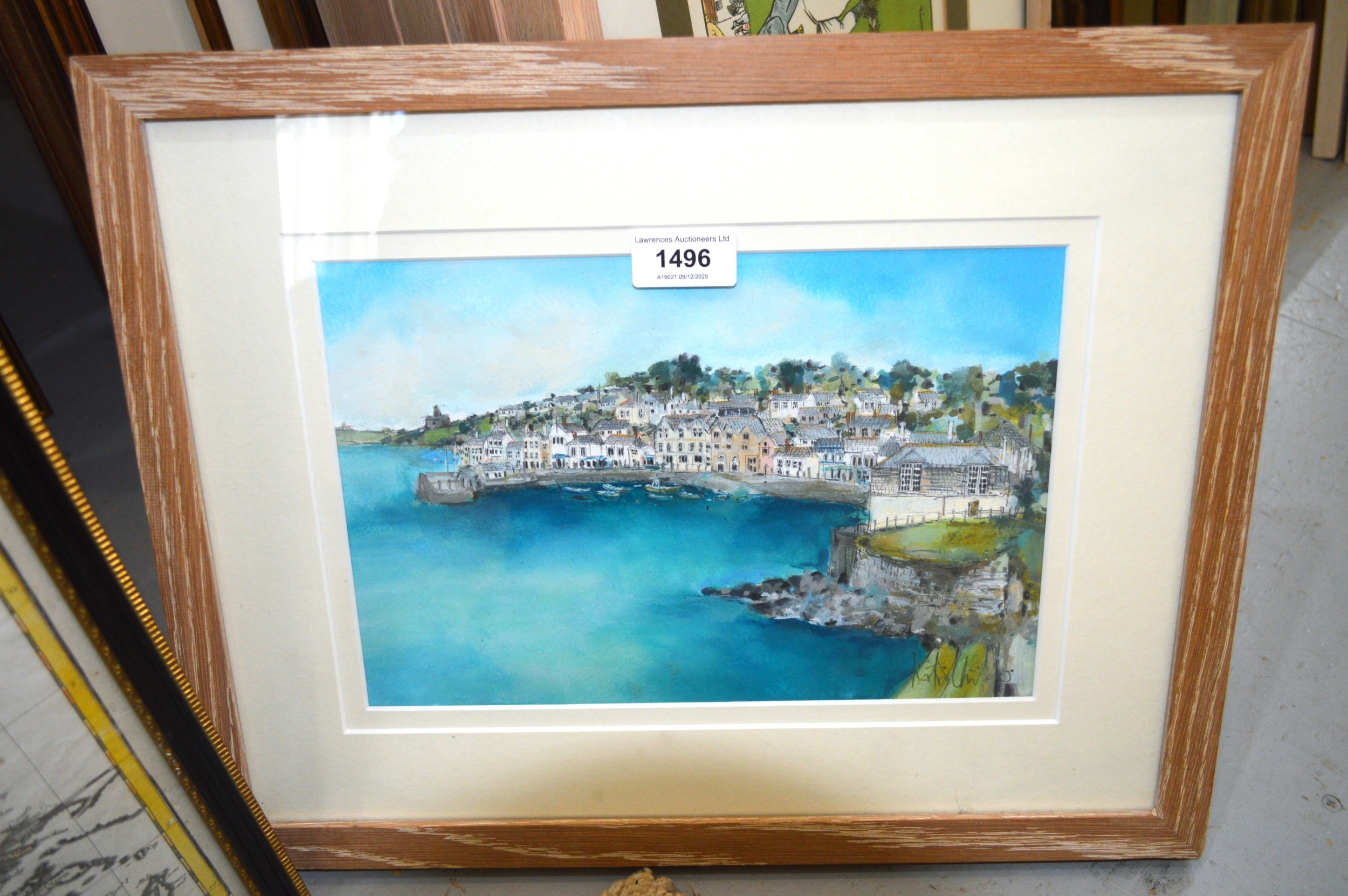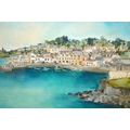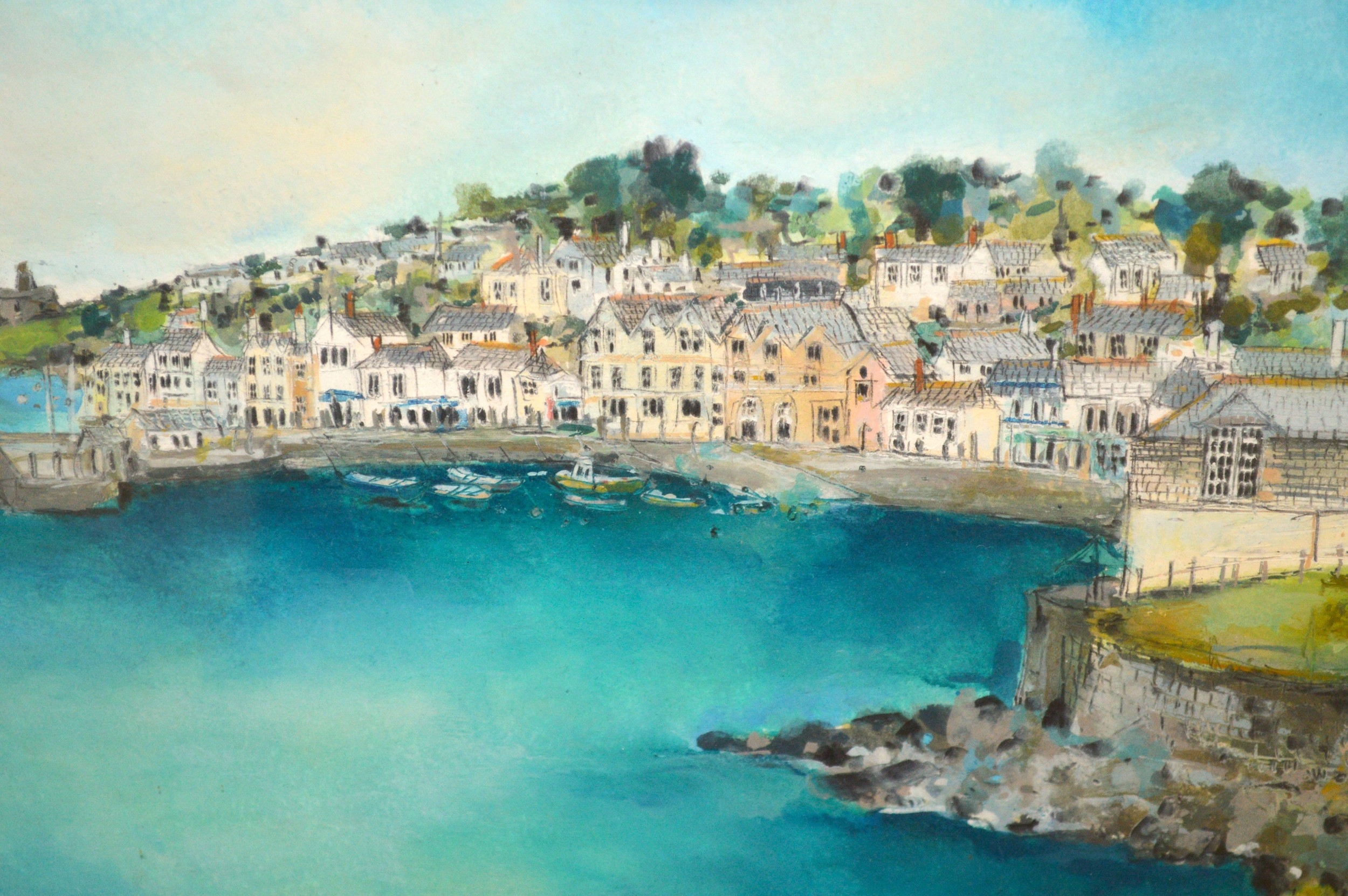 Katie Childs, watercolour and pencil, view of St Mawes Harbour, 18 x 27cm, signed, in a limed oak frame