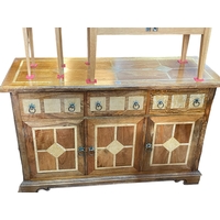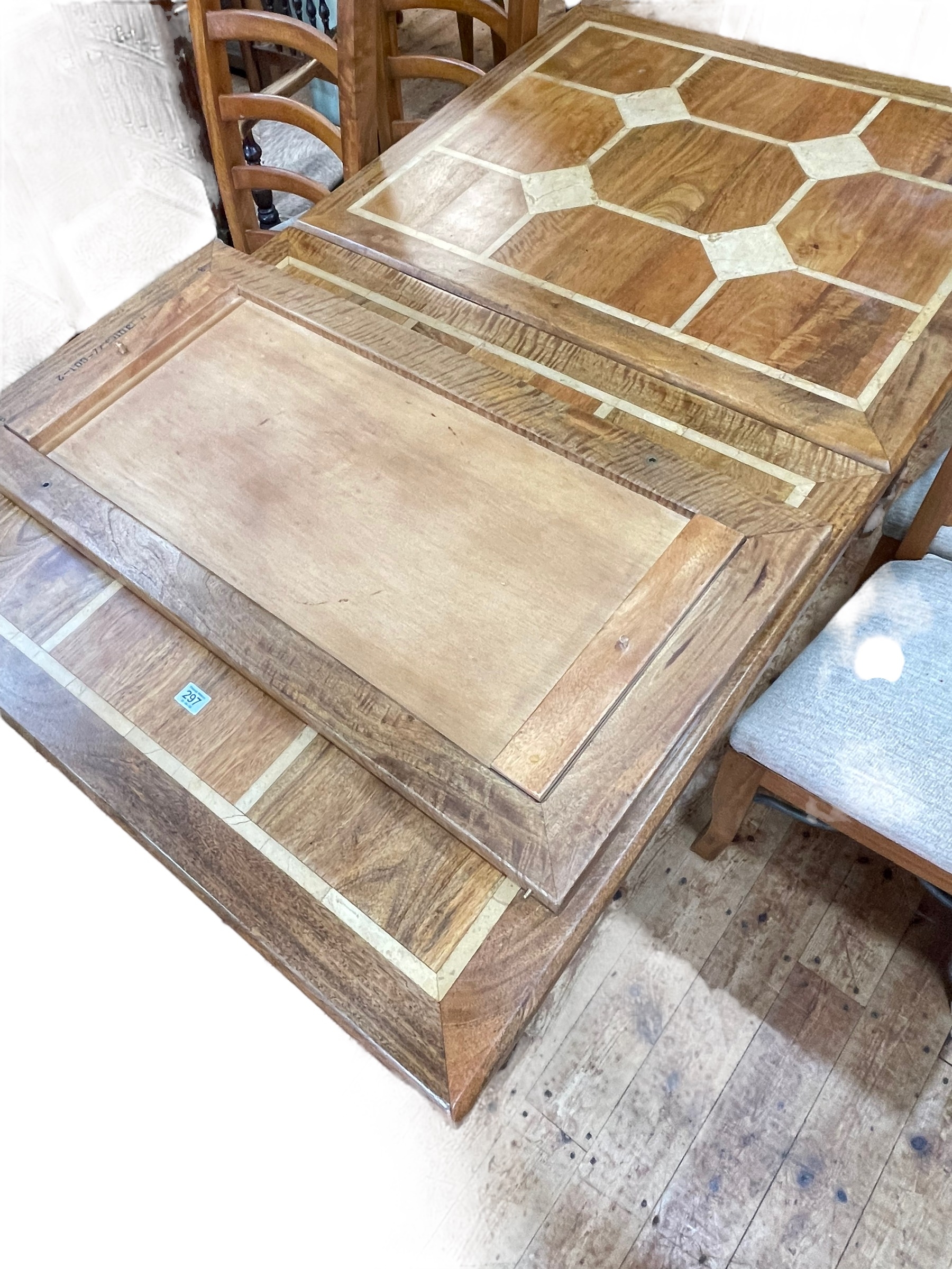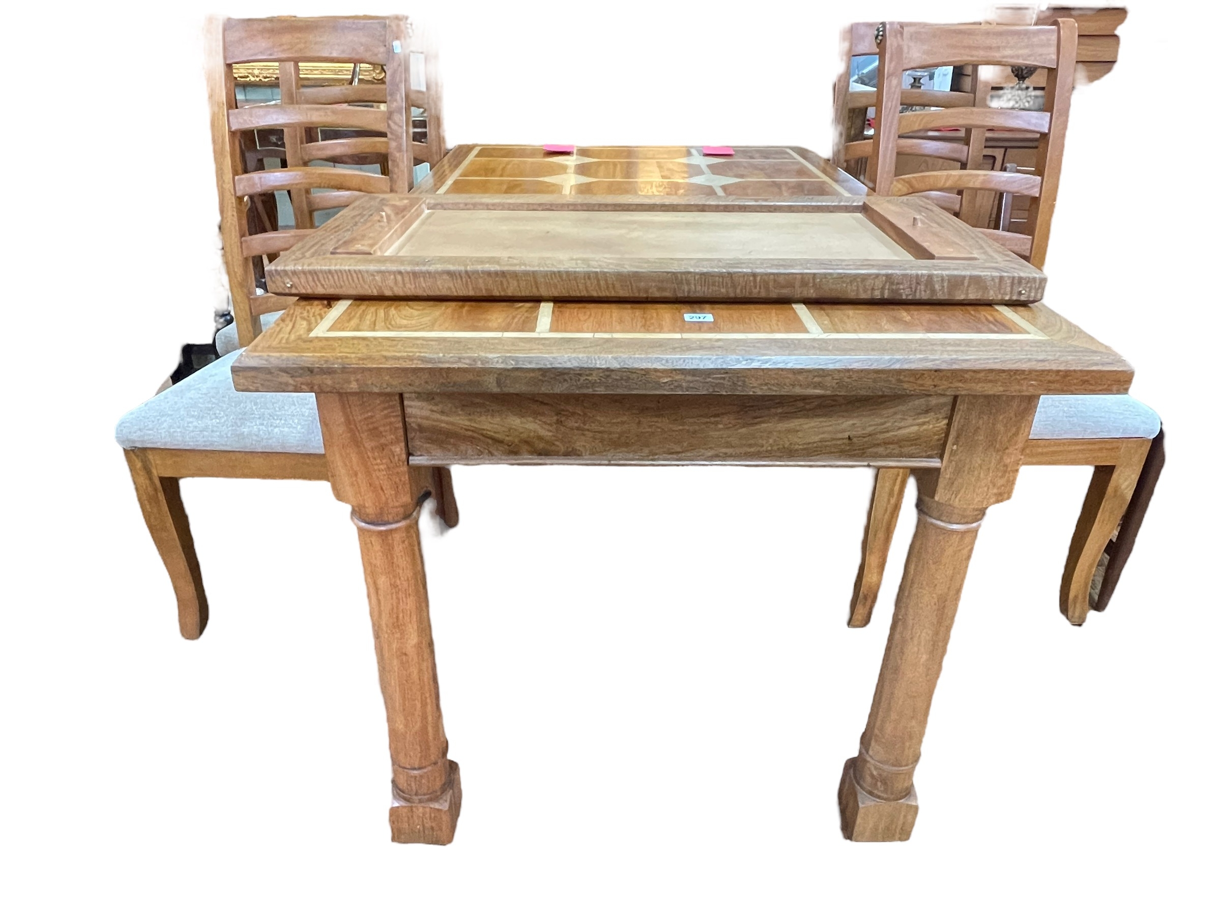 Barker & Stonehouse Flagstone rectangular extending dining table and leaf, 81cm by 151cm by 90cm (excluding leaf), together with four ladder back dining chairs.