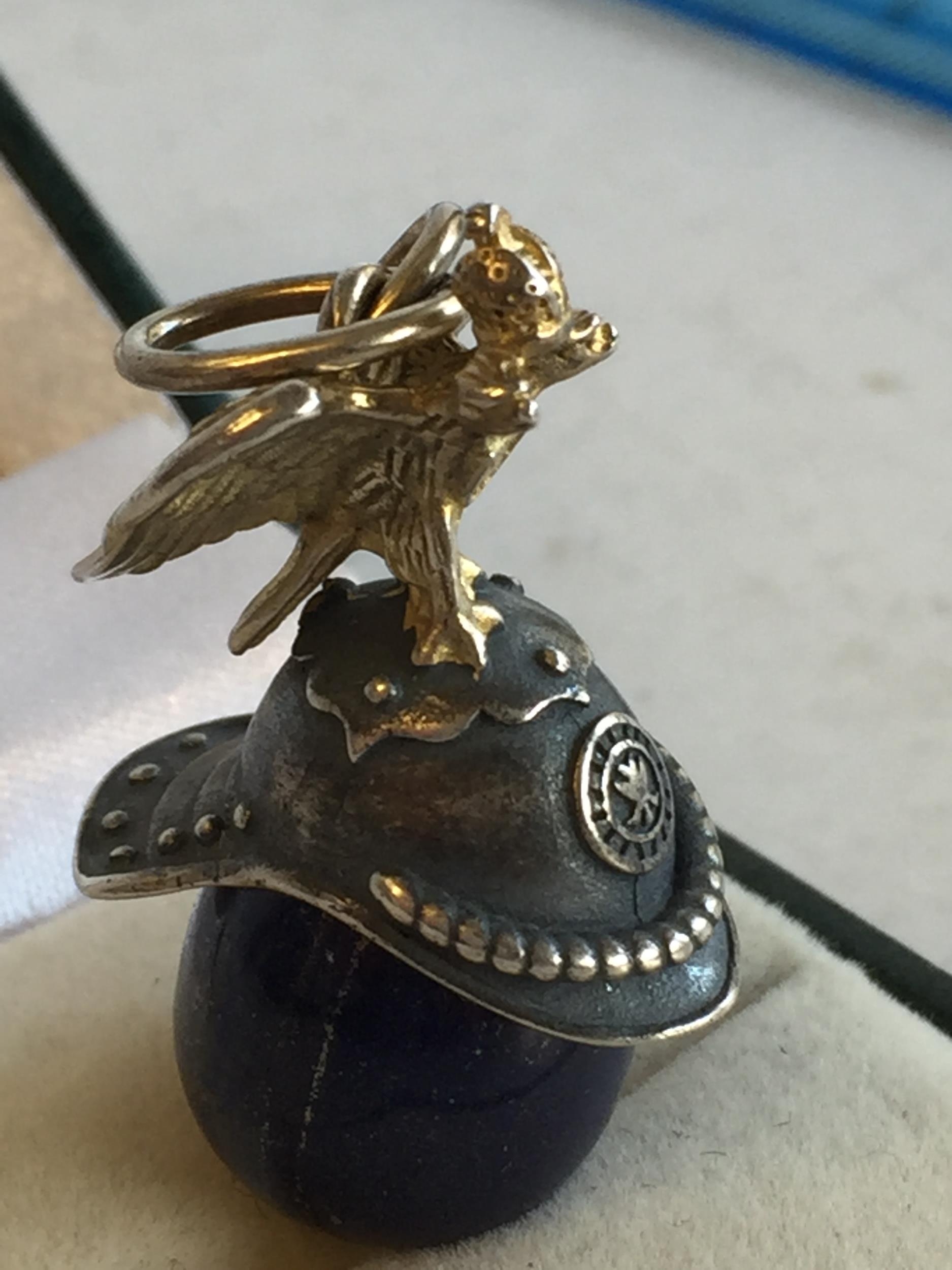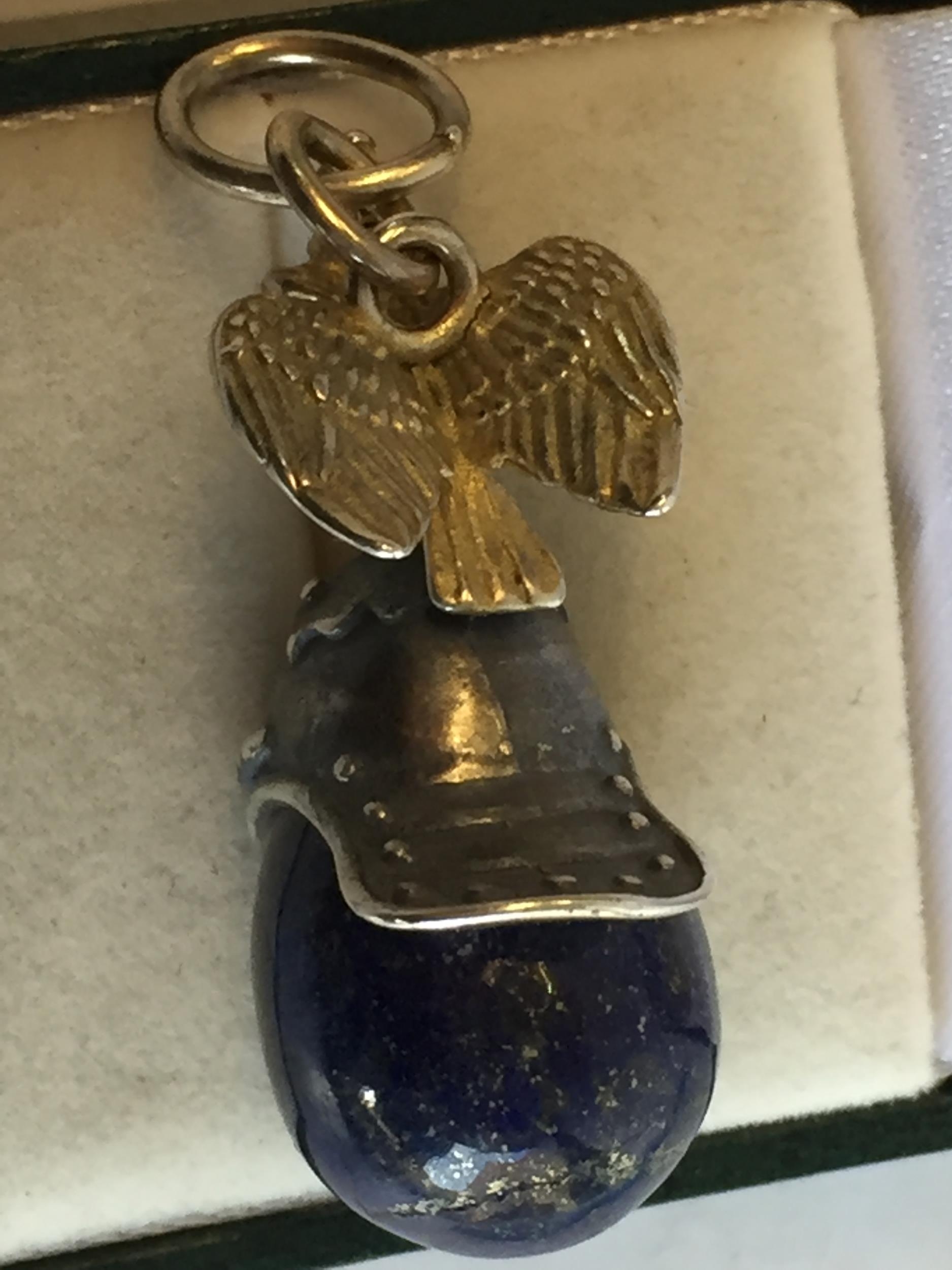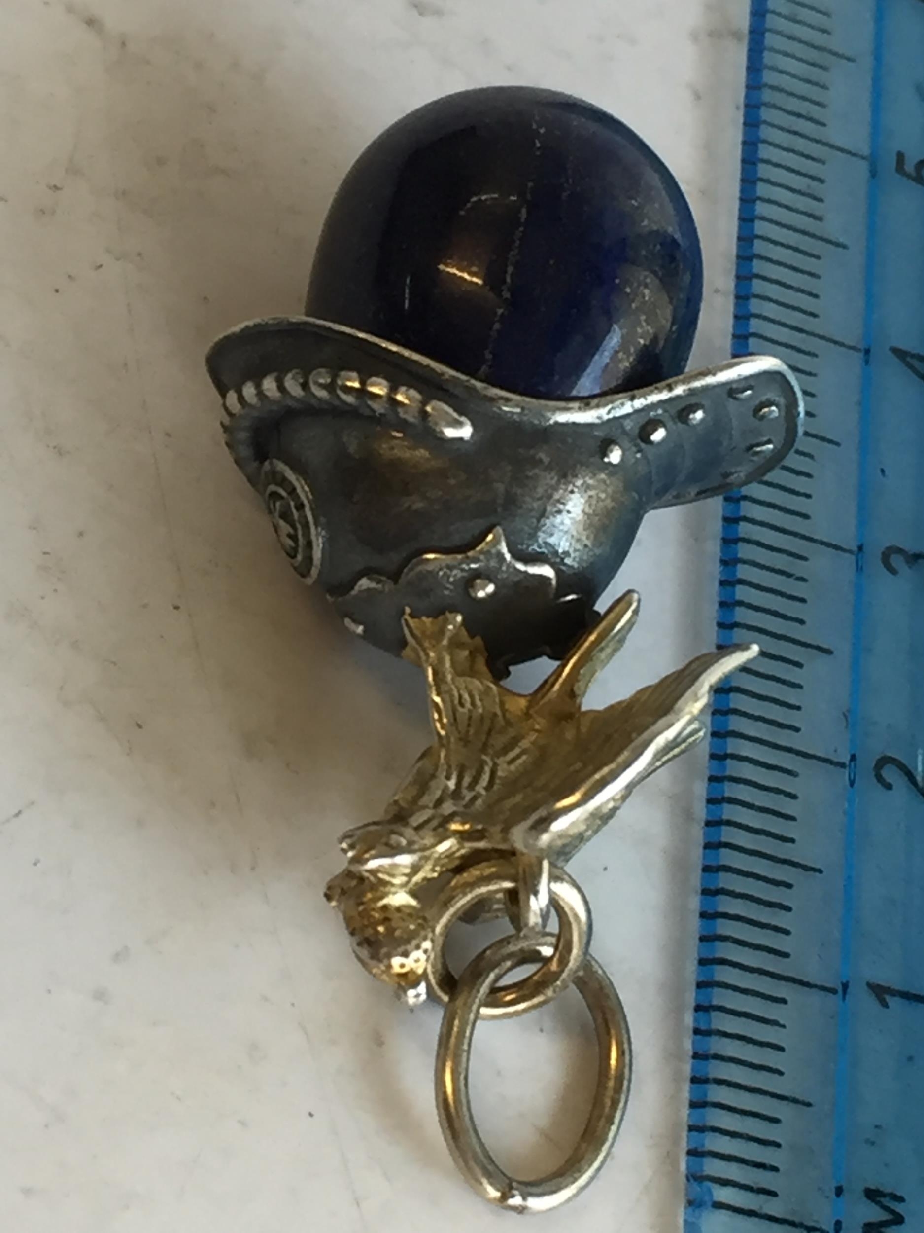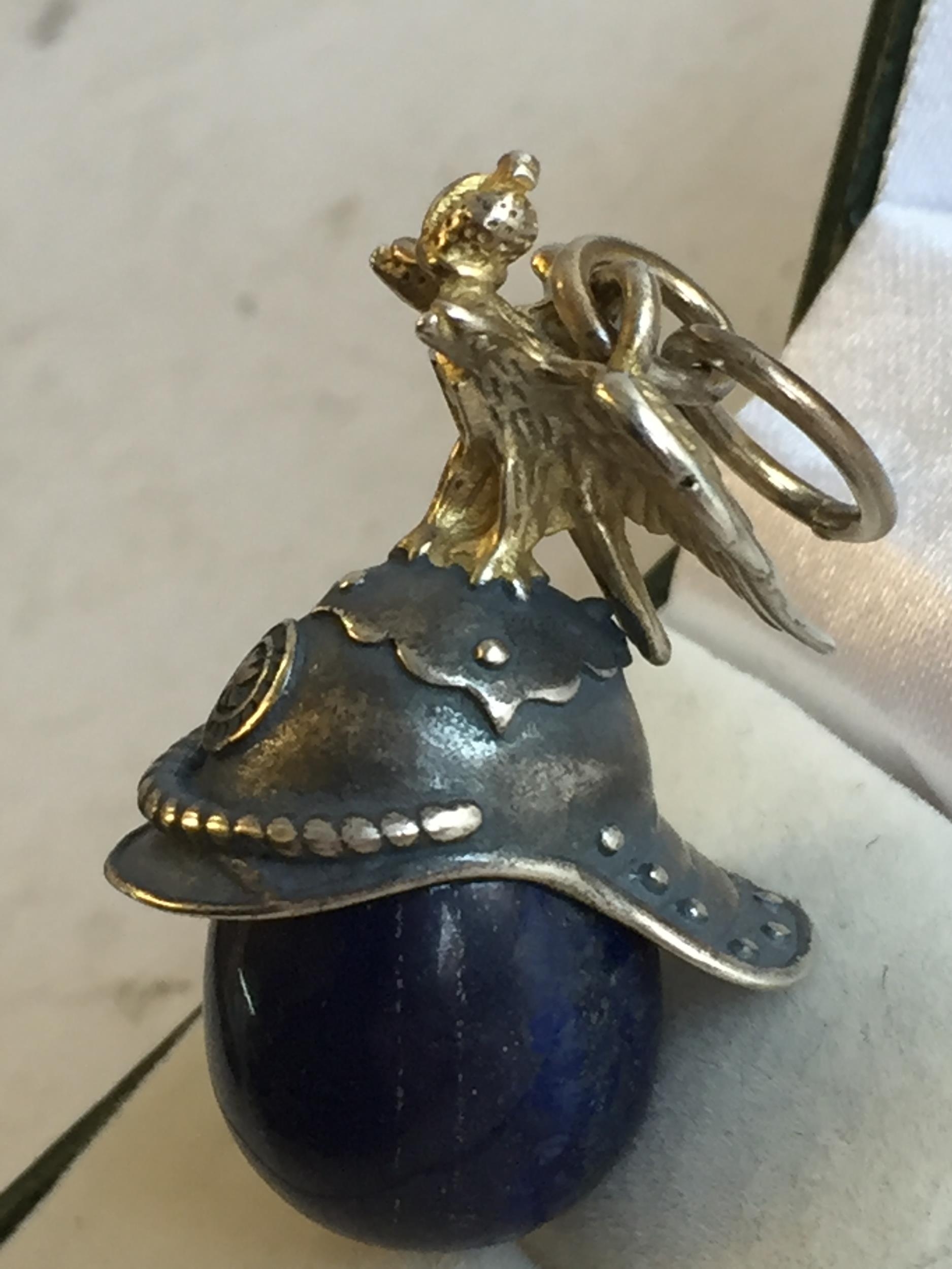 Russian Silver Lapis Lazuli Carved Egg with Eagle & helmet Decoration. Lovely Quality Piece