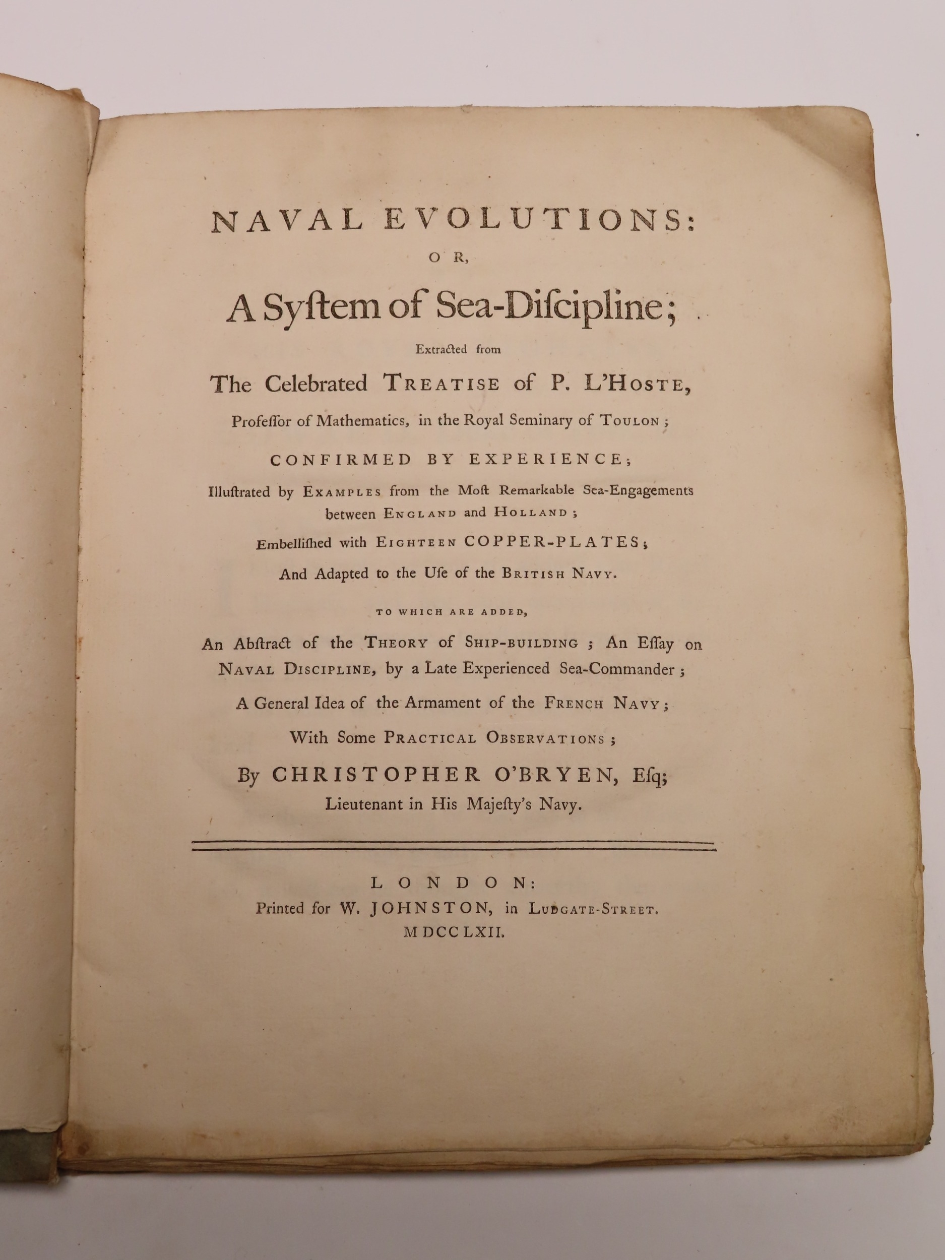 NAVAL EVOLUTIONS OR A SYSTEM OF SEA DISCIPLINE BY CHRISTOPHER O'BRYEN ESQ, 1762