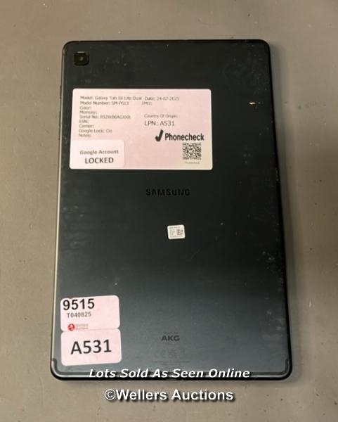 IPAD GALAXY TAB S6 LITE DUAL/ MODEL: SM-P613/ GOOGLE ACCOUNT LOCKED/ SN: R52WB0AGXXR